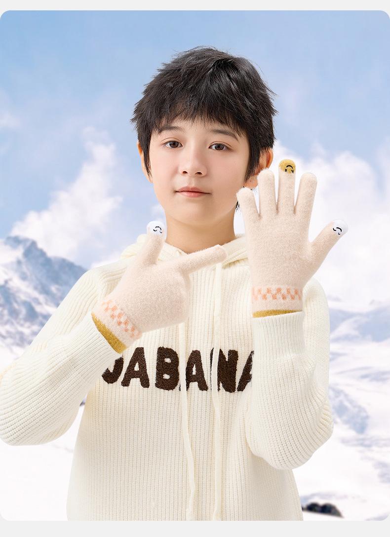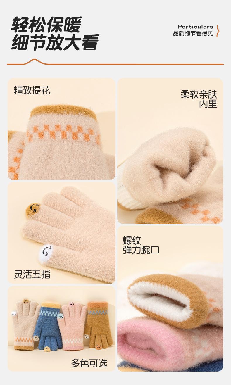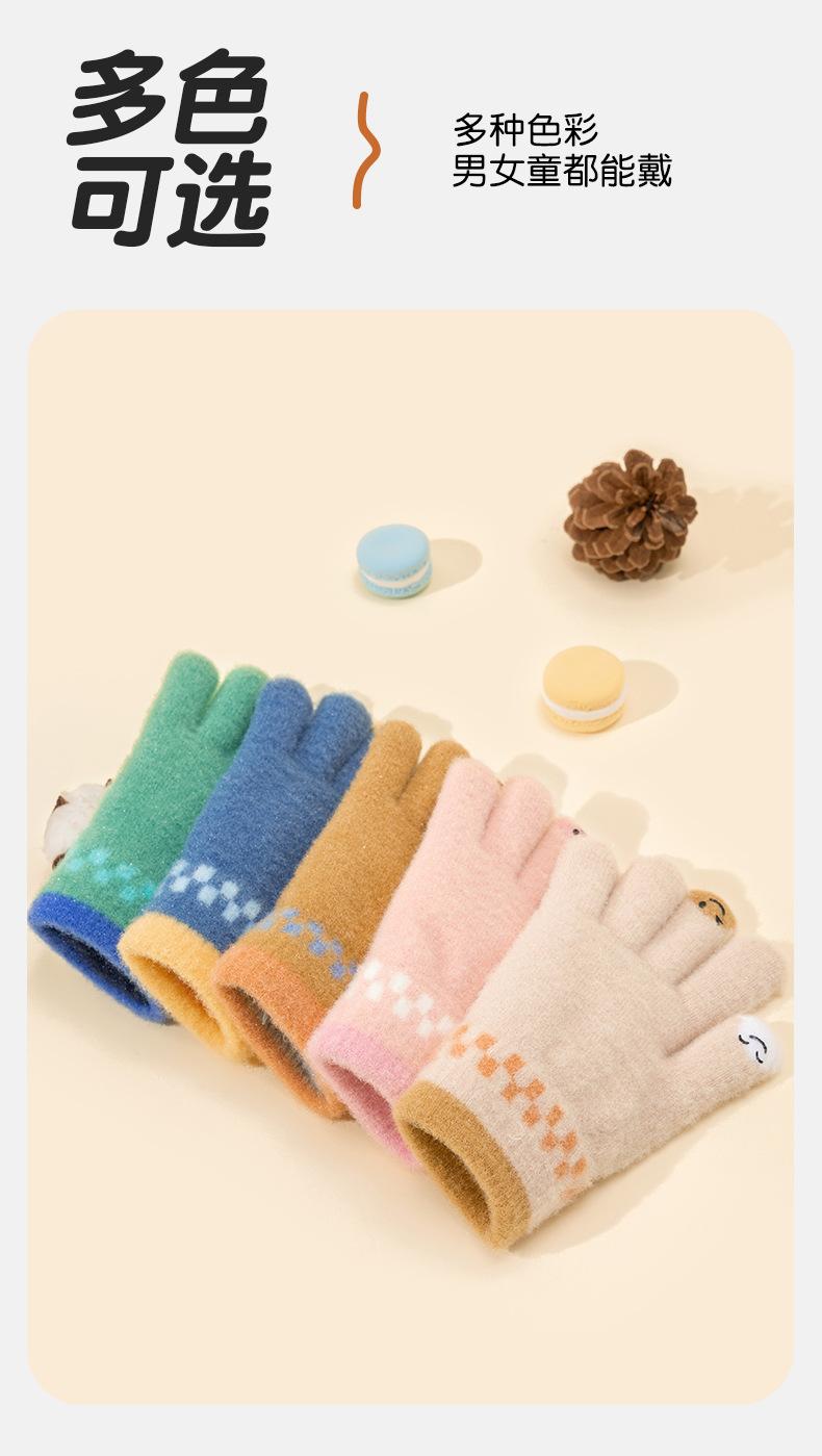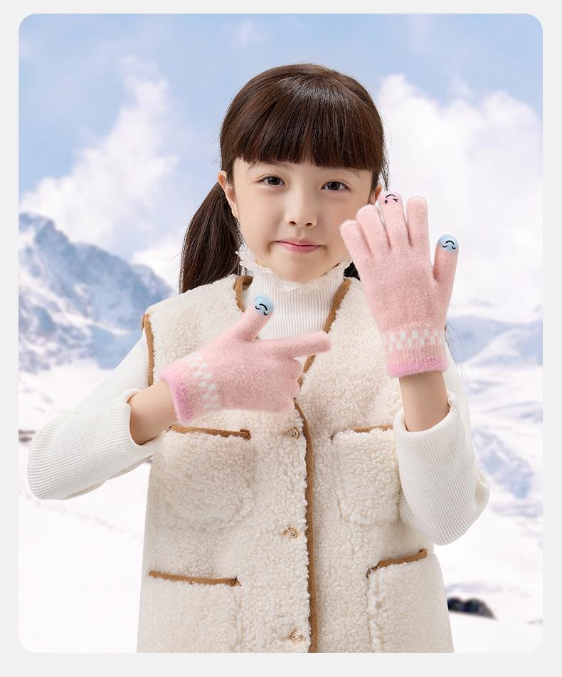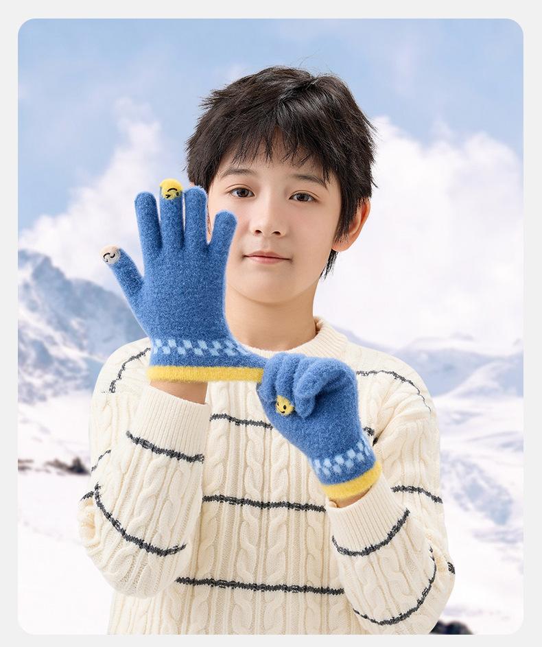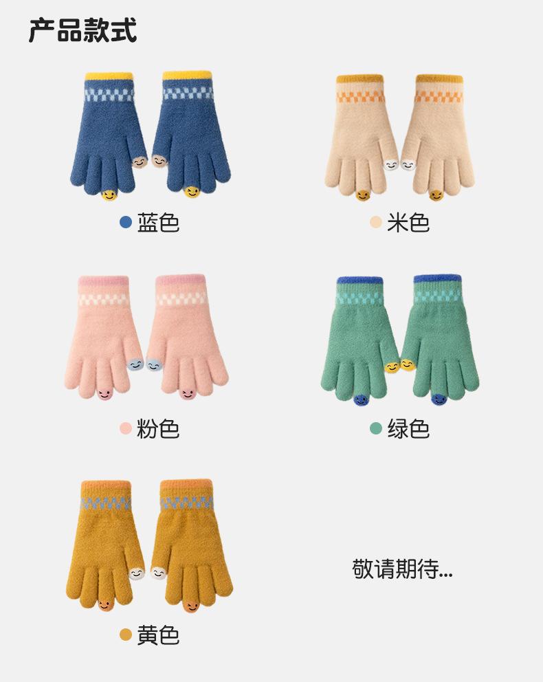 Guantes de lana de invierno para ciclismo, de punto coreano, con cinco dedos, gruesos, cálidos y resistentes al frío, para hombre y mujer, con diseño de caricatura sonriente