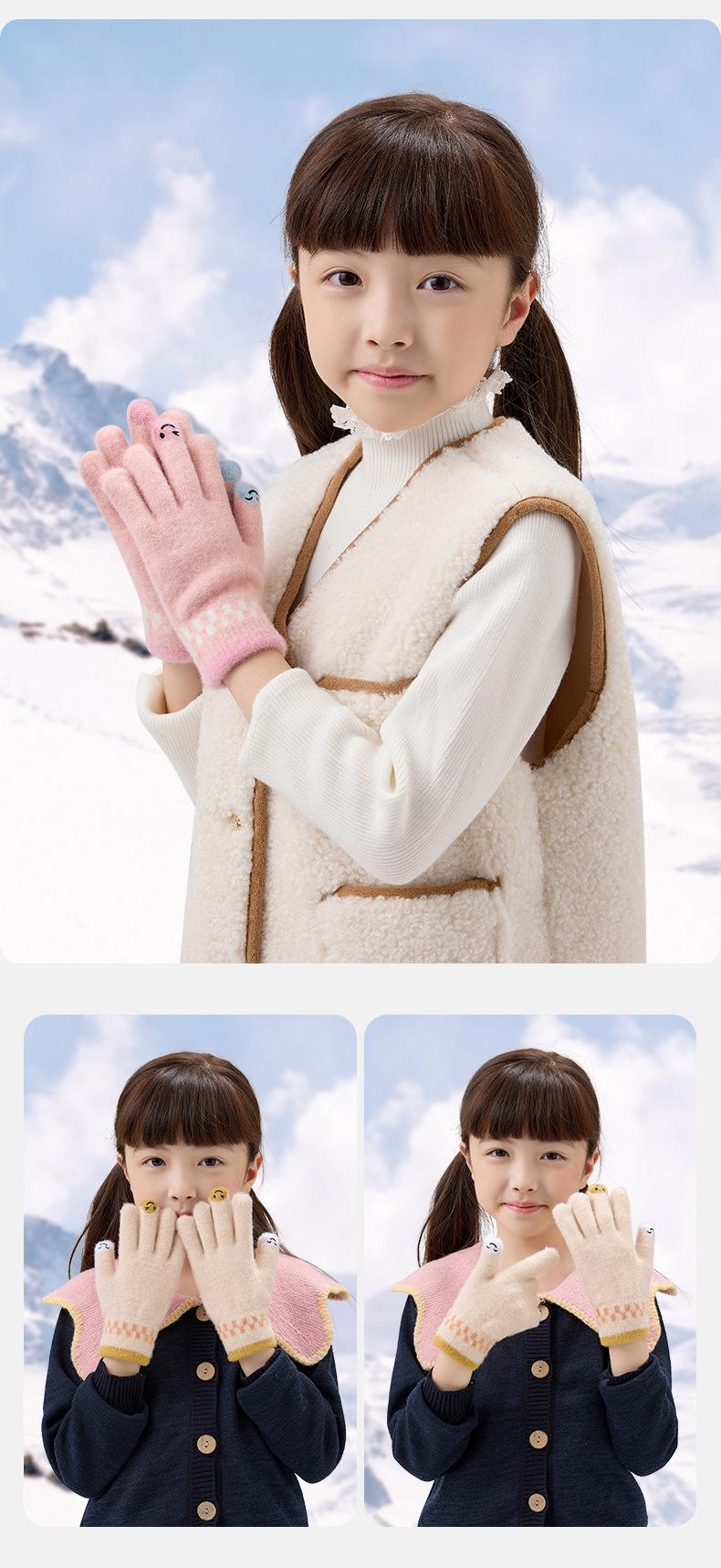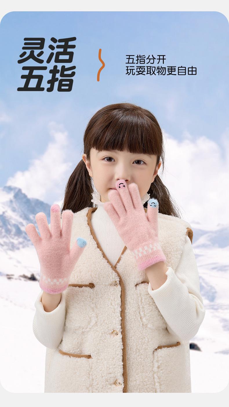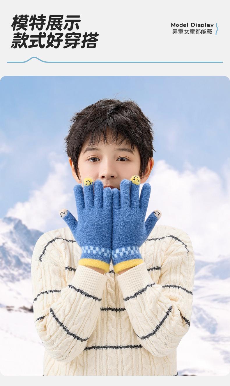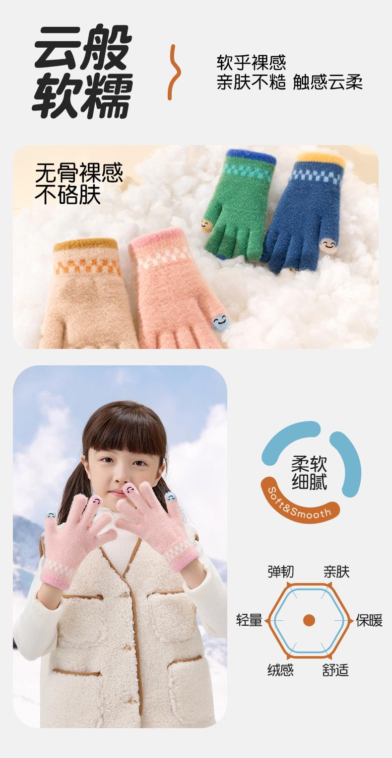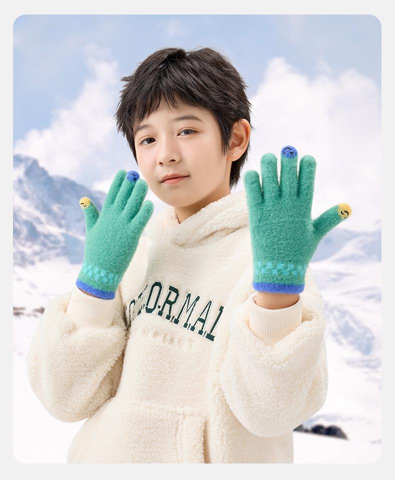 Guantes de lana de invierno para ciclismo, de punto coreano, con cinco dedos, gruesos, cálidos y resistentes al frío, para hombre y mujer, con diseño de caricatura sonriente