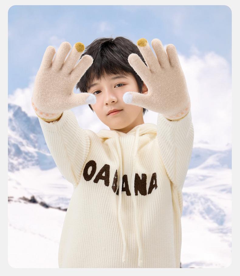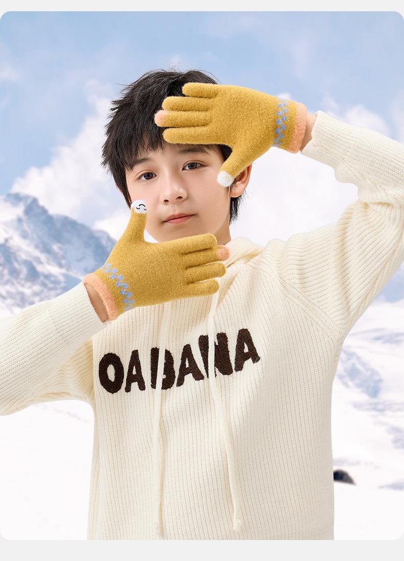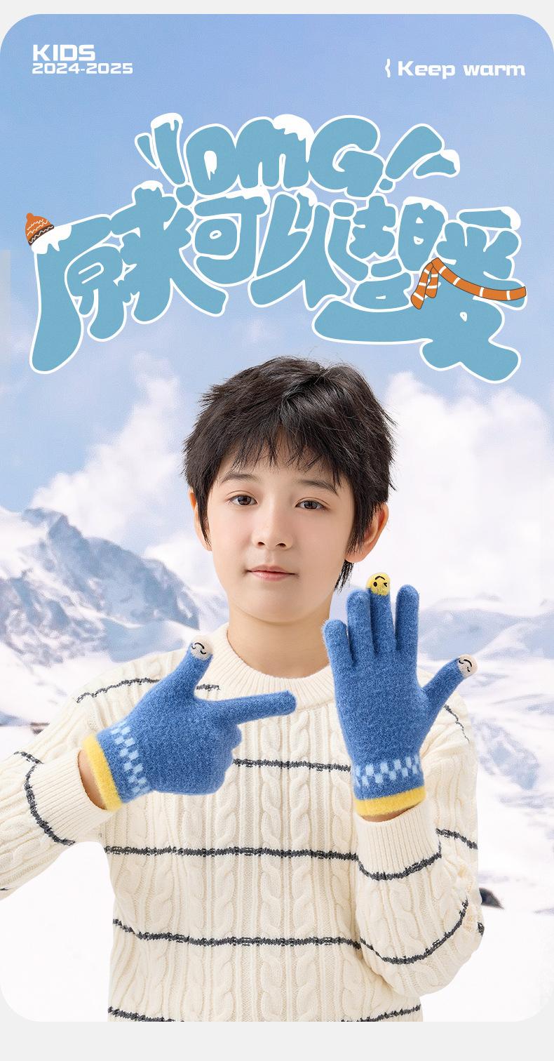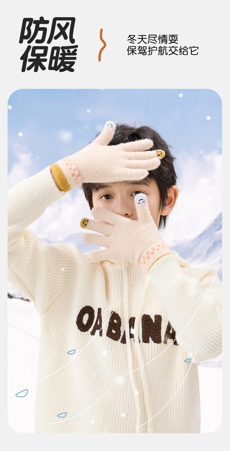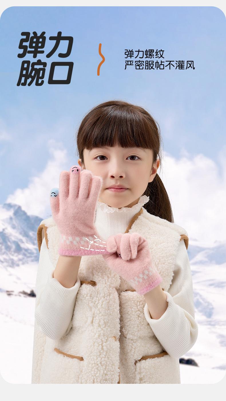 Guantes de lana de invierno para ciclismo, de punto coreano, con cinco dedos, gruesos, cálidos y resistentes al frío, para hombre y mujer, con diseño de caricatura sonriente