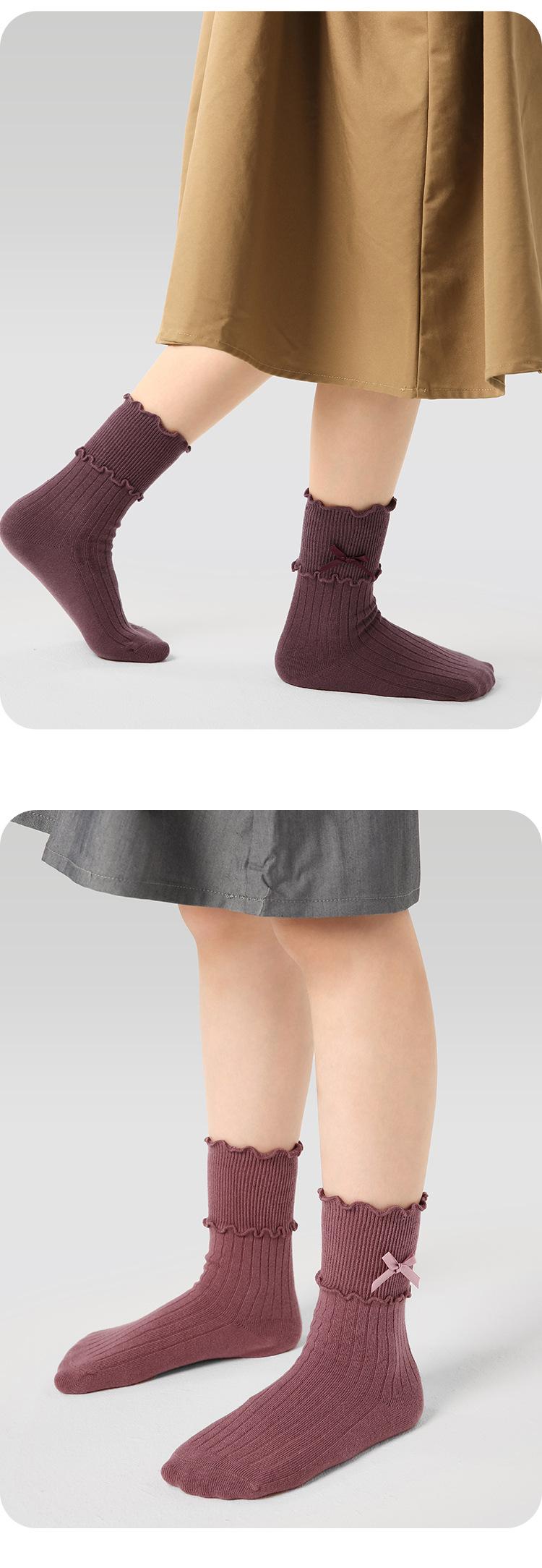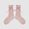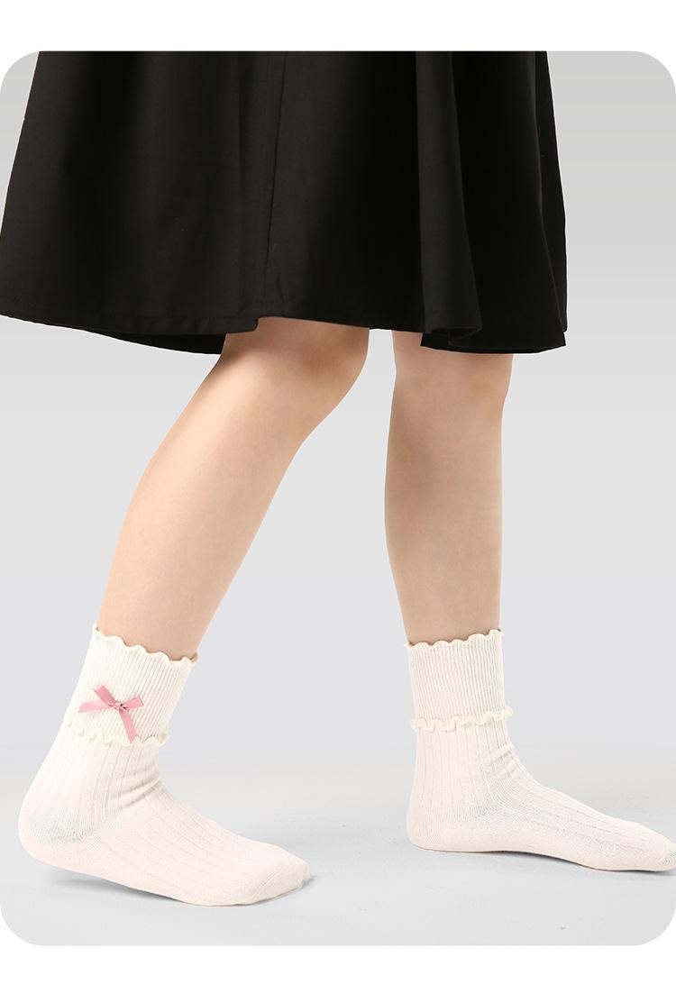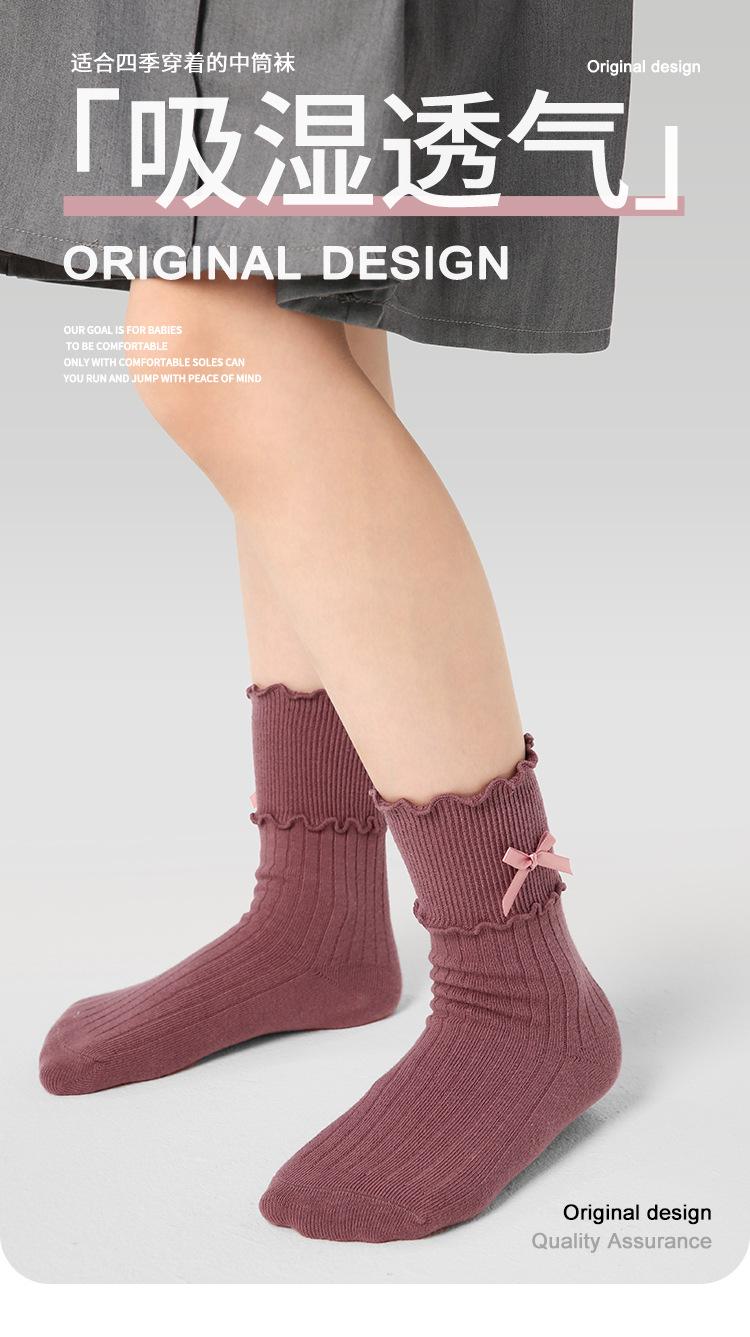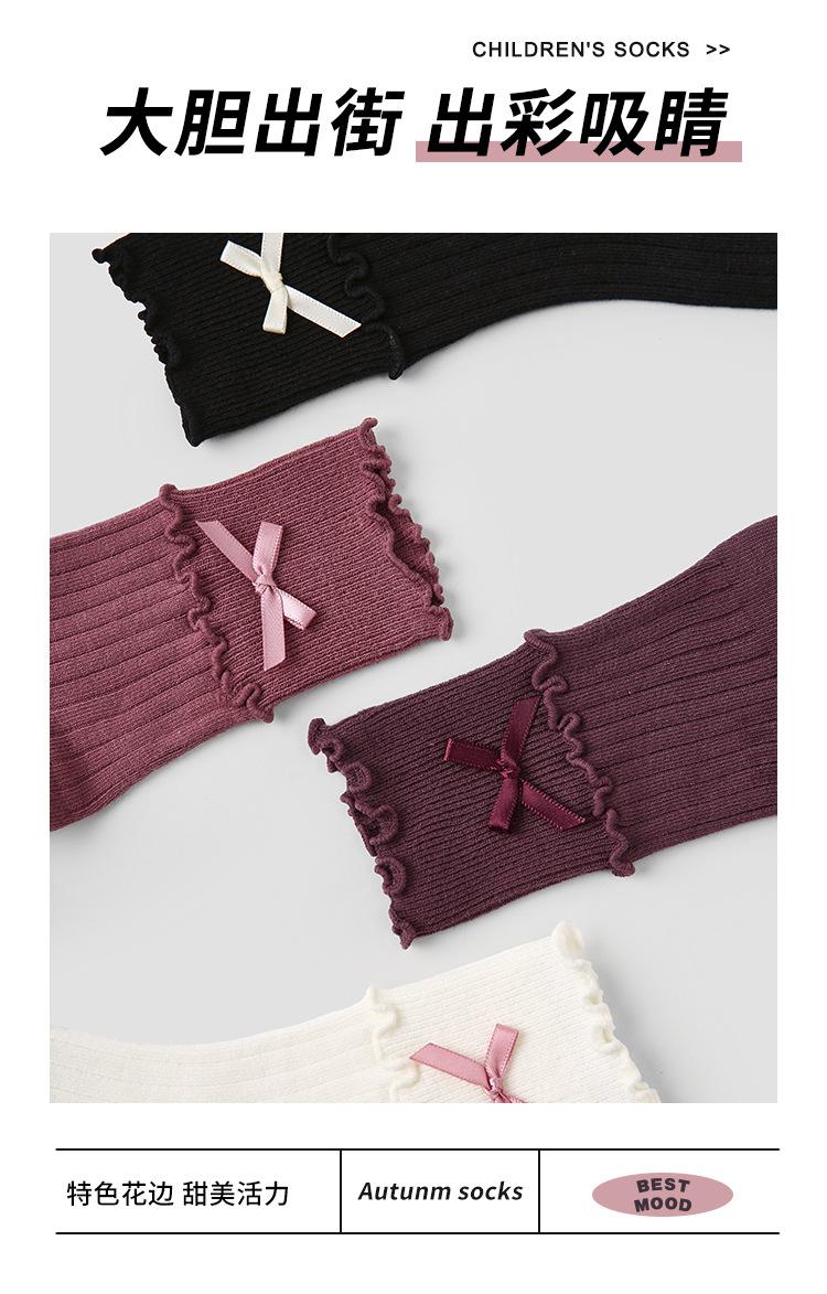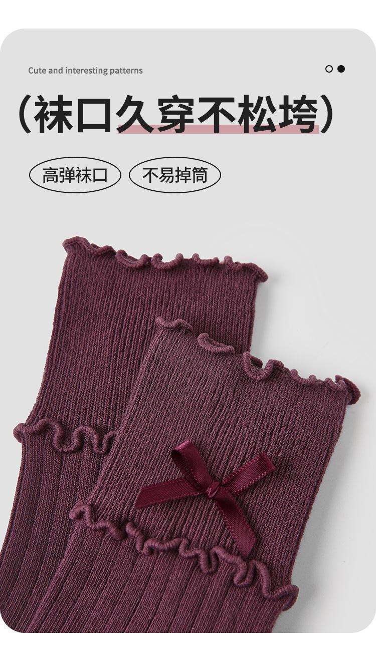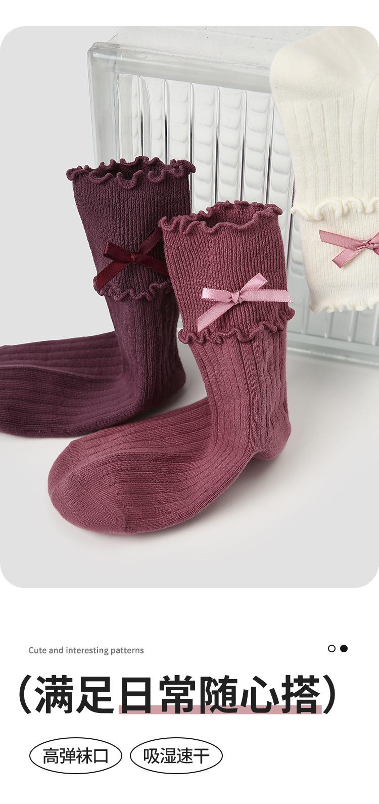 ZYZ calcetines para niños al por mayor calcetines de tubo para niños con lazo japonés encaje de hongo doble color sólido calcetines para niñas