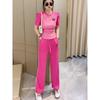 Traje de moda deportiva transfronteriza europea para mujer verano 2024 nueva versión coreana de moda casual de dos piezas para correr suelta