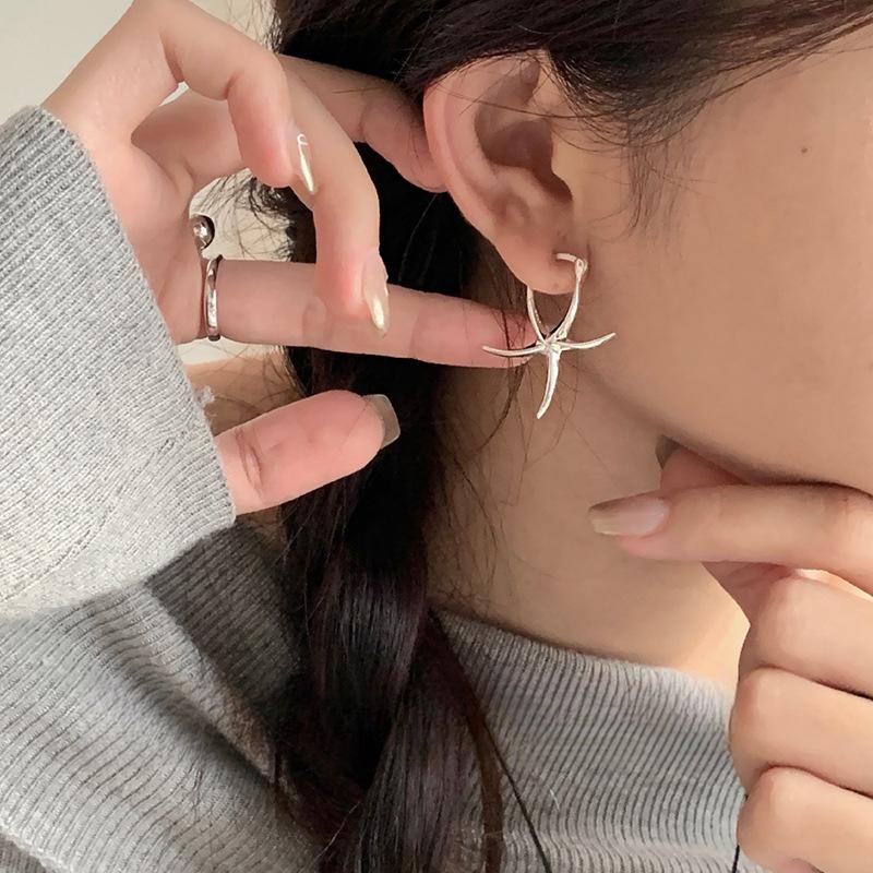 Pendientes con hebilla de oreja de estrella de mar irregular para mujer, diseño de nicho simple, únicos, distintivos, exquisitos y combinables.