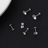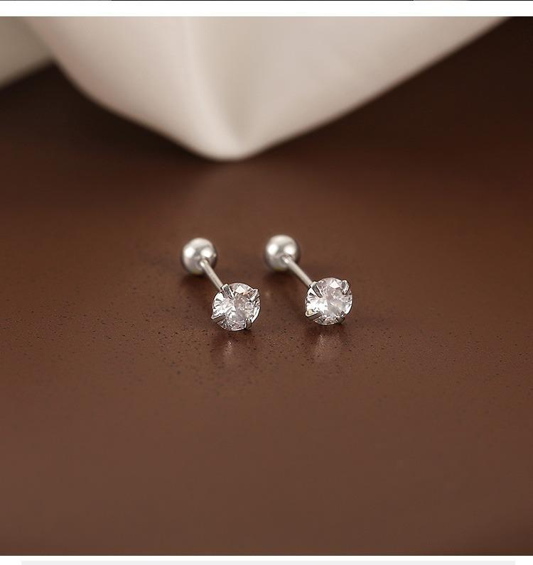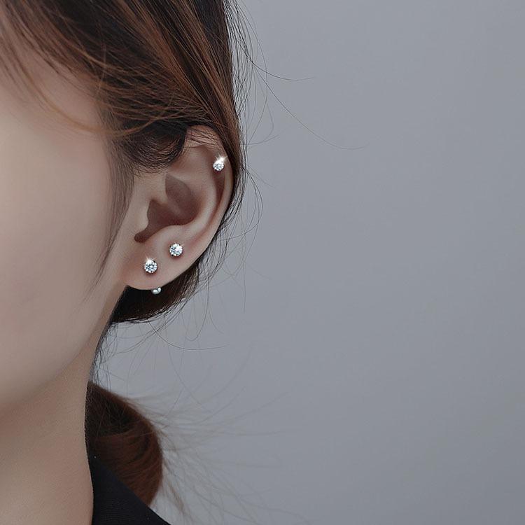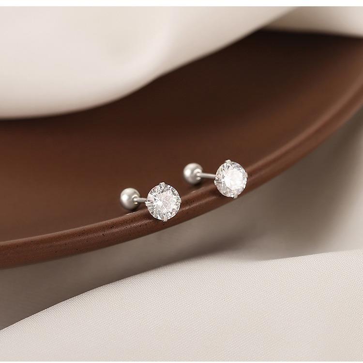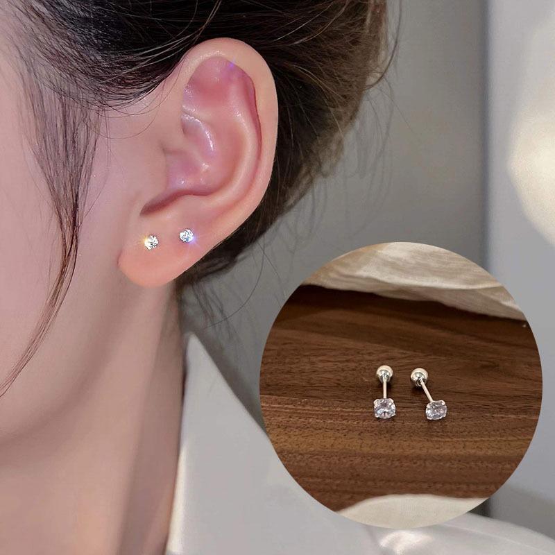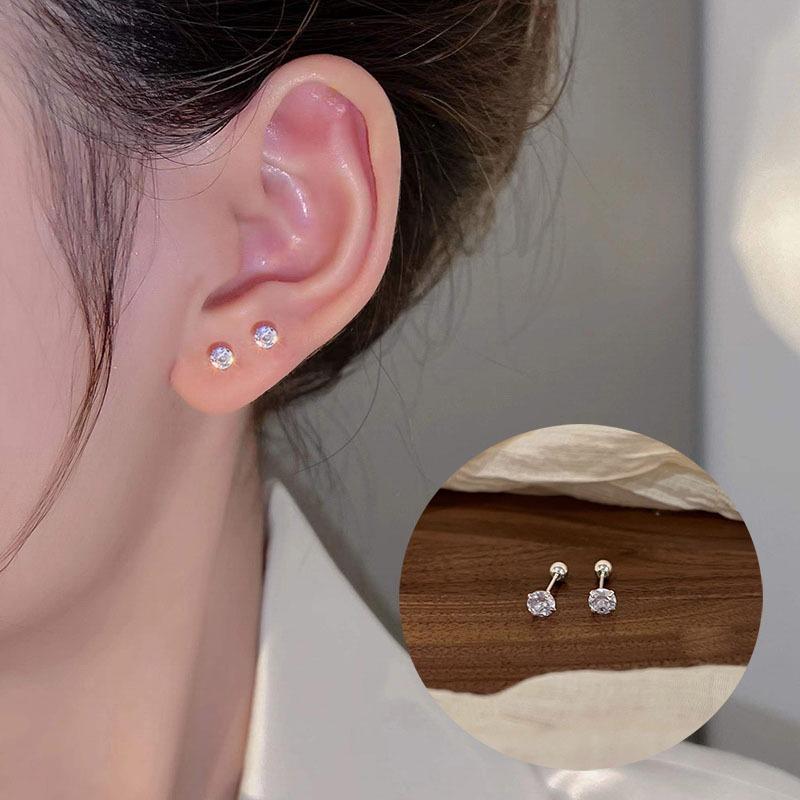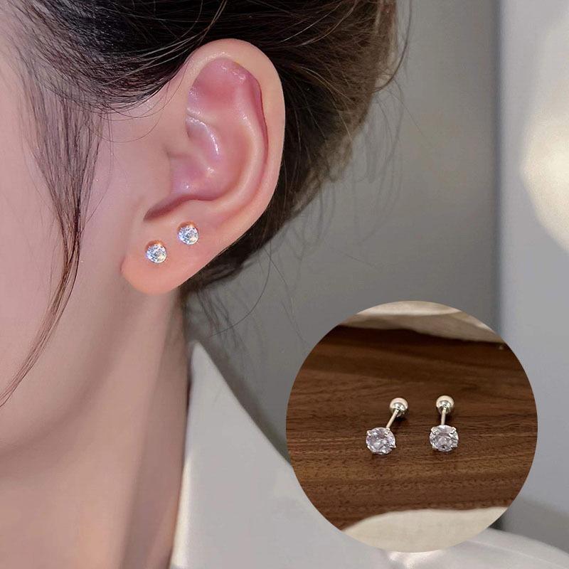 Pendientes de plata de ley 925 con doble aguja y diamante brillante para orejas, con tornillo y hebilla, para dormir sin necesidad de recoger los agujeros de las orejas.