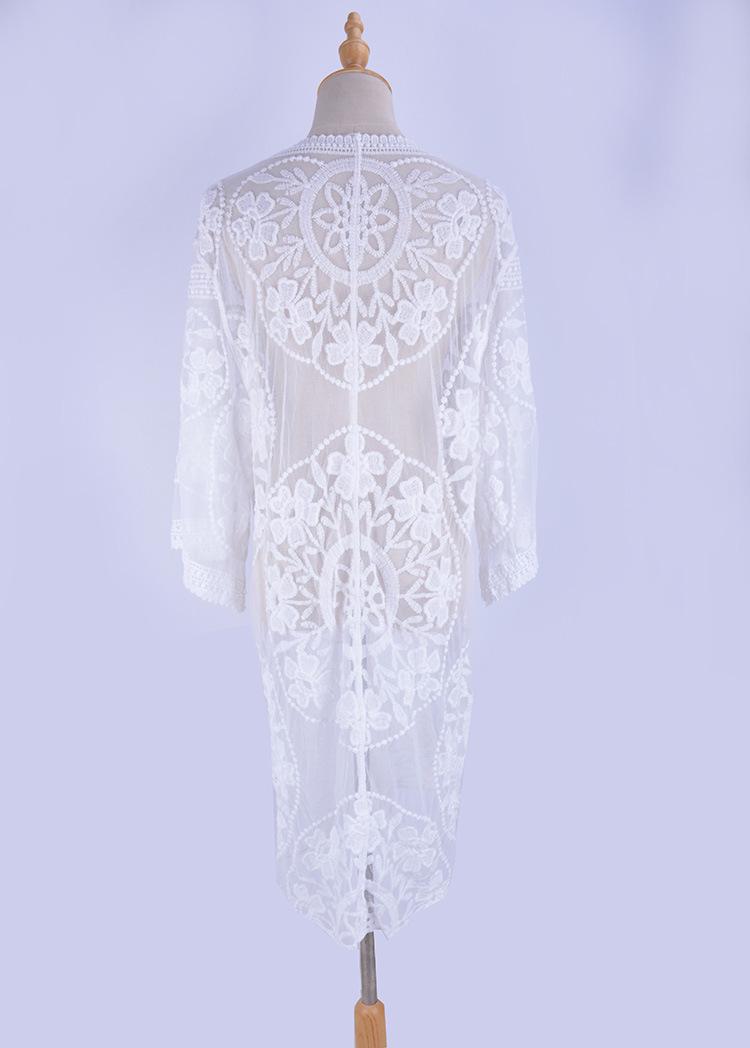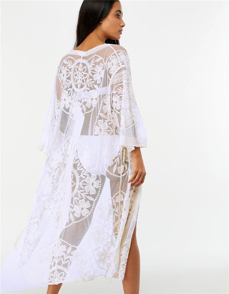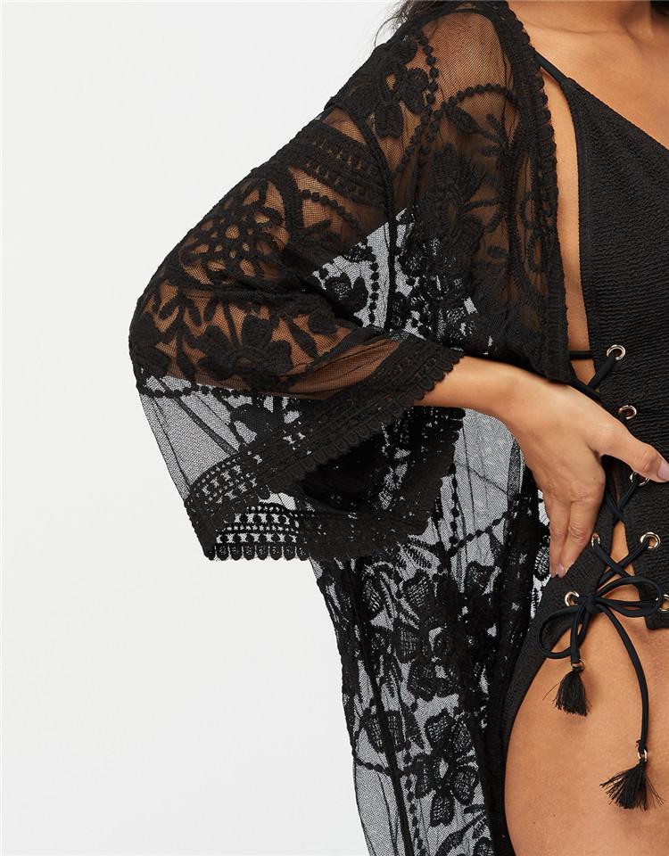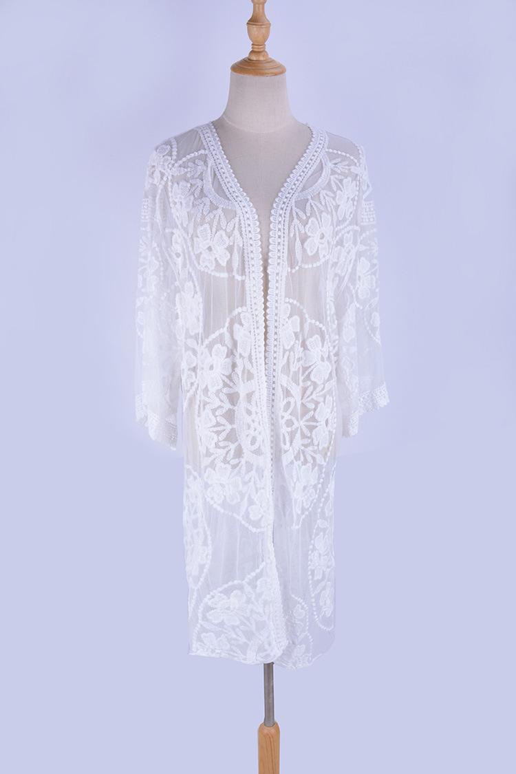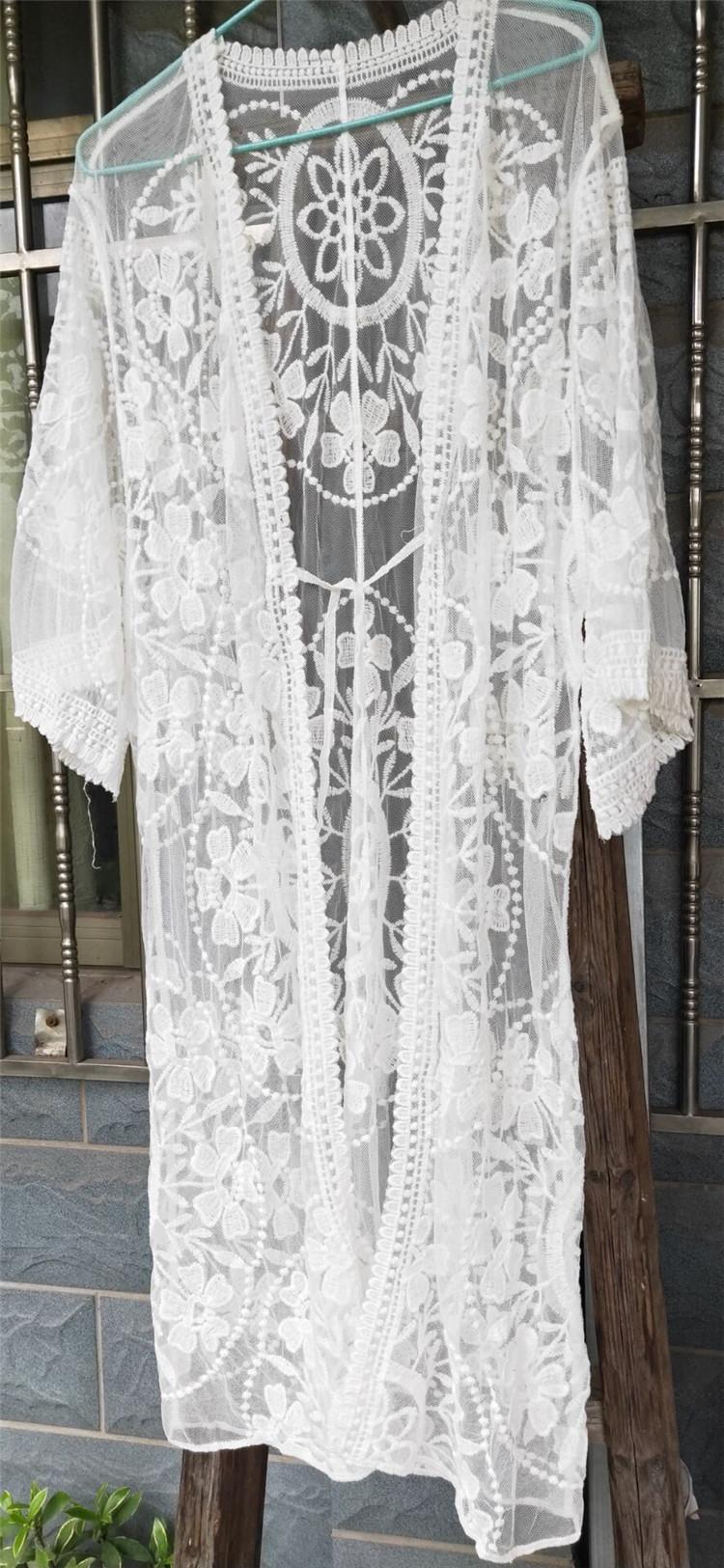 Gran oferta, nueva camisa de encaje de algodón en capas, estilo manga acampanada, para playa, protección solar, traje de baño, chaqueta, cárdigan femenino
