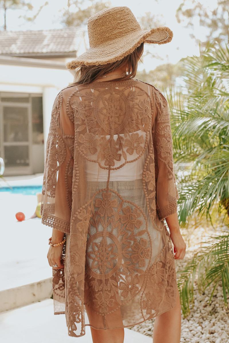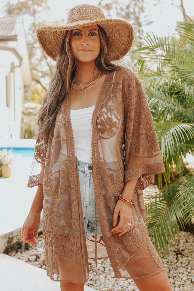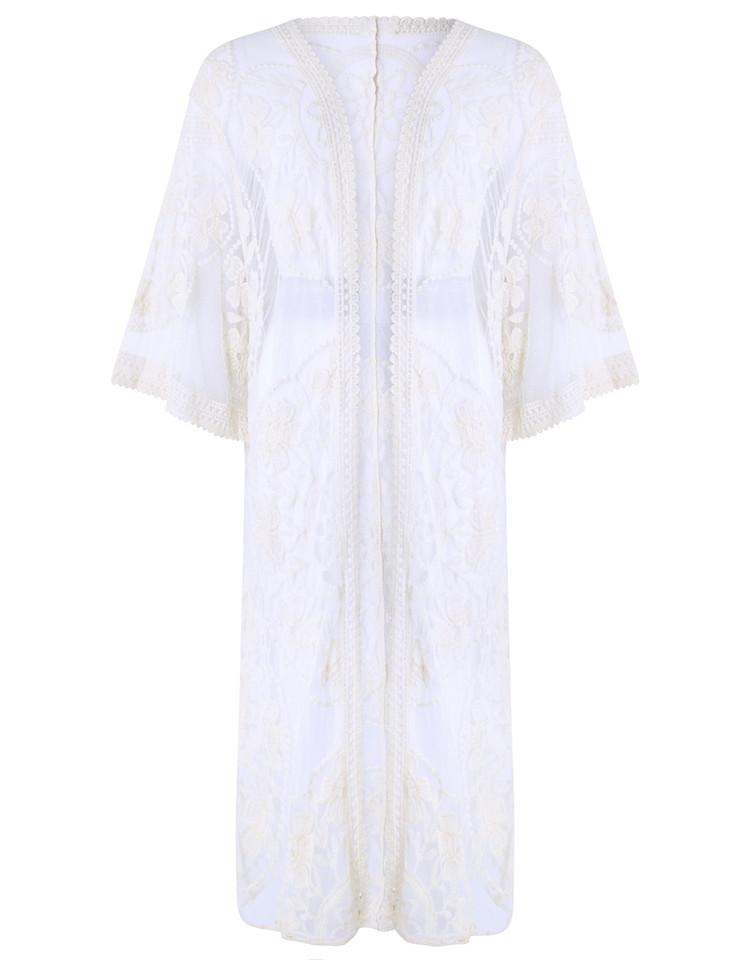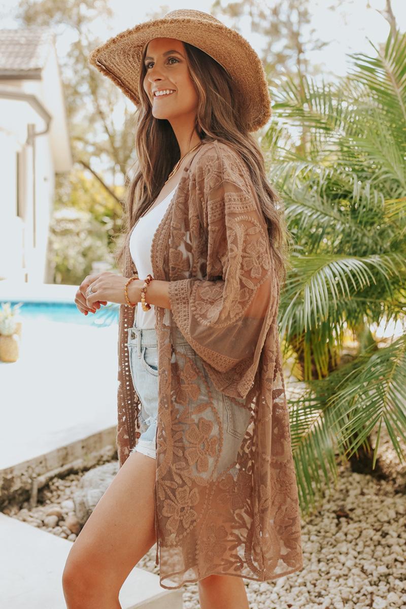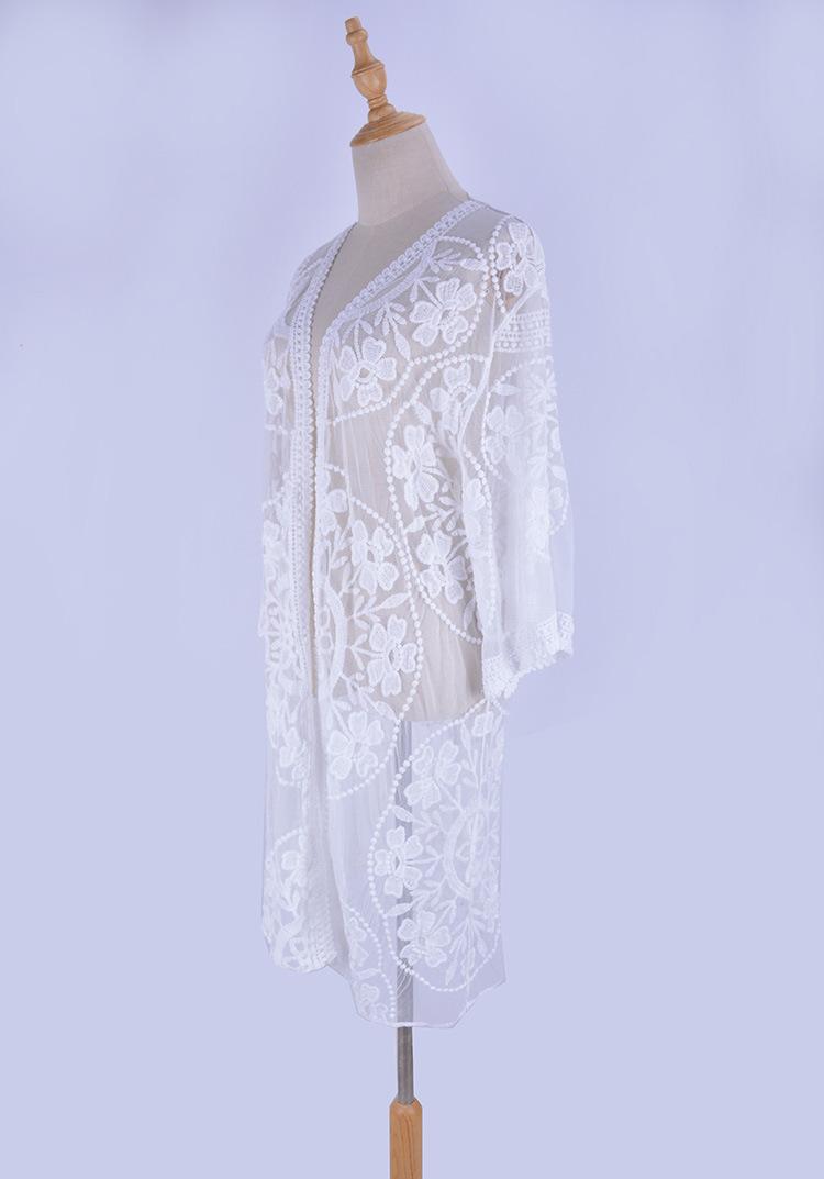 Gran oferta, nueva camisa de encaje de algodón en capas, estilo manga acampanada, para playa, protección solar, traje de baño, chaqueta, cárdigan femenino