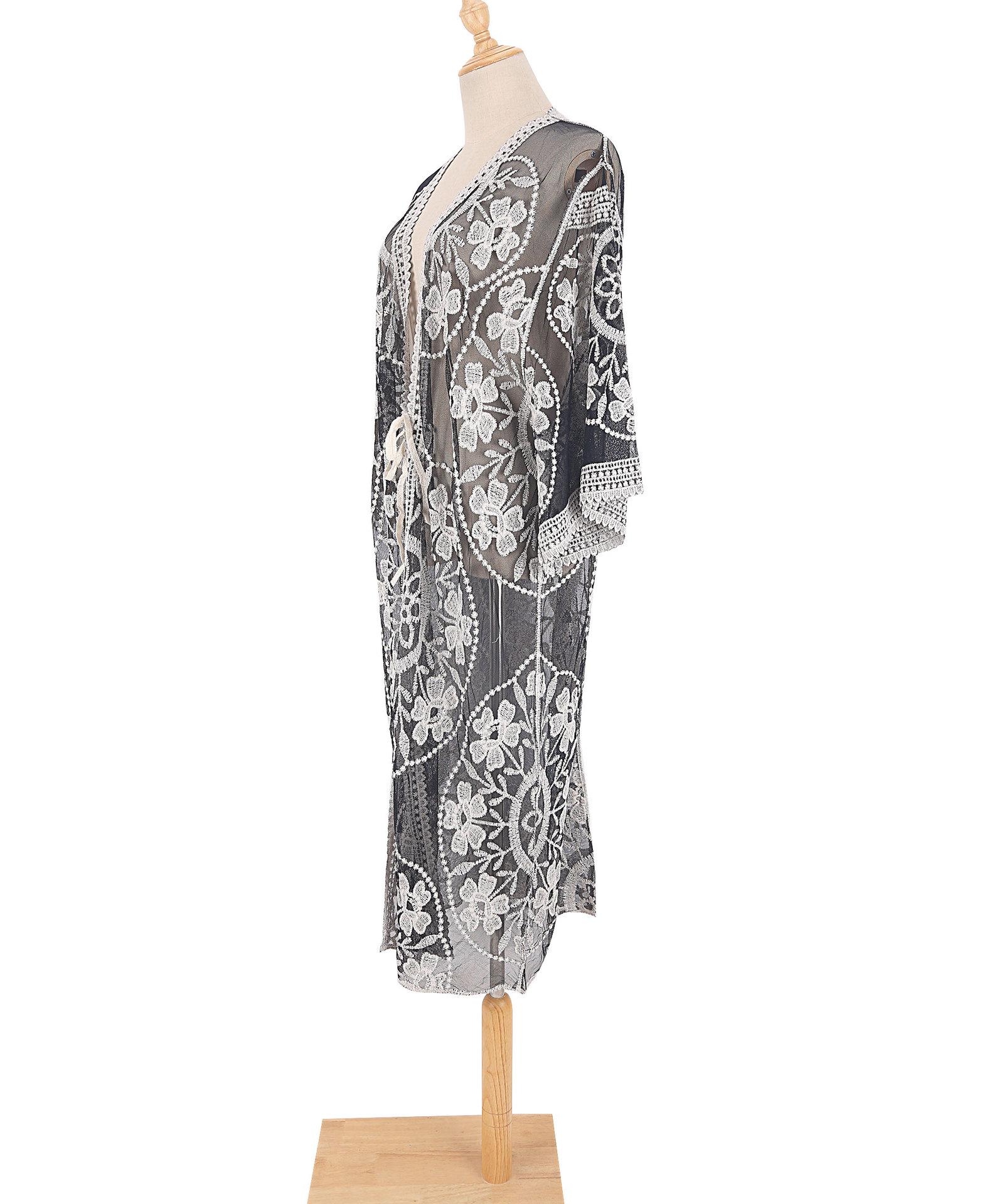 Vestido playero tipo cárdigan de algodón europeo y americano, teñido anudado en blanco y negro, para cubrir bikini, traje de baño, prenda exterior tipo cárdigan, ropa de protección solar, vestido de fiesta.