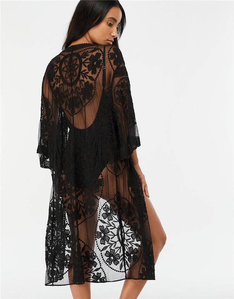Nuevo cárdigan de playa de bikini de manga larga holgado estilo camisa negra estilo europeo y americano para vacaciones en la playa con protector solar