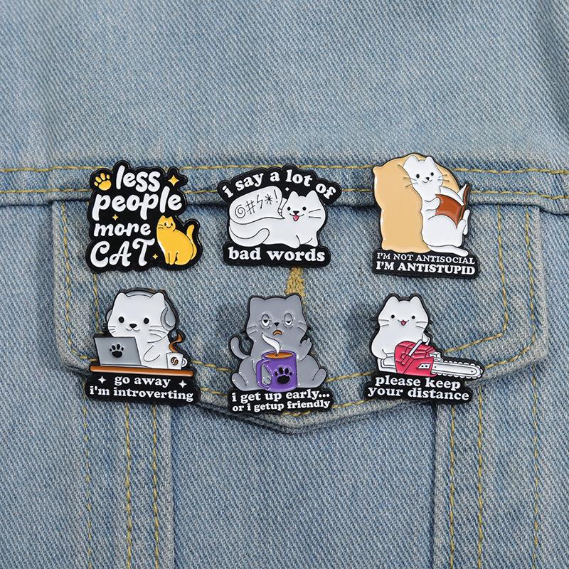 Insignia de Metal Serie Gato Lindo Divertido de Dibujos Animados Interesantes Oraciones Cortas en Inglés Accesorios de Animales Broche de Pintura de Aleación