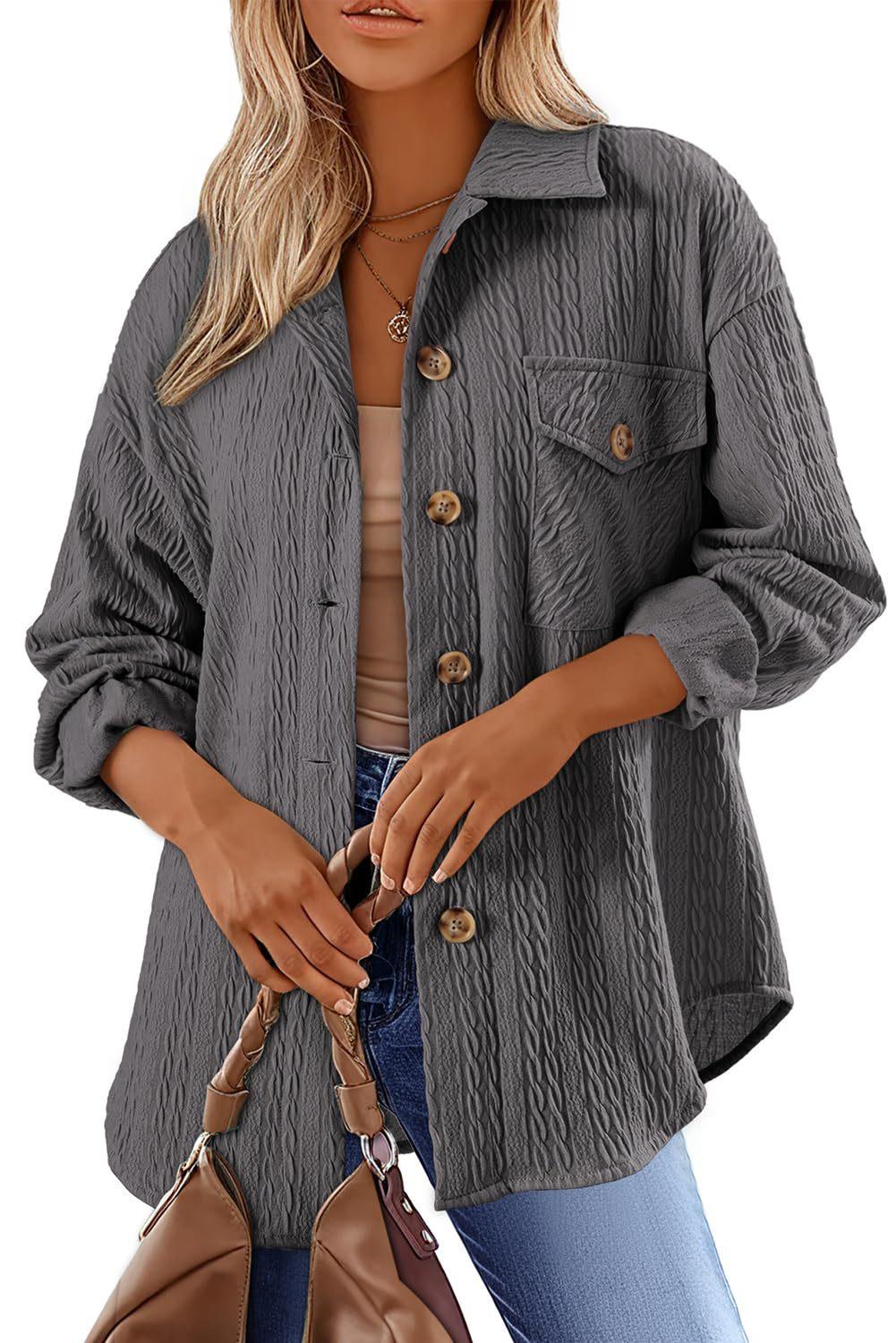 Amazon 2024 Europa y Estados Unidos comercio exterior transfronterizo otoño e invierno nuevo color sólido solapa bolsillo botón manga larga abrigo suelto mujeres