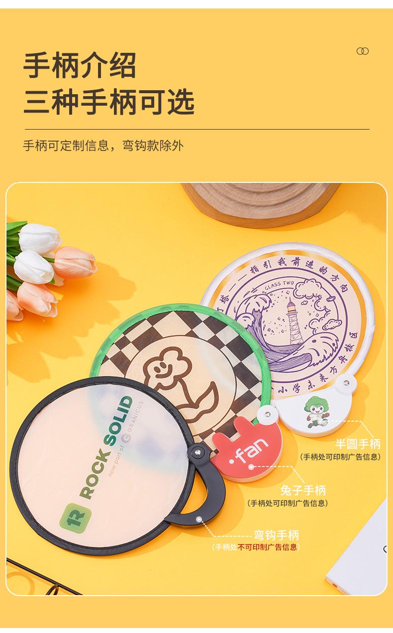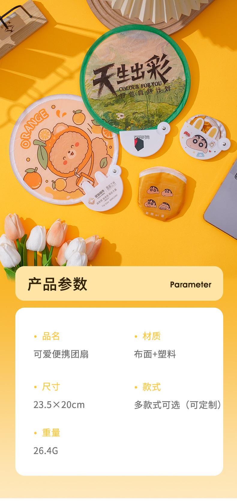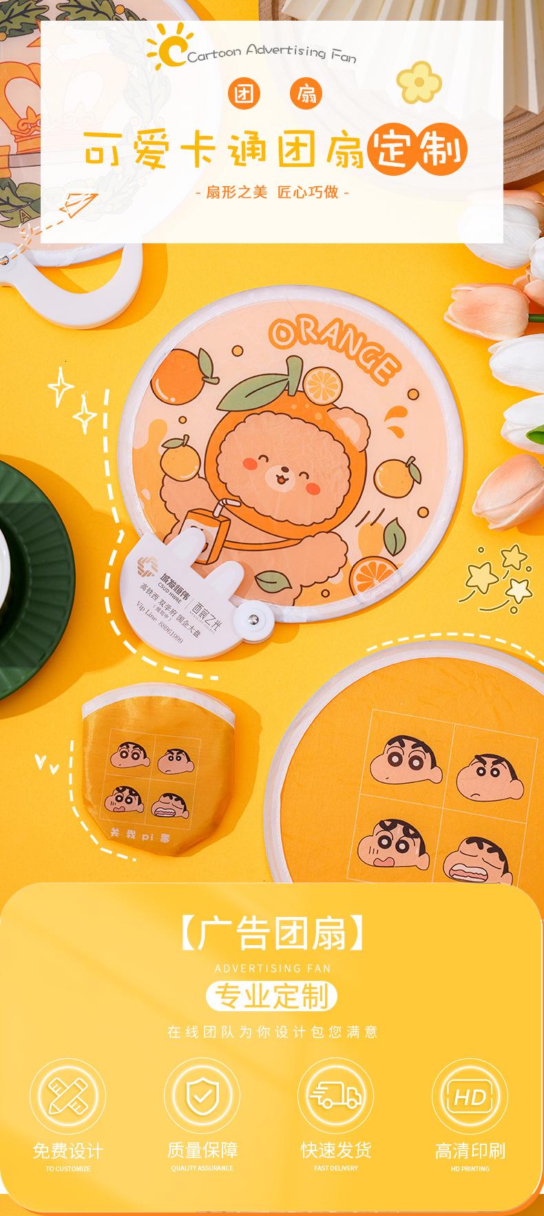 Fábrica al por mayor de verano creativo lindo dibujo animado frisbee abanico publicitario redondo pequeño grupo abanico plegable abanico impresión de logotipo