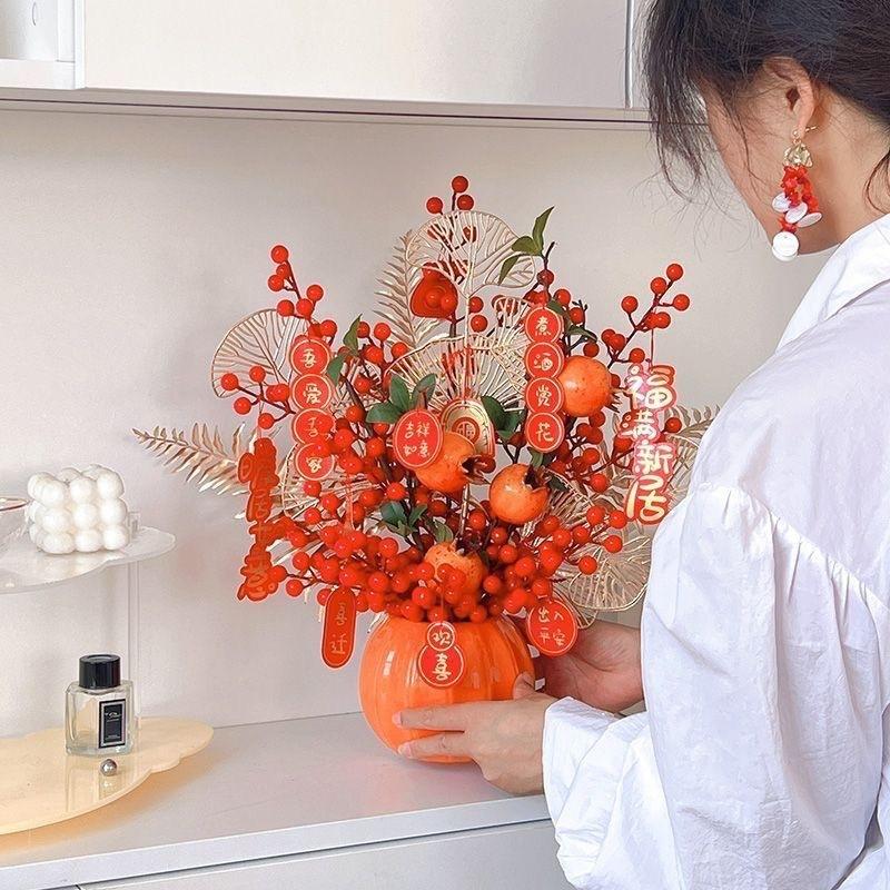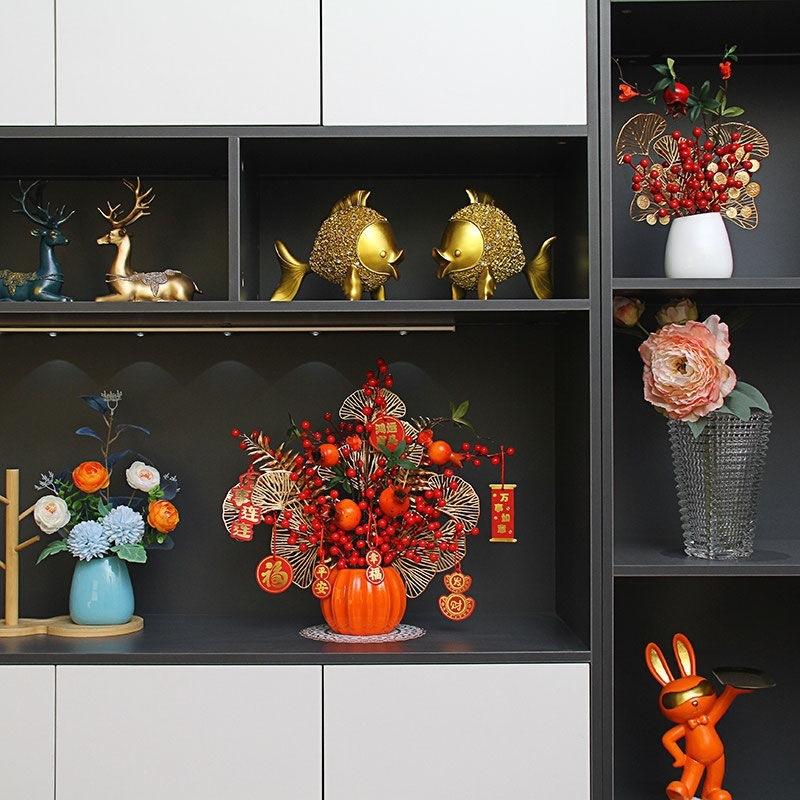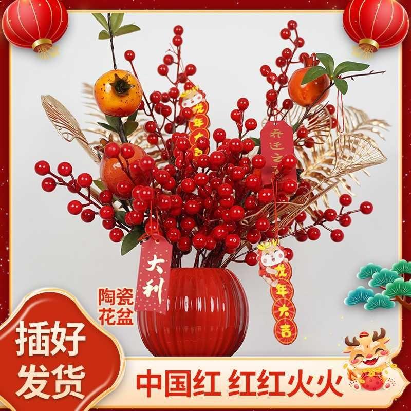 Inauguración de casa, boda de Año Nuevo, inauguración de una casa nueva, simulación de fruta roja, fruta de la fortuna, fruta roja, caqui Ruyi, decoración de la mesa del comedor de la sala de estar