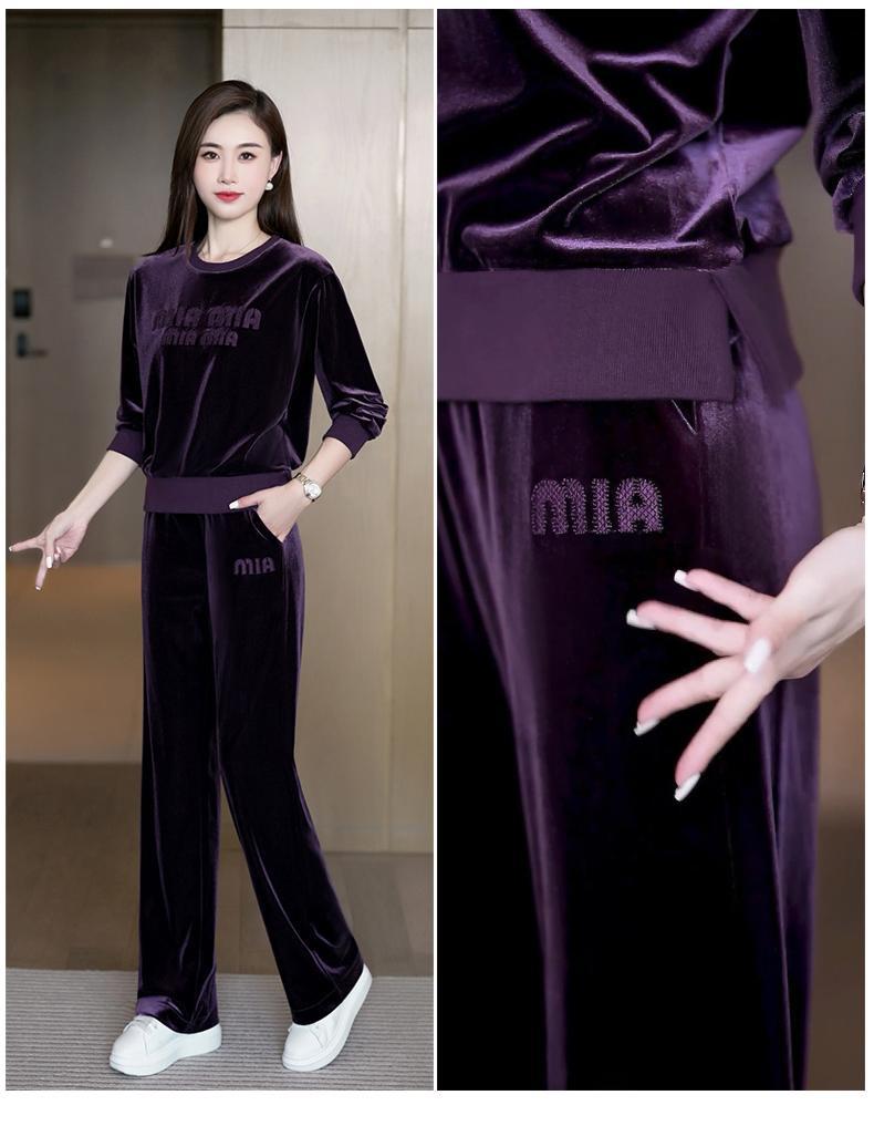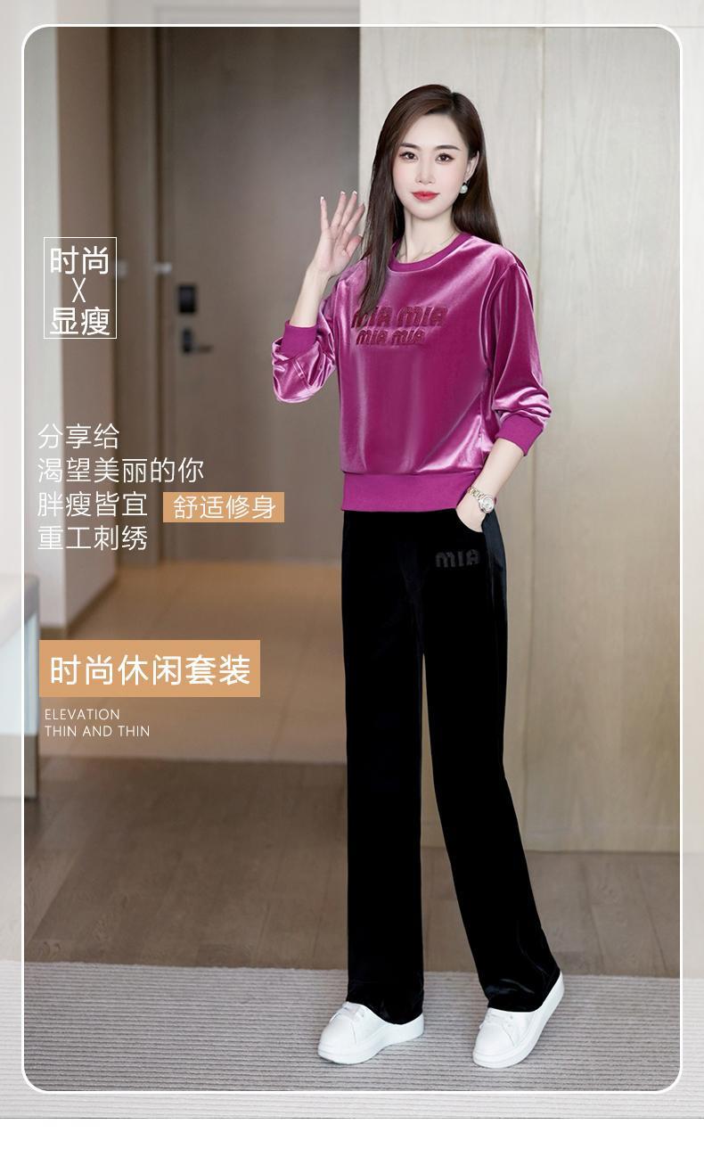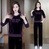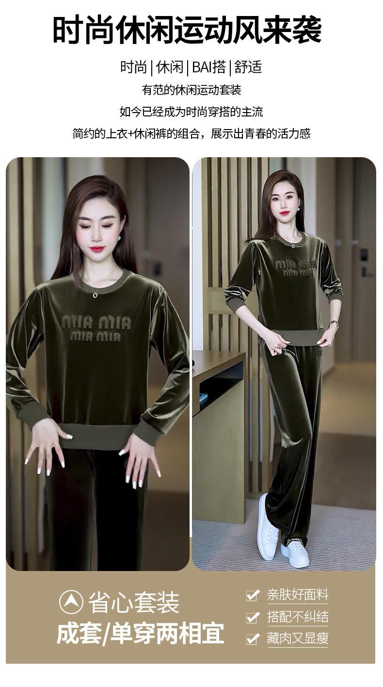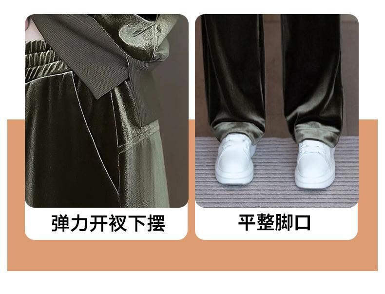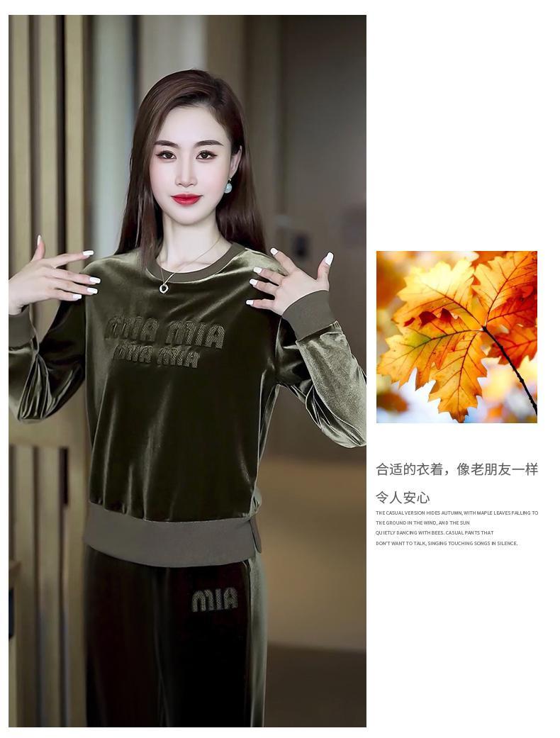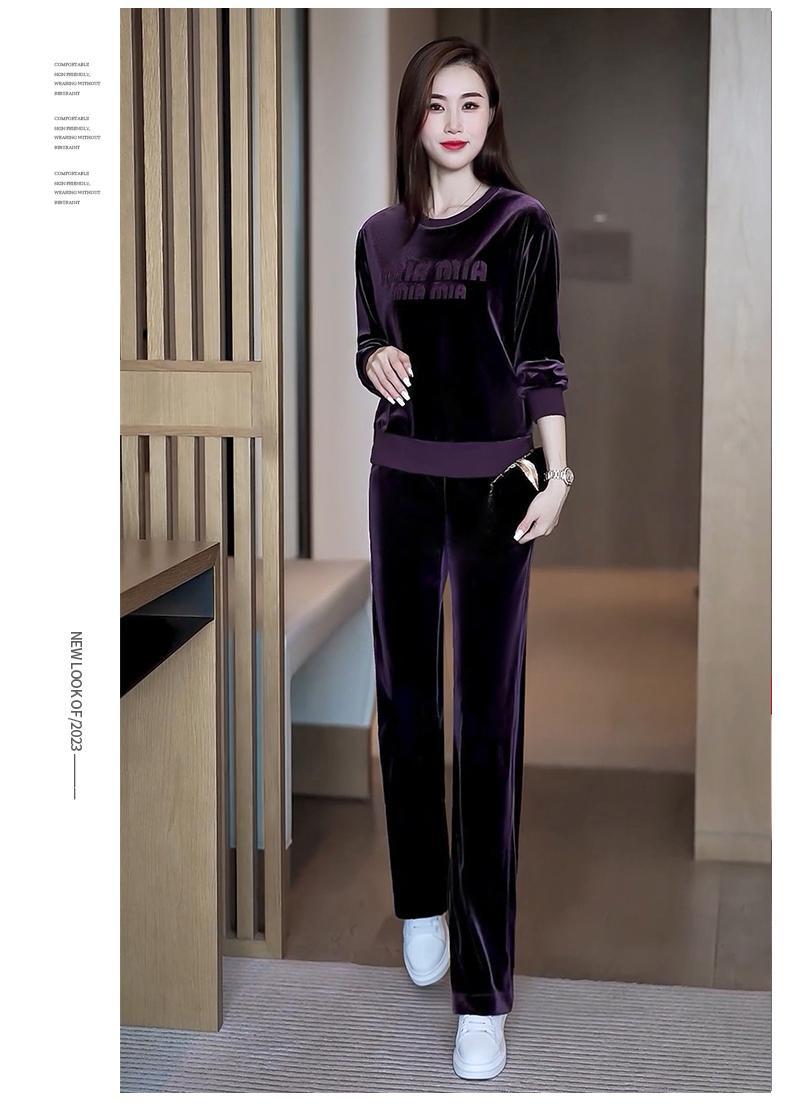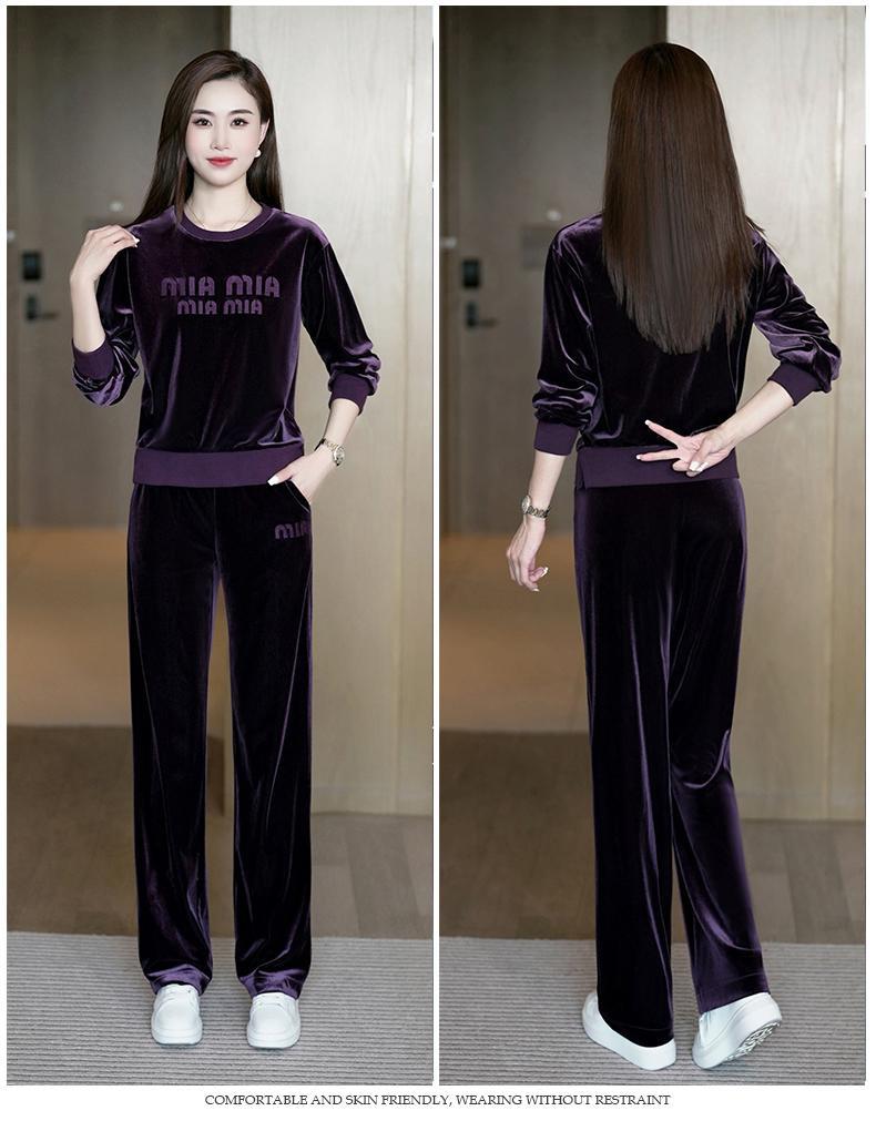Conjunto deportivo informal de terciopelo dorado para mujer, jersey de cuello redondo, holgado y a la moda de otoño, de dos piezas, para adelgazar
