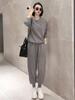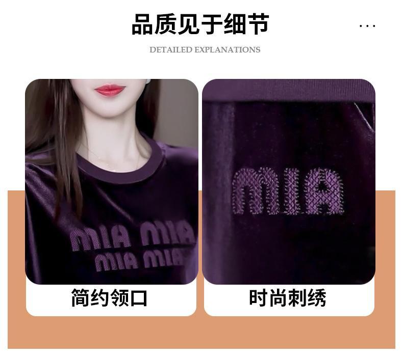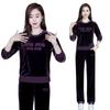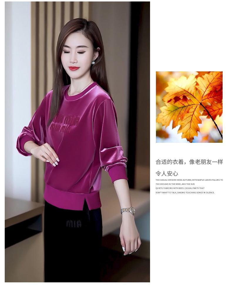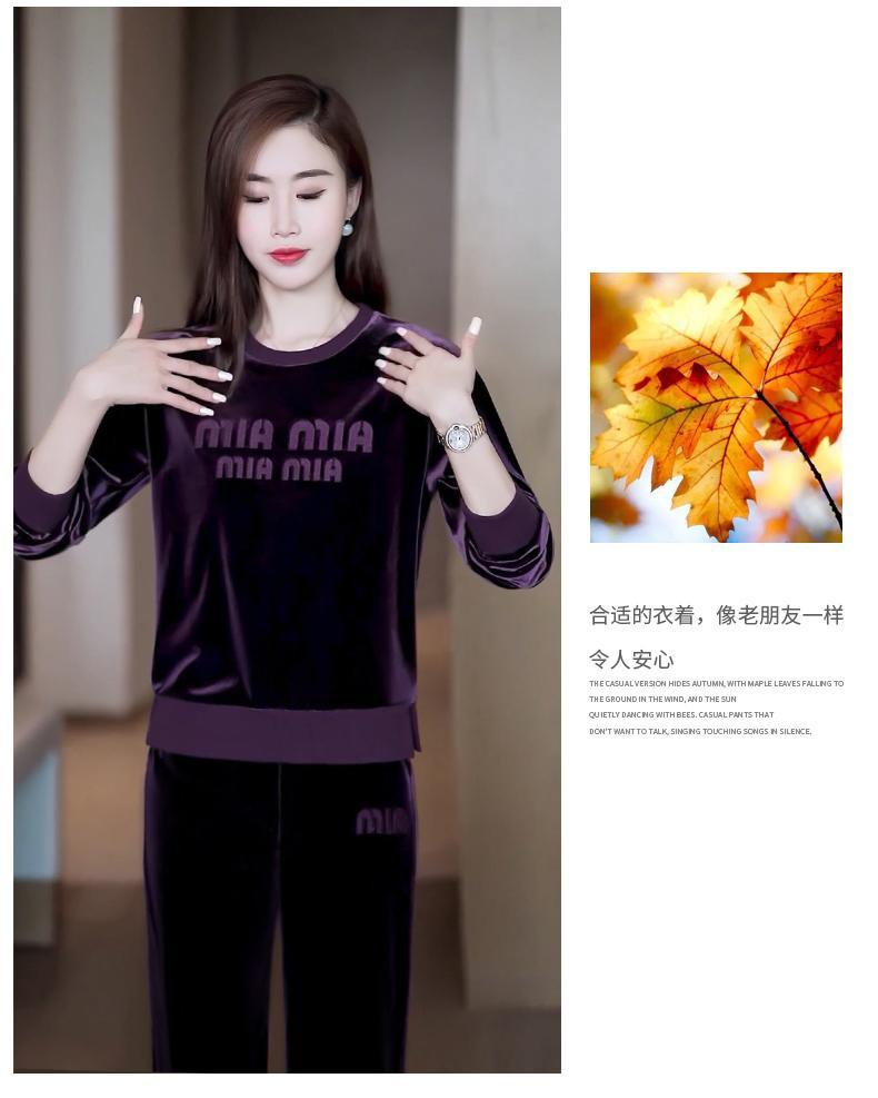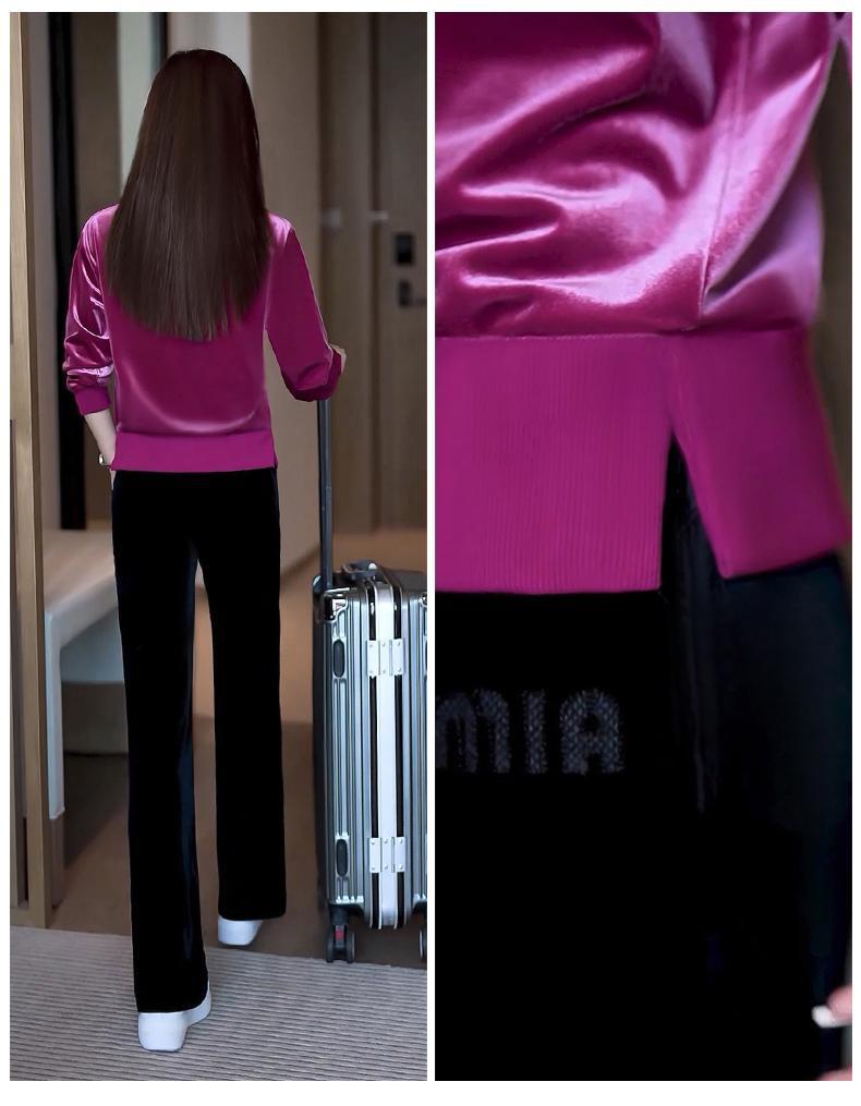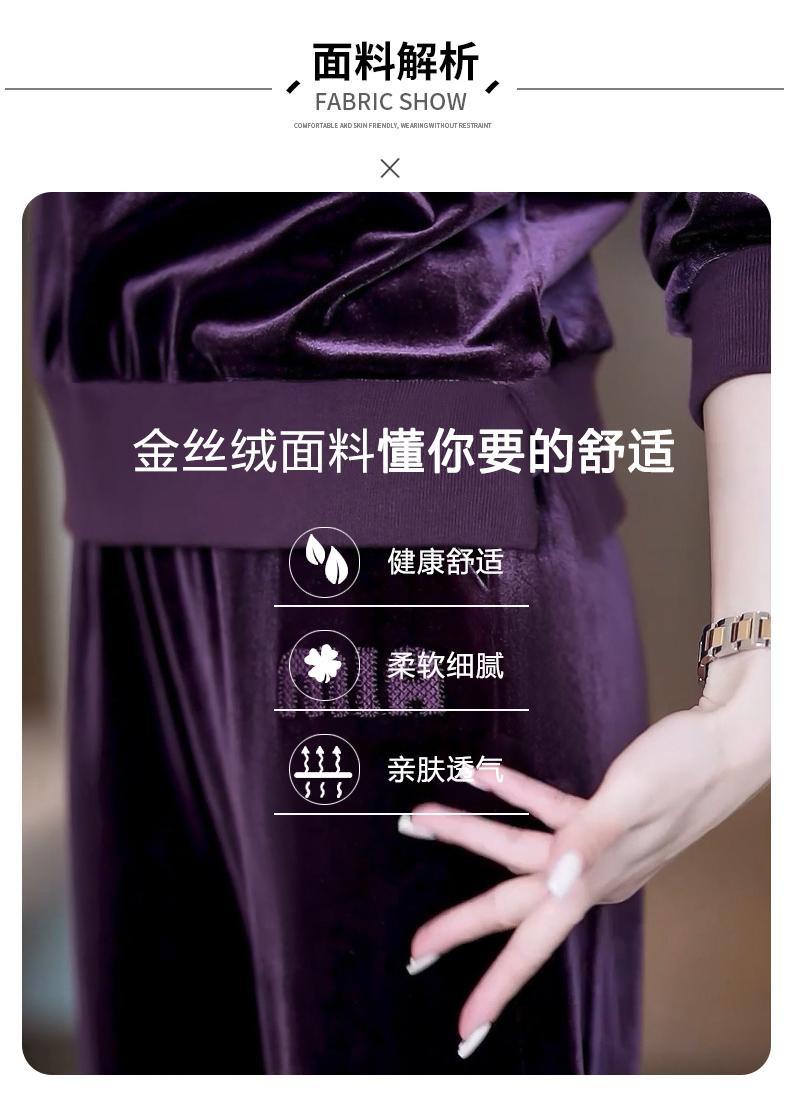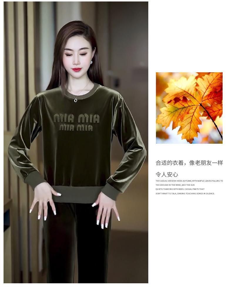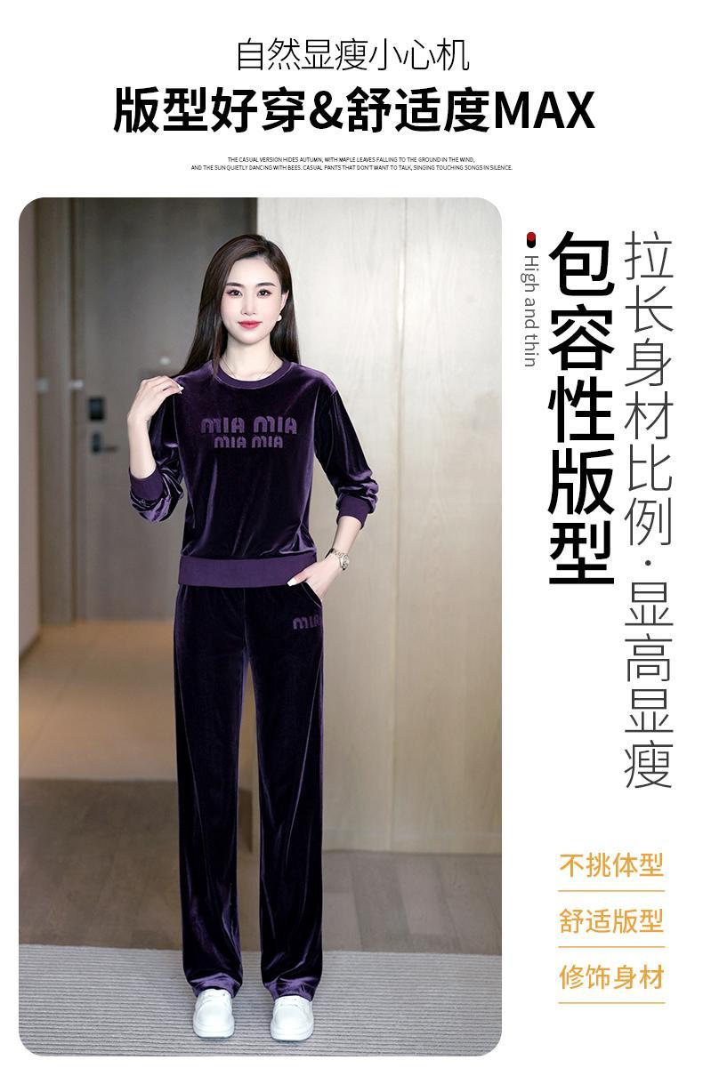 Conjunto deportivo informal de terciopelo dorado para mujer, jersey de cuello redondo, holgado y a la moda de otoño, de dos piezas, para adelgazar