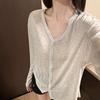 Blusa holgada con cuello en V y protector solar, cárdigan con aire acondicionado, blusa fina de manga larga, chaqueta, novedad de verano 2023, prendas de punto para mujer