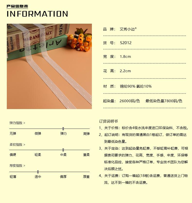 S2012# Encaje elástico de 1,8 cm para ropa interior de mujer, hecho a mano, de nailon y amoníaco.