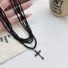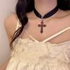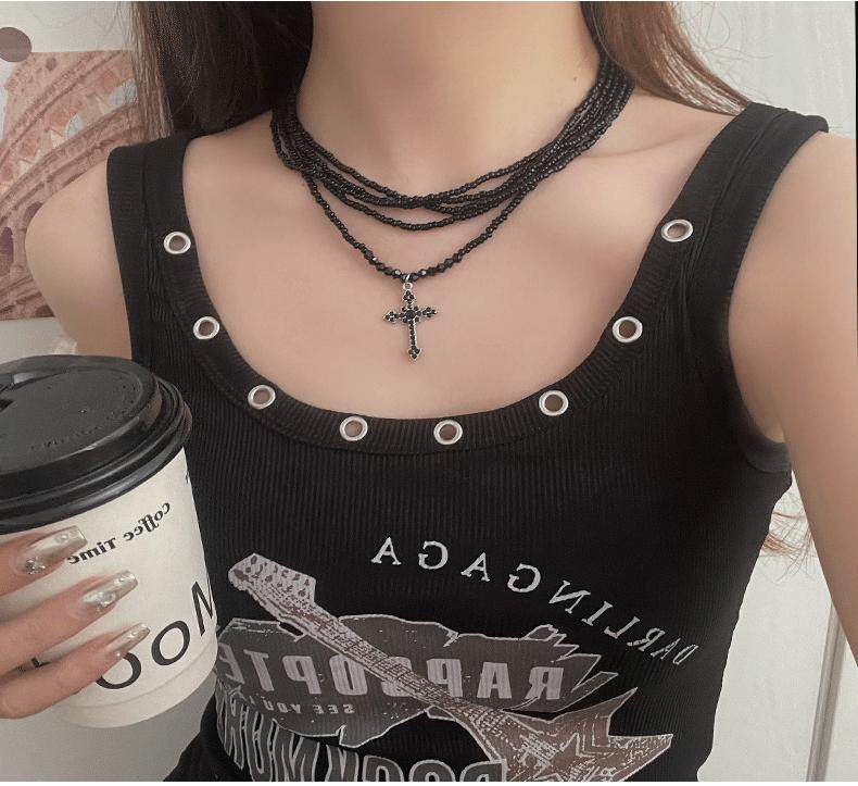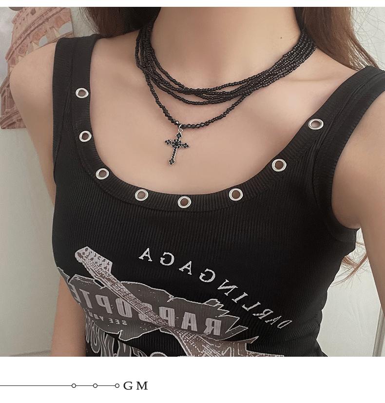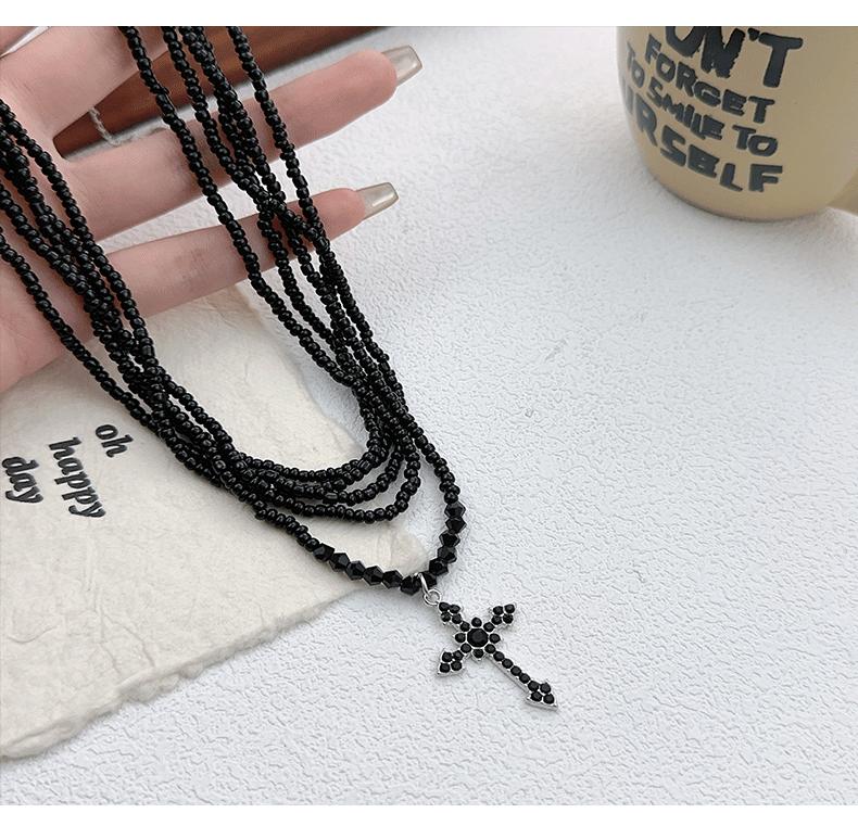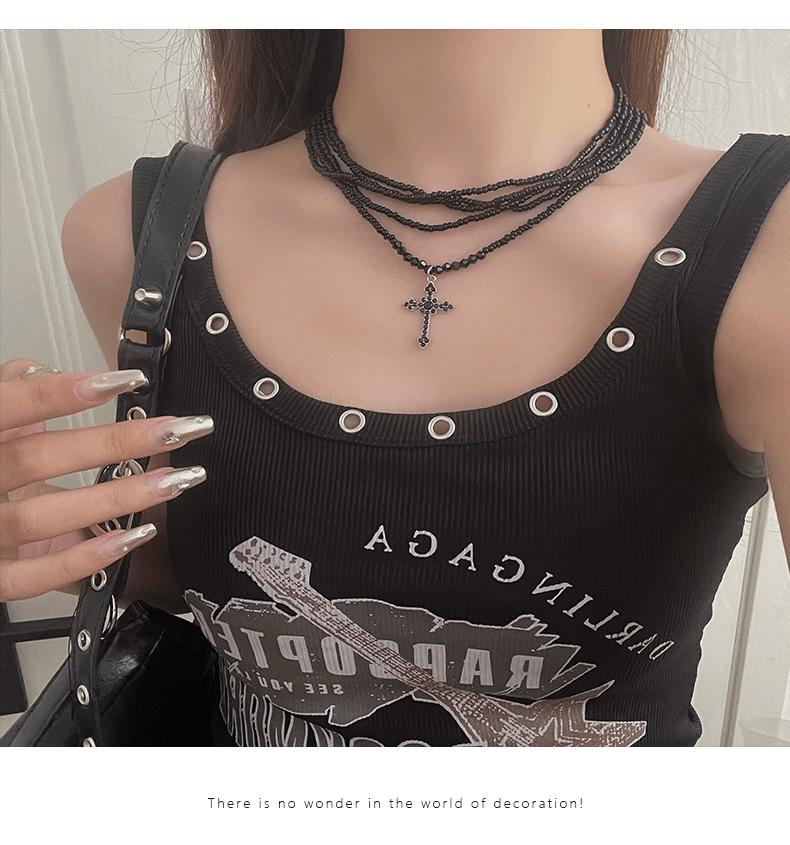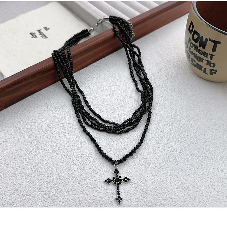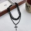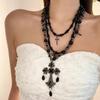 Collar vintage de cuentas cruzadas multicapa, estilo femenino, dulce y moderno, con personalidad de nicho, estilo europeo y americano, cadena de clavícula punk oscura.