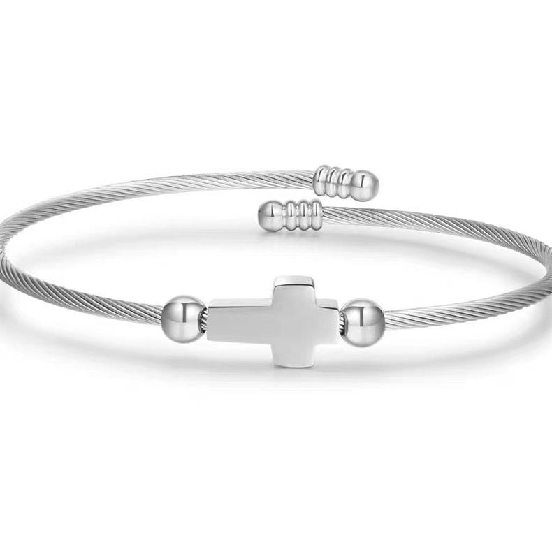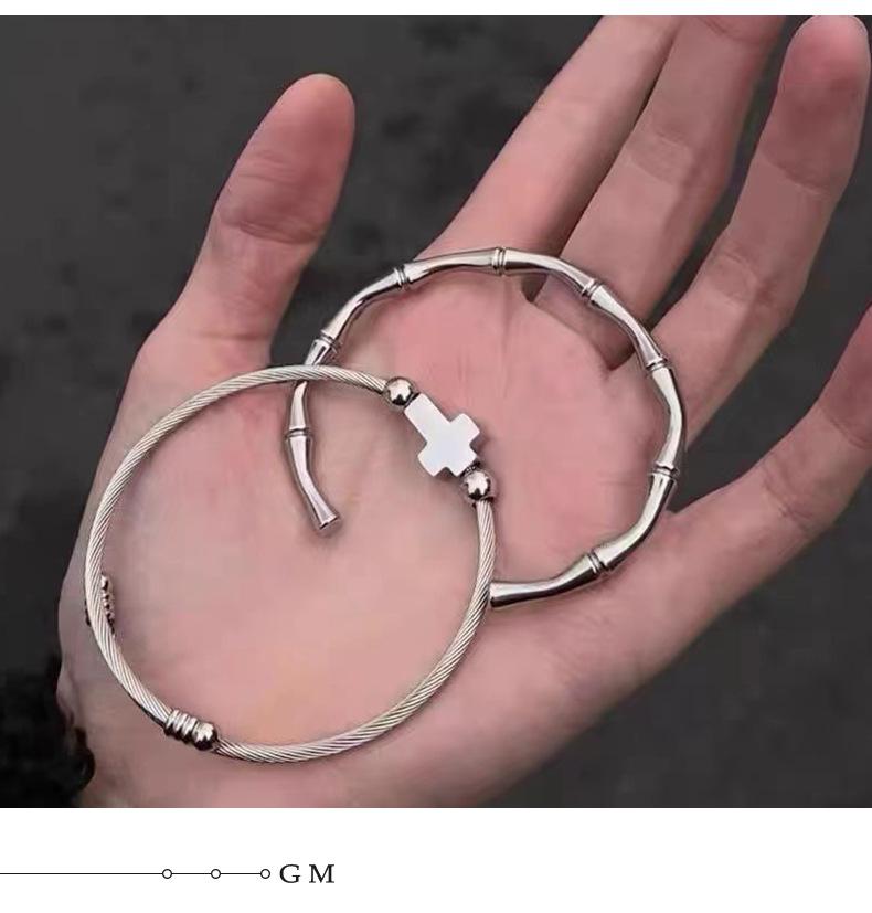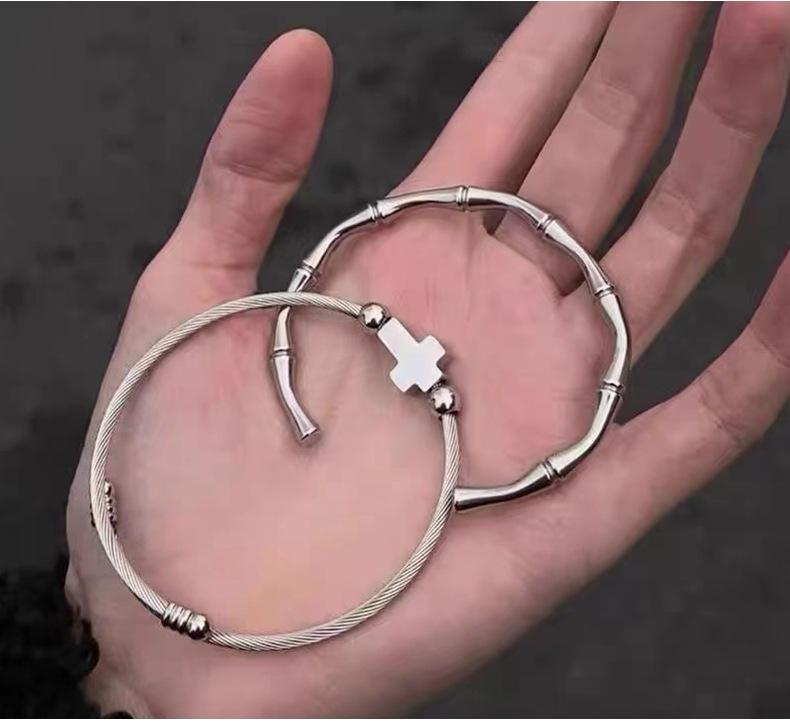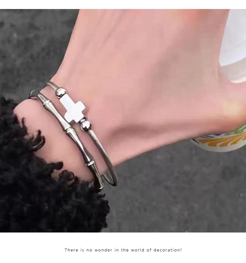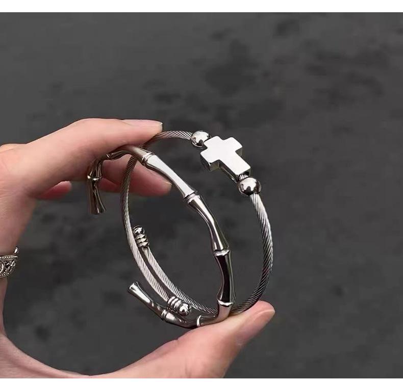 Pulsera vintage de cruz enrollada, moda personalidad, acero de titanio que no se desvanece, pulsera de bambú, moda temperamento, pareja senior
