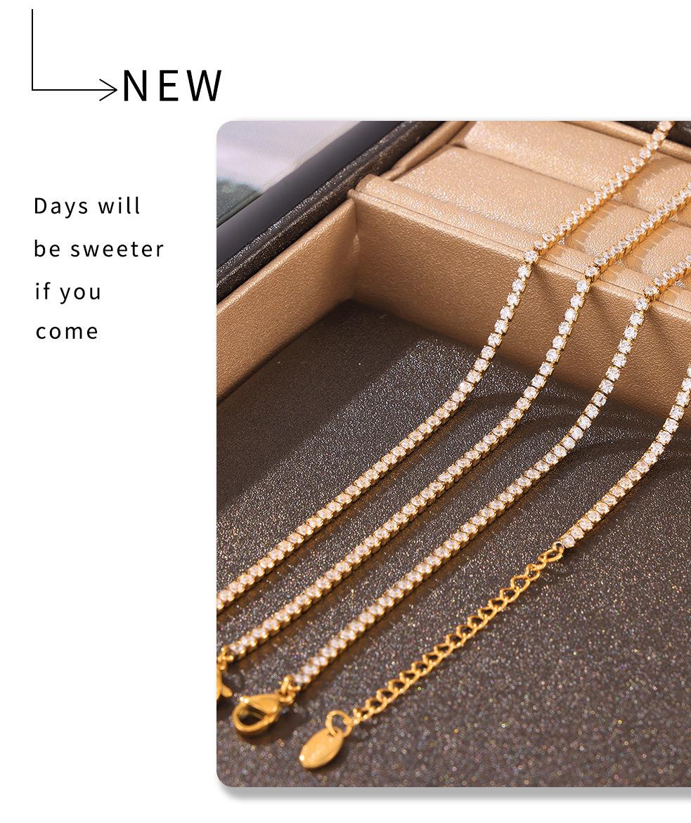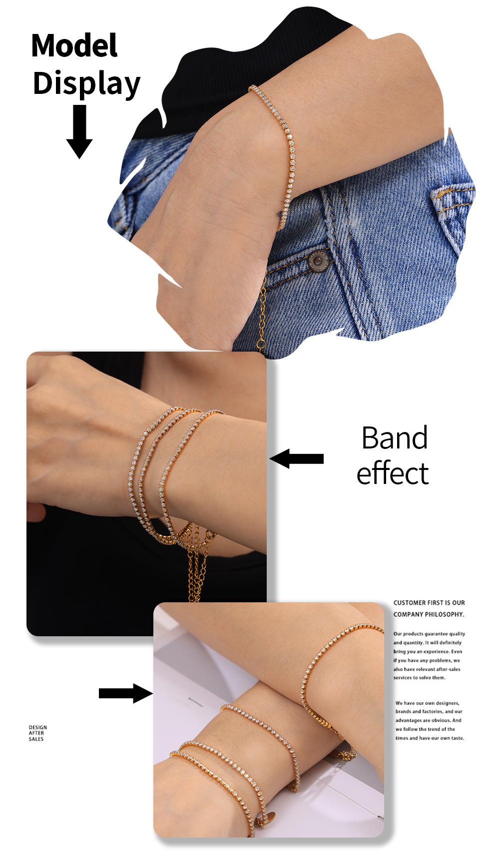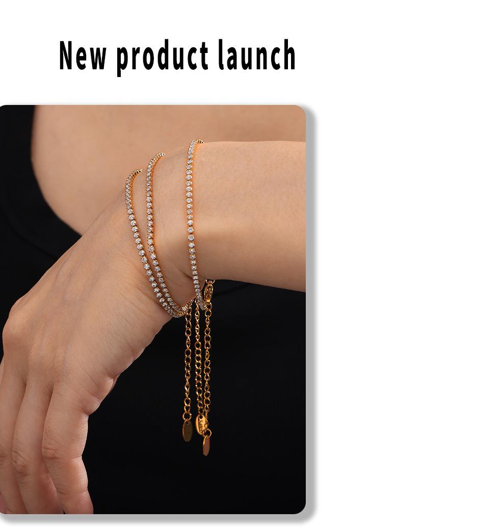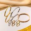 Estilo Hepburn Elegante Simple Personalidad Estilo Lujo Ligero Joyería Incrustada con Diseño de Zircón Sentido del Diseño Acero de Titanio Chapado en Oro Pulsera Gimmel