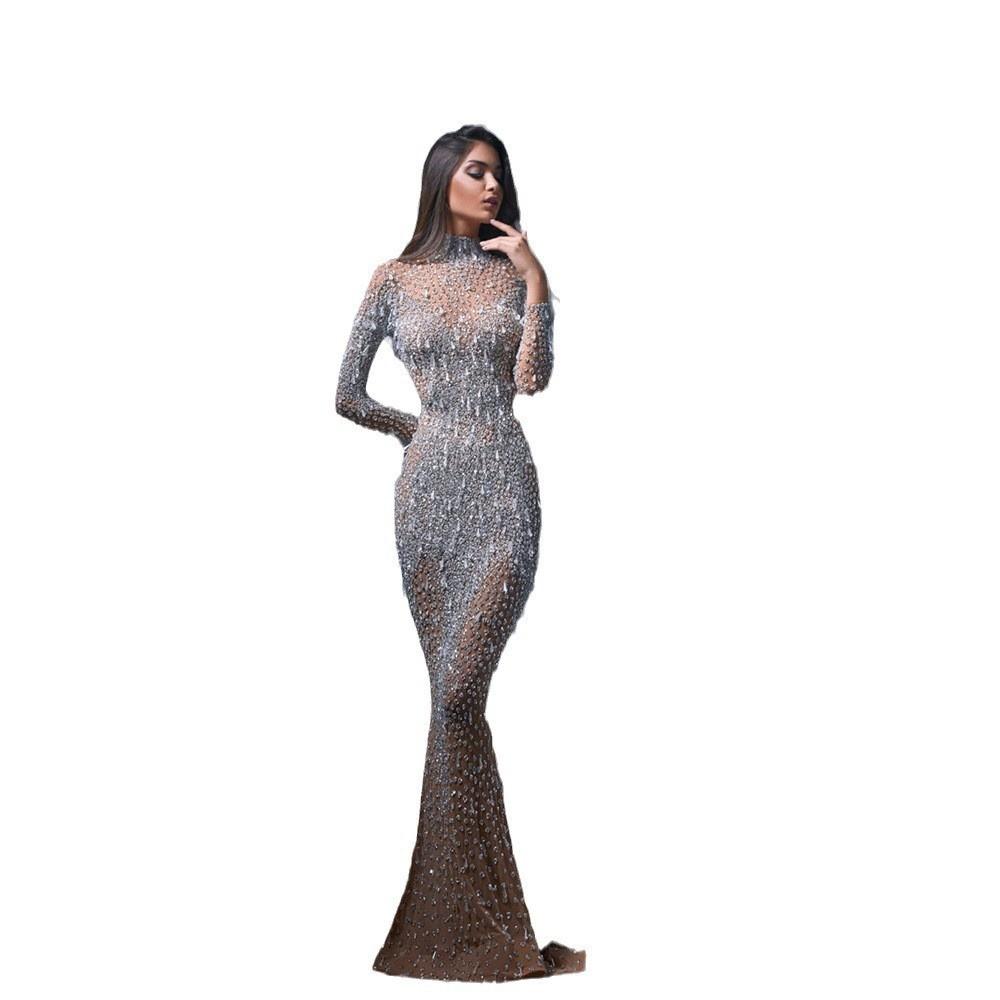 2025 Primavera Transfronteriza Nuevo Exportación Europea y Americana Ropa de Mujer Bronceado Manga Larga Ajustado Sexy Falda Larga Vestido de Noche Vestido