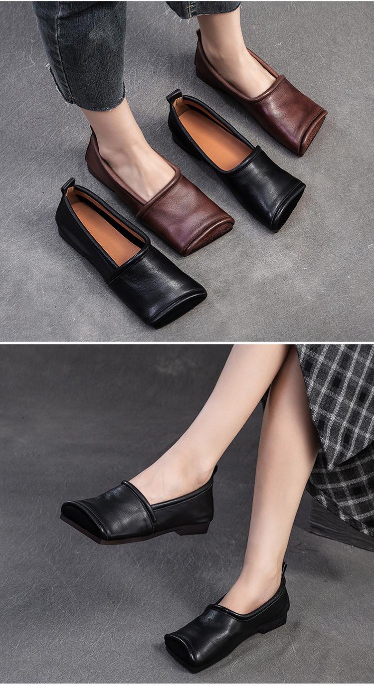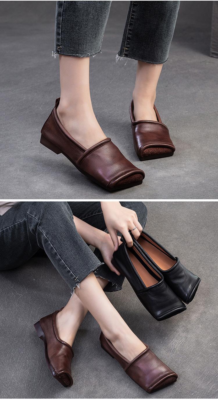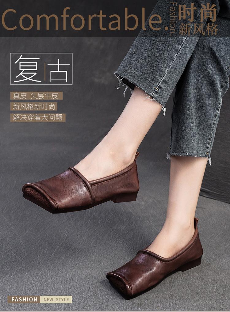 Compra Shanghai Jiebu 2024 Otoño Nuevos Mocasines Planos con Punta Cuadrada Vintage de una Sola Capa Estilo Nicho Zapatos Casuales Cómodos para Mujer al por mayor en Joom.pro