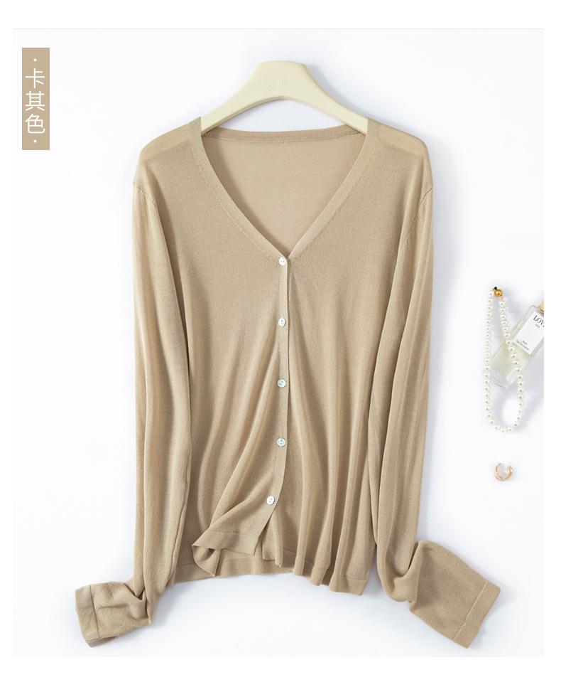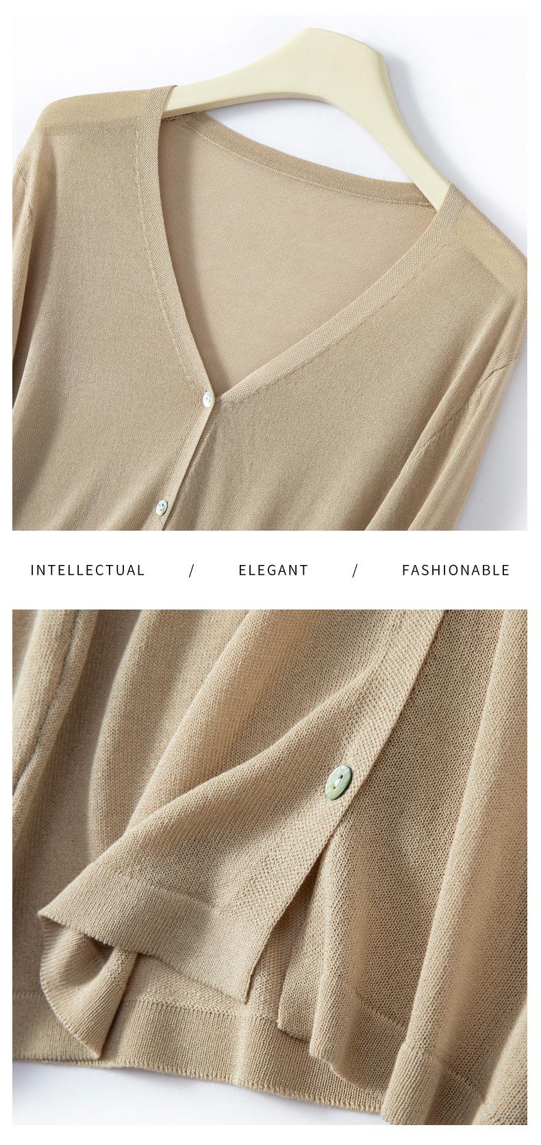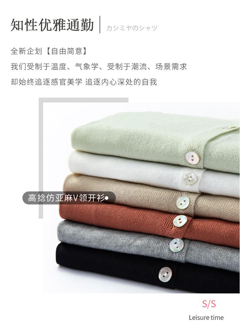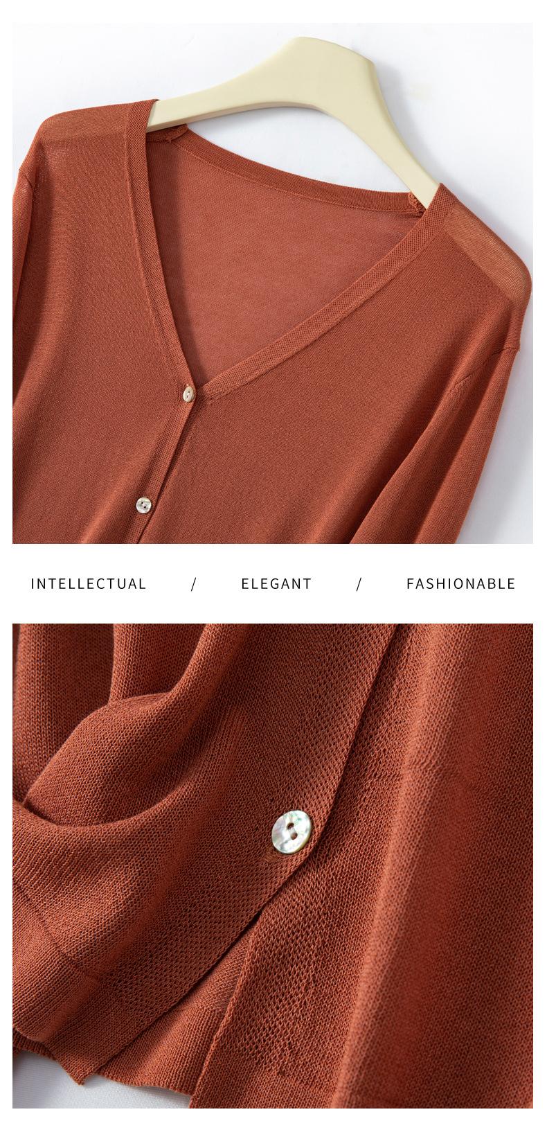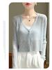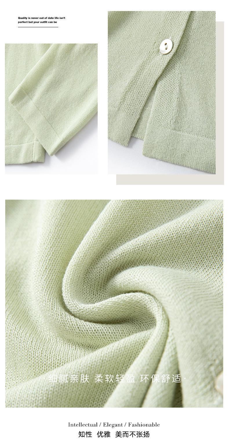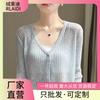 Cárdigan de punto de lino de verano 2024 para mujer, chaqueta fina de seda helada con cuello en V, blusa holgada con protección solar y aire acondicionado