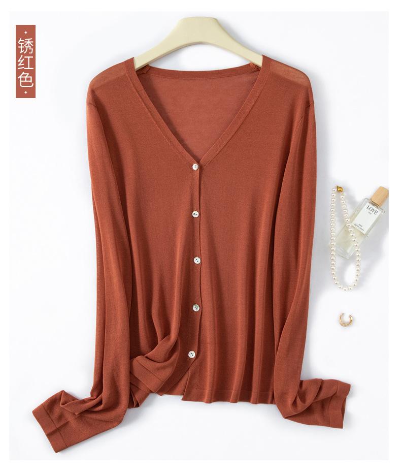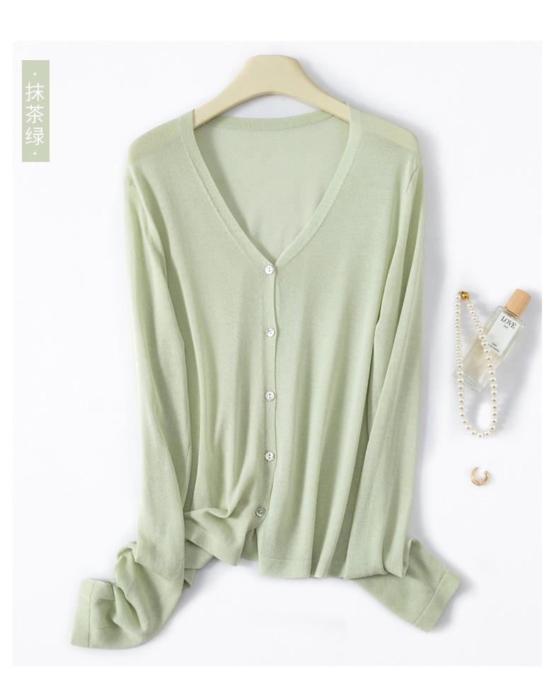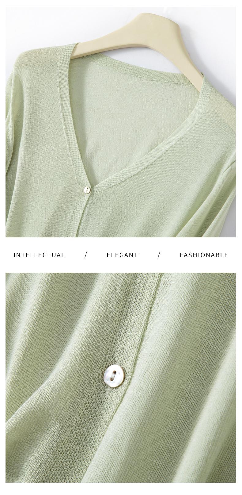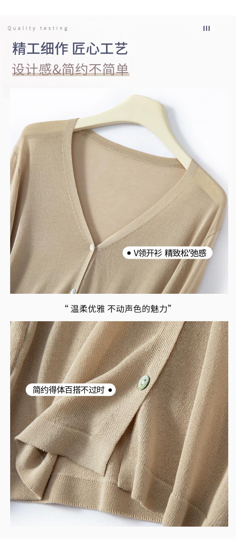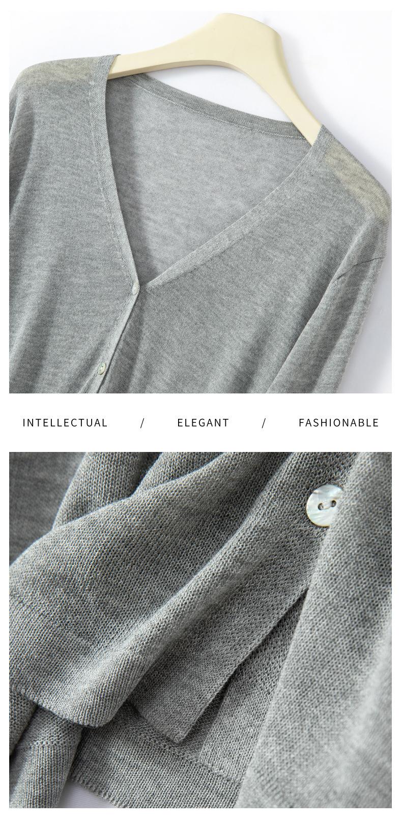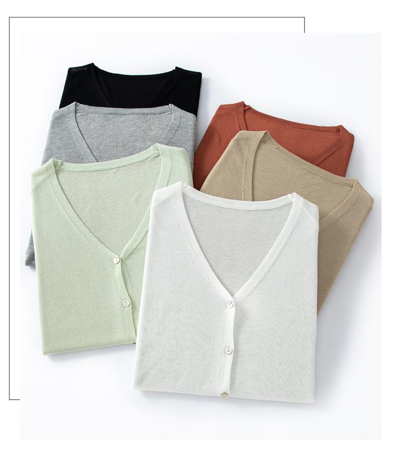 Cárdigan de punto de lino de verano 2024 para mujer, chaqueta fina de seda helada con cuello en V, blusa holgada con protección solar y aire acondicionado