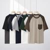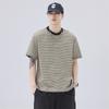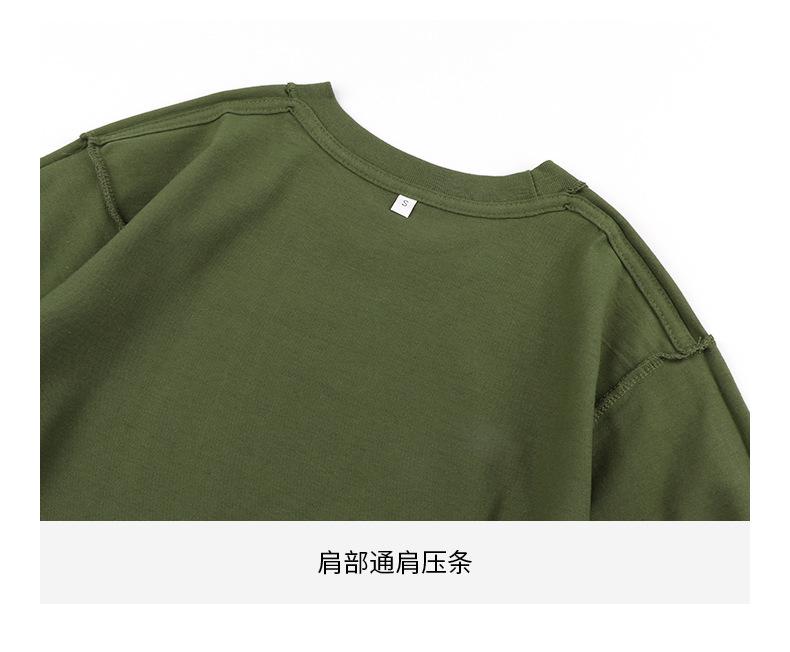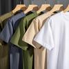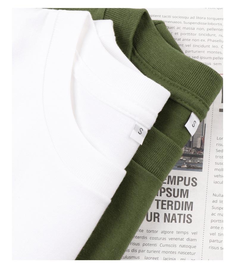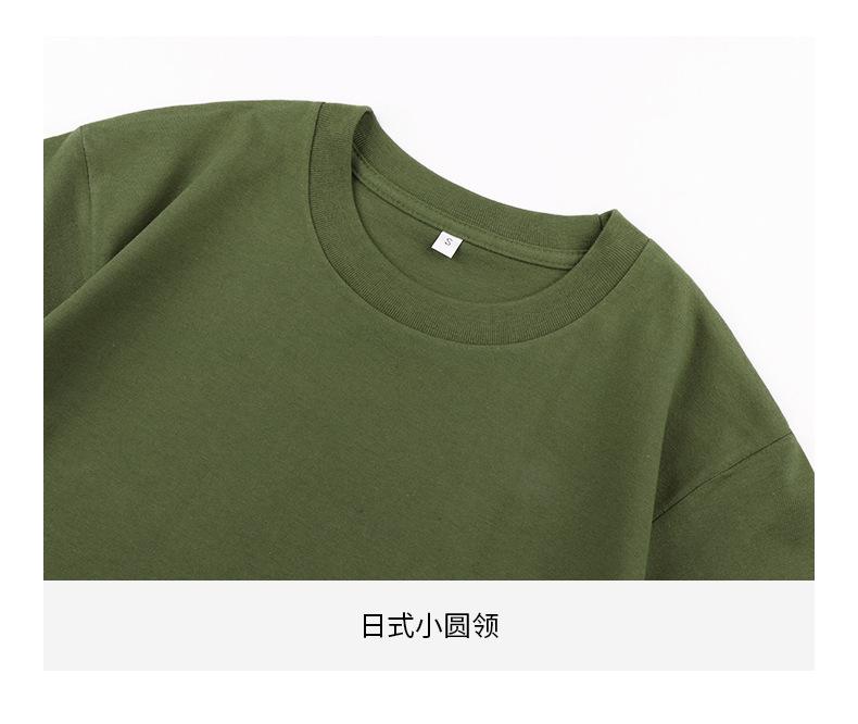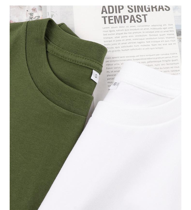Camiseta de manga corta con cuello redondo de algodón grueso de 230 g para hombre y mujer, de verano, color liso, holgada, estilo japonés, retro, informal, combinable.