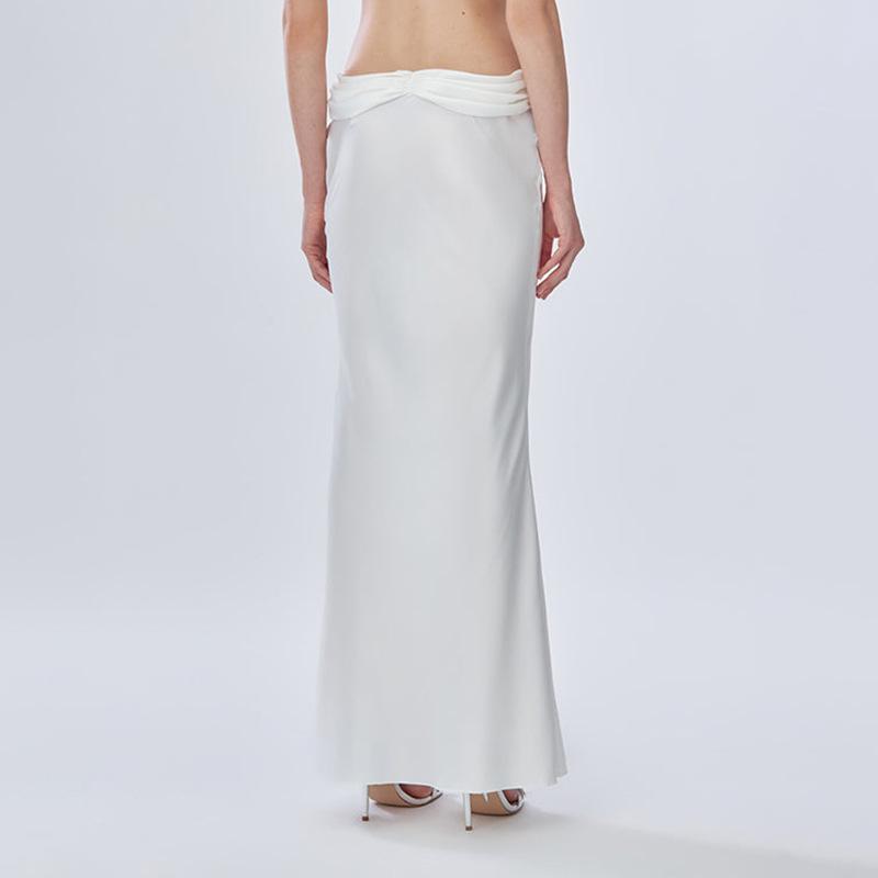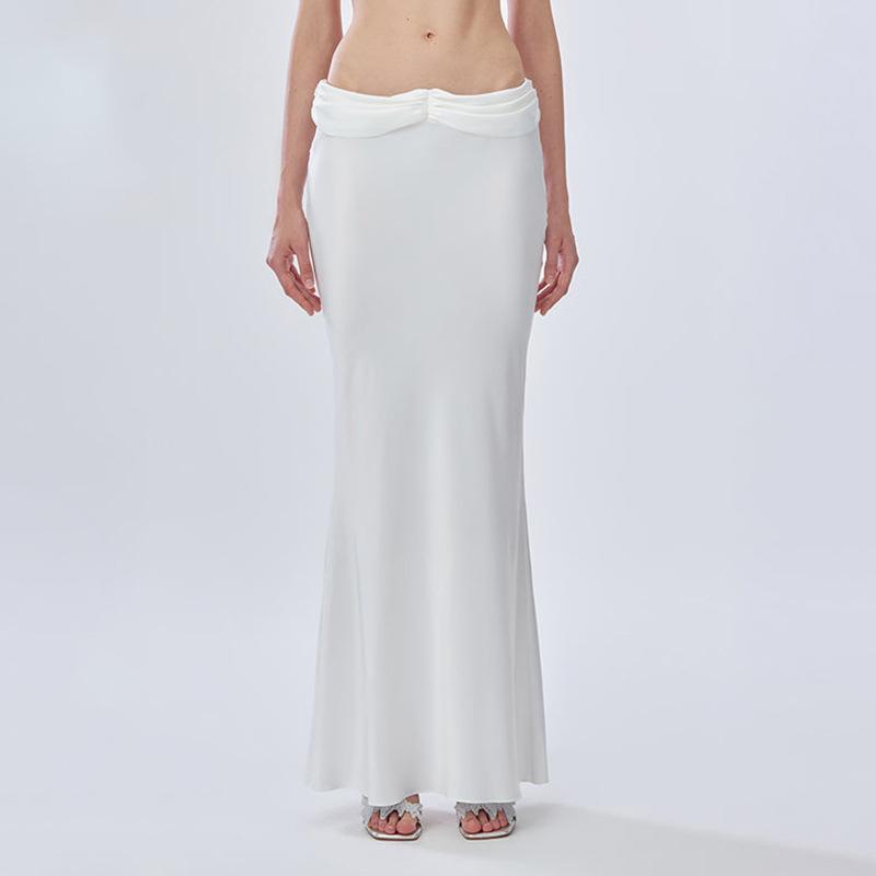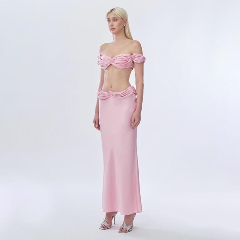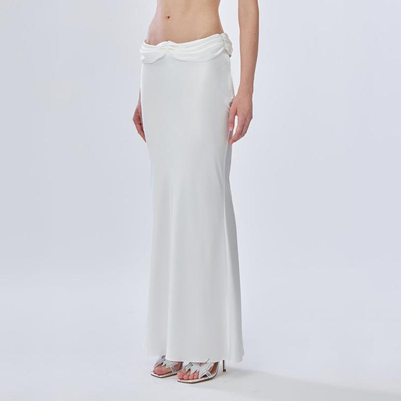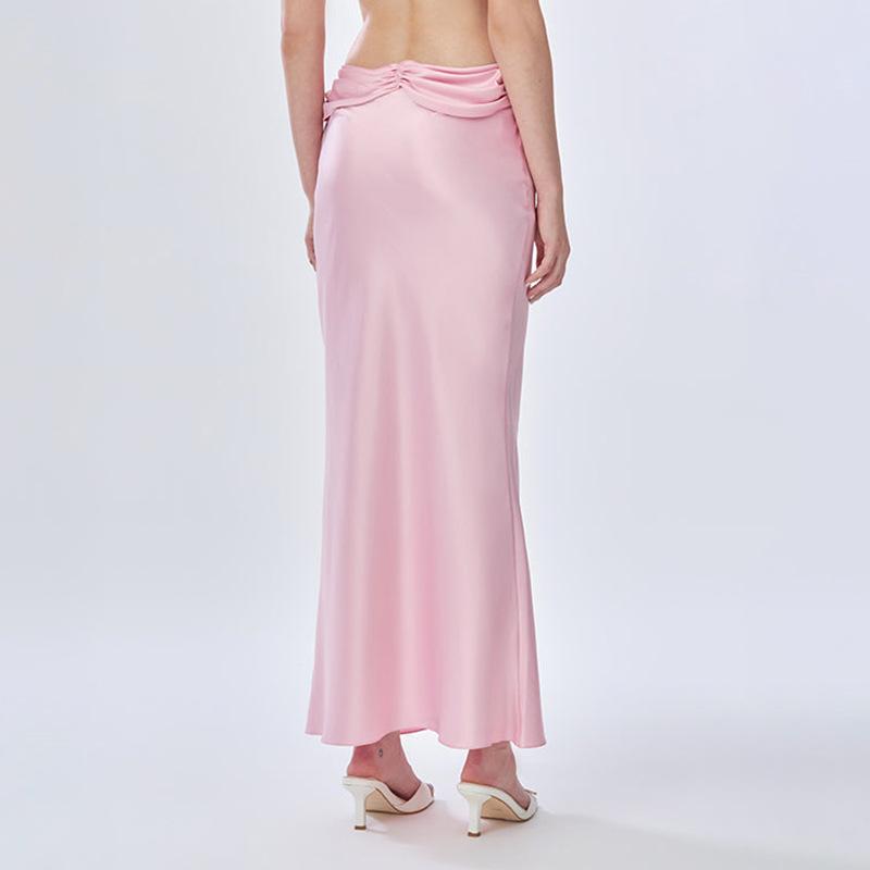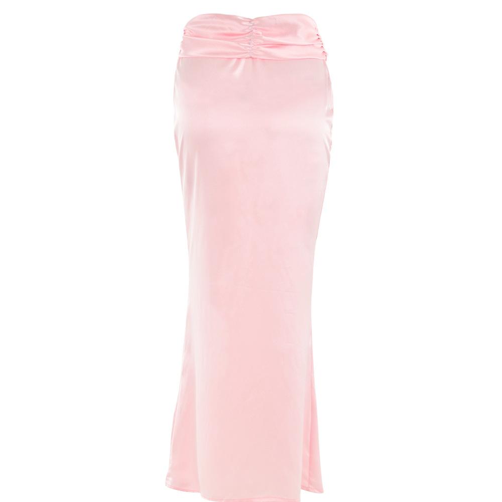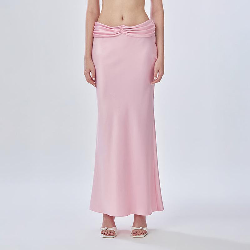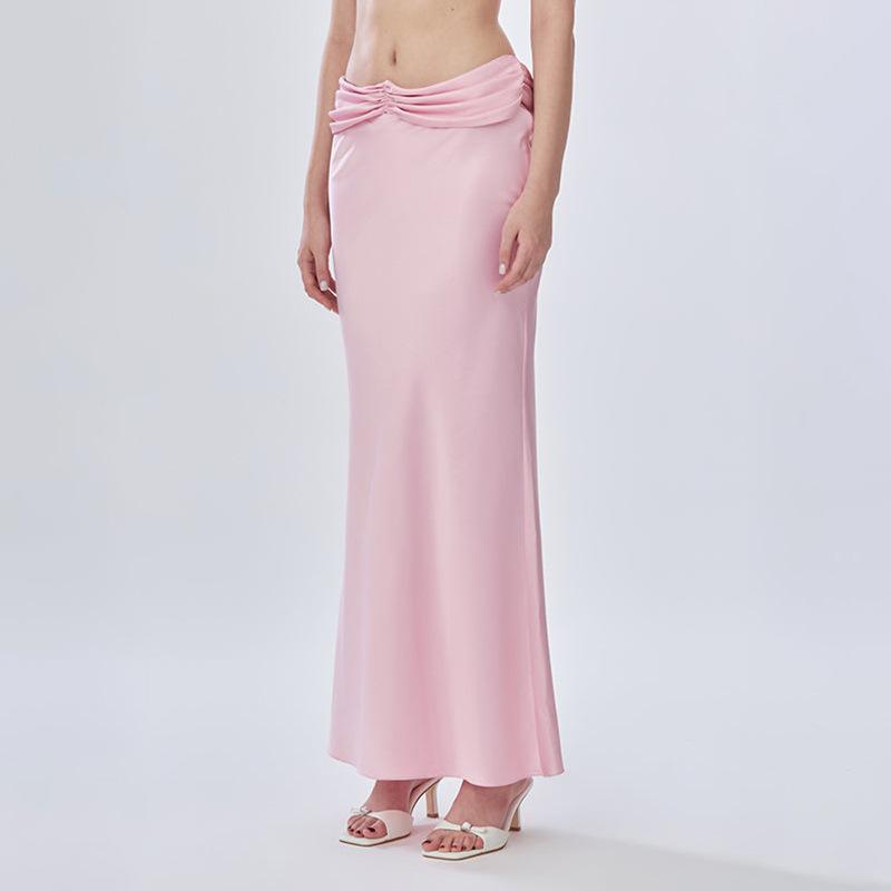 Pink, White, Satin material + unique waist pleated design + fishtail hem, Color matching code in stock