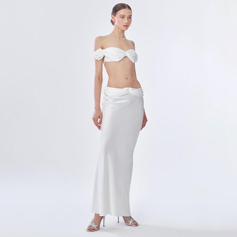Falda nueva de venta caliente 2023 transfronteriza europea y americana, falda sexy y sexy para chicas, elegante, ajustada, de satén, falda larga de cola de pez