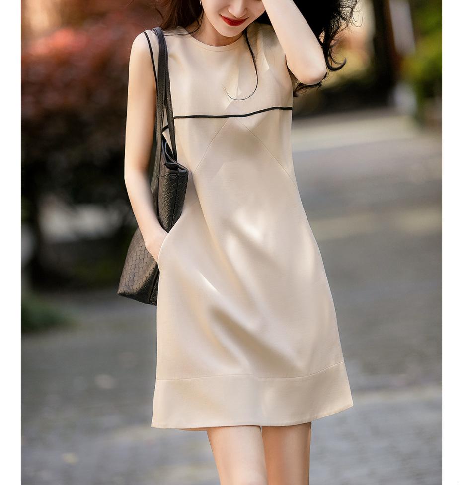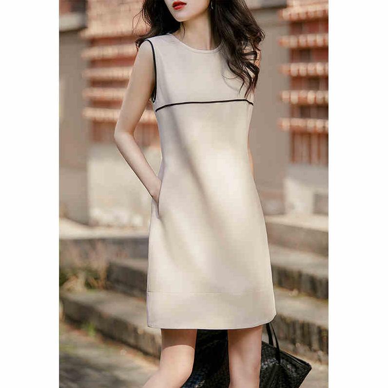 Estilo Europeo Verano 2022 Suelto Adelgazante Francés Elegante Sencillo Moda Versátil Para Viajar Adelgazante Vestido Línea A para Mujeres