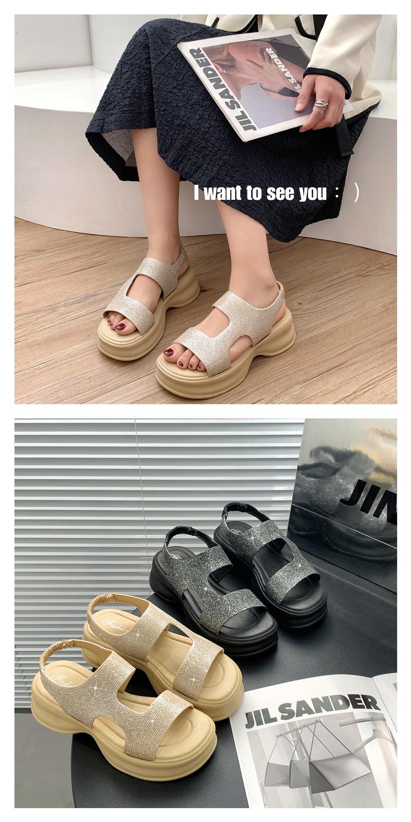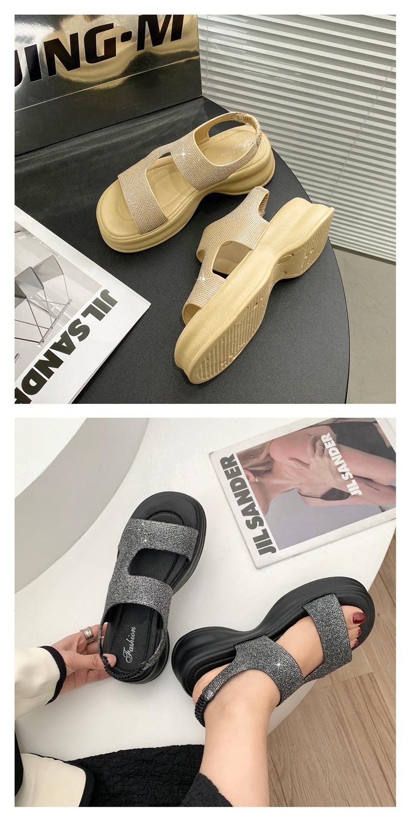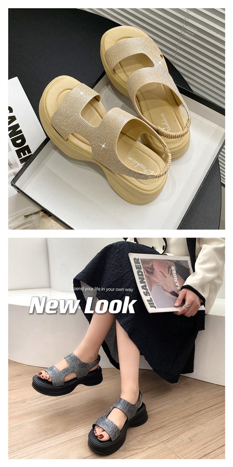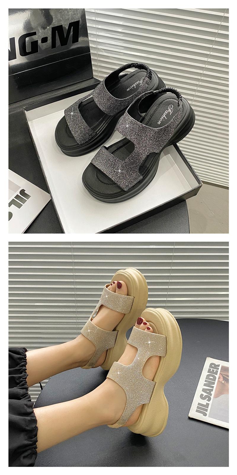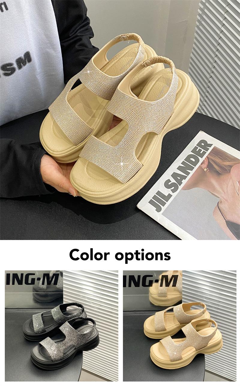Sandalias de Moda de Suela Gruesa Heli Shark Verano Nuevo Casual Diamante Flash Una Línea Calzado Exterior Sandalias de Mujer Color Sólido Zapatos de Mujer