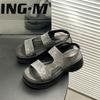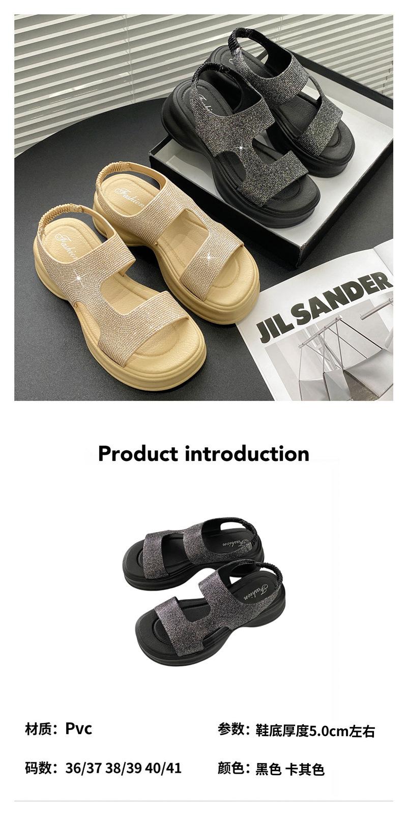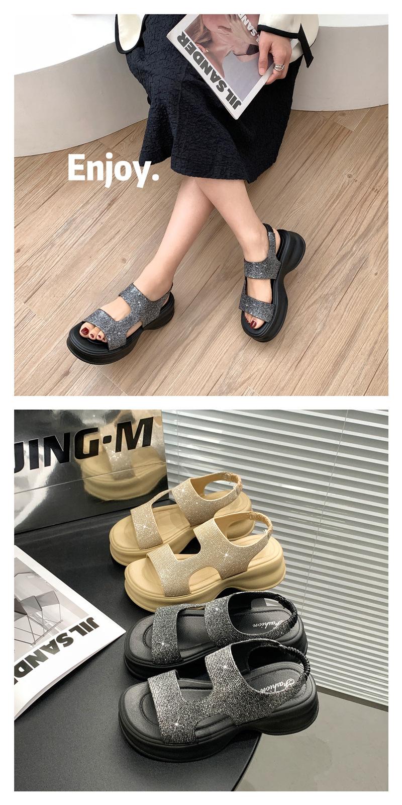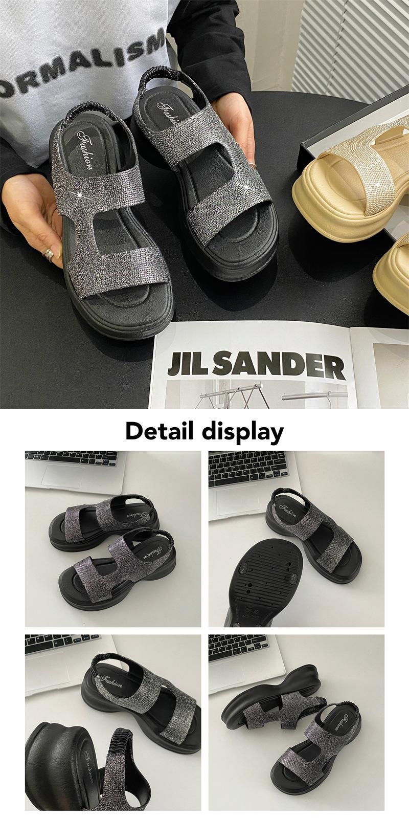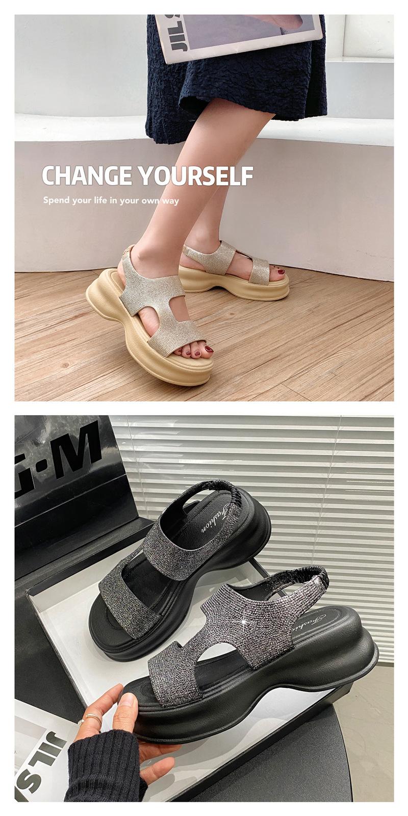 Sandalias de Moda de Suela Gruesa Heli Shark Verano Nuevo Casual Diamante Flash Una Línea Calzado Exterior Sandalias de Mujer Color Sólido Zapatos de Mujer