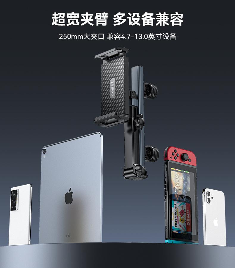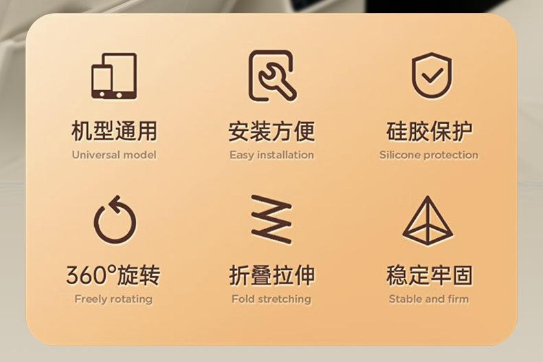 3. La goma de silicona en los brazos de sujeción izquierdo y derecho y la goma de silicona en el panel se complementan entre sí, protegiendo eficazmente la tableta o el teléfono móvil en uso, y haciendo la sujeción más estable.