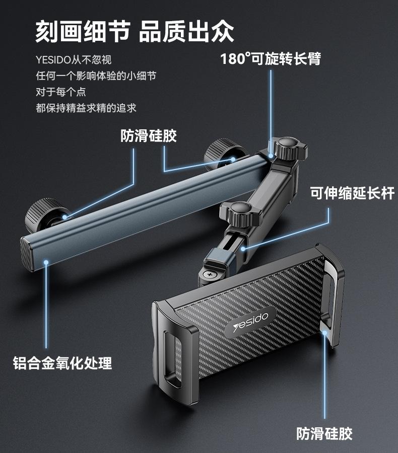 1. El cuerpo principal del soporte está hecho de aleación de aluminio oxidado, que es robusto y duradero, con una apariencia de alta gama. La posición de bloqueo con la varilla metálica del respaldo adopta un diseño de envoltura de silicona de doble cara, lo que hace que el bloqueo sea más seguro.