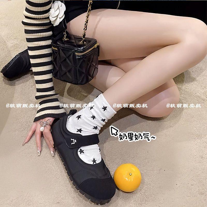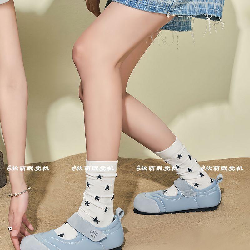 Calcetines de estrella en relieve para mujer, negros y blancos, sencillos, combinan con todo, estilo preppy, verano, delgados, lindos, corazón de niña, estudiante, largo medio