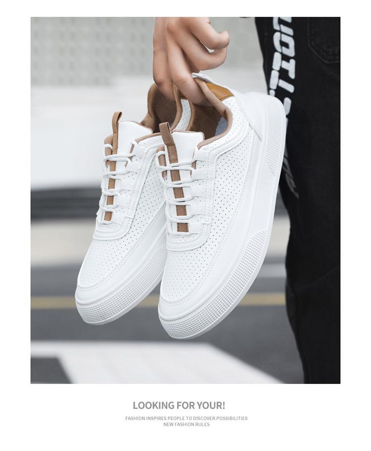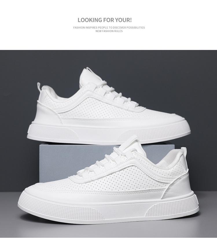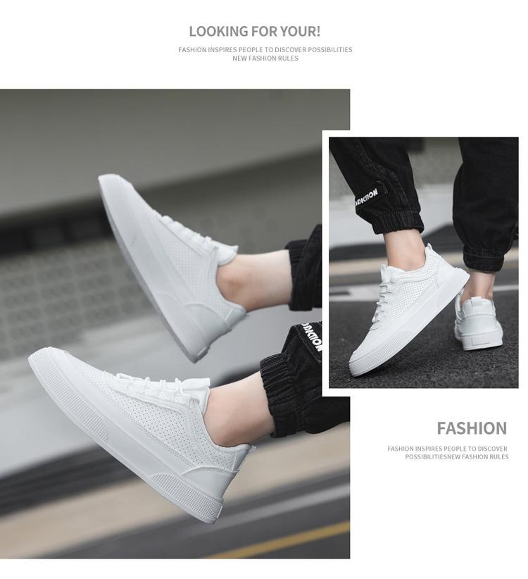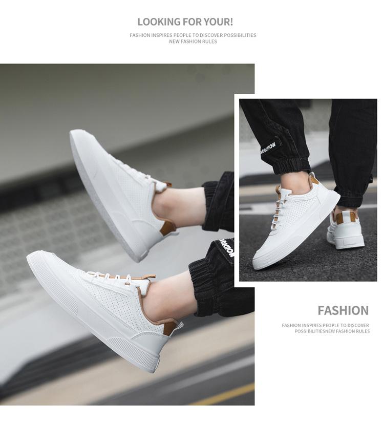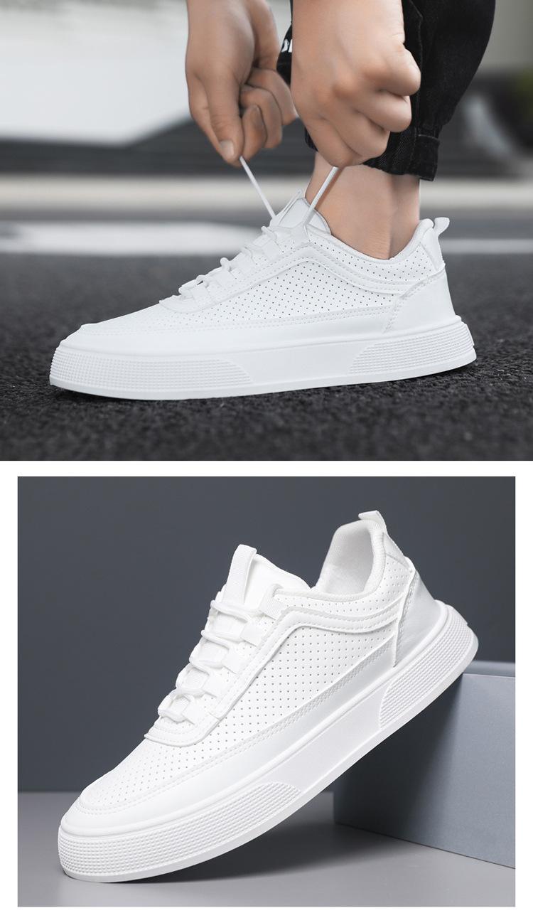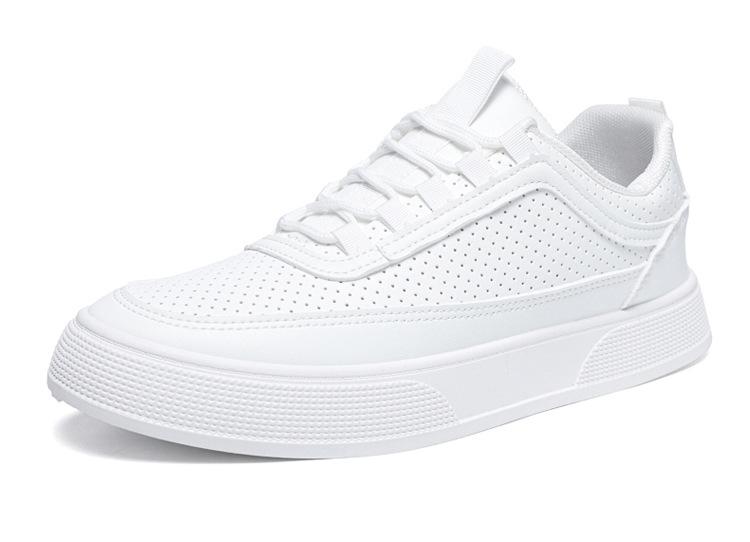 Zapatos blancos de primavera para hombre, parte superior de cuero perforado, transpirables, de caña baja, con suela blanda, informales, de moda y de talla grande.
