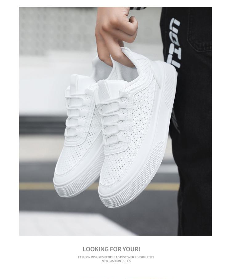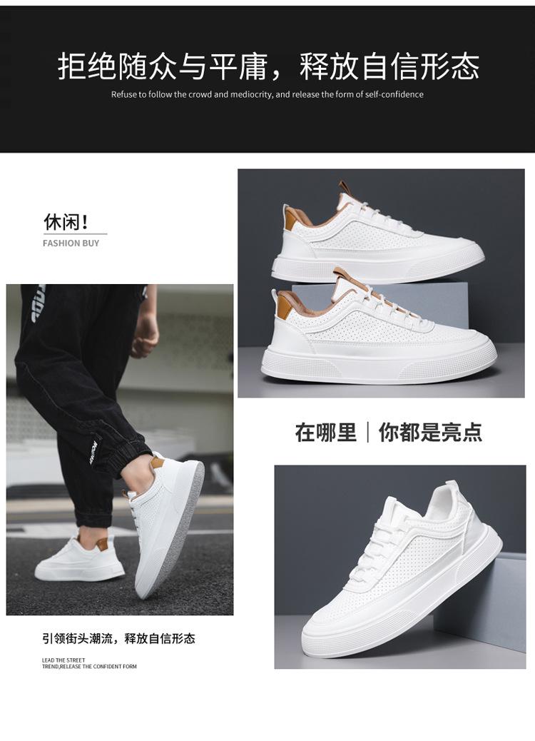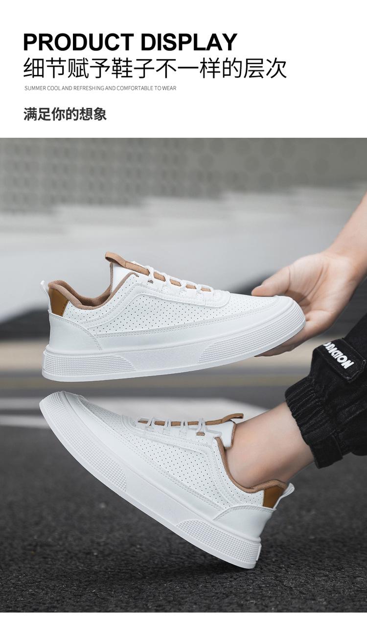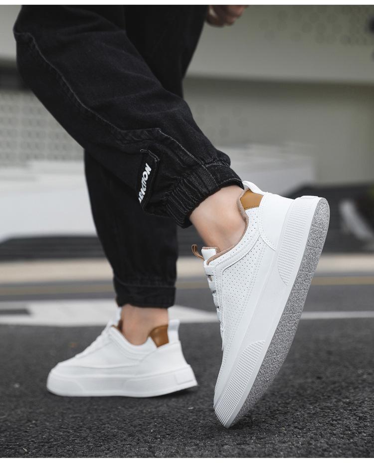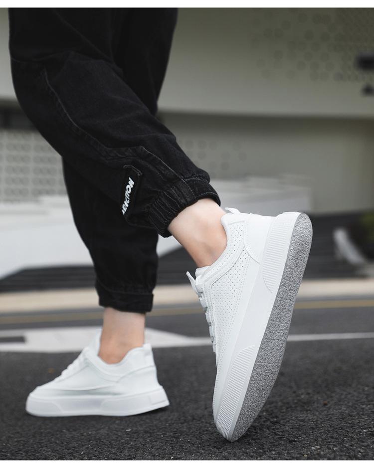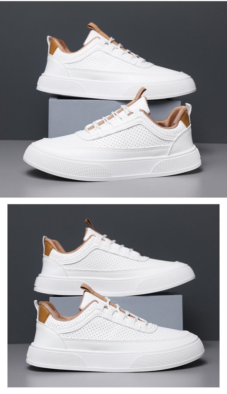 Zapatos blancos de primavera para hombre, parte superior de cuero perforado, transpirables, de caña baja, con suela blanda, informales, de moda y de talla grande.