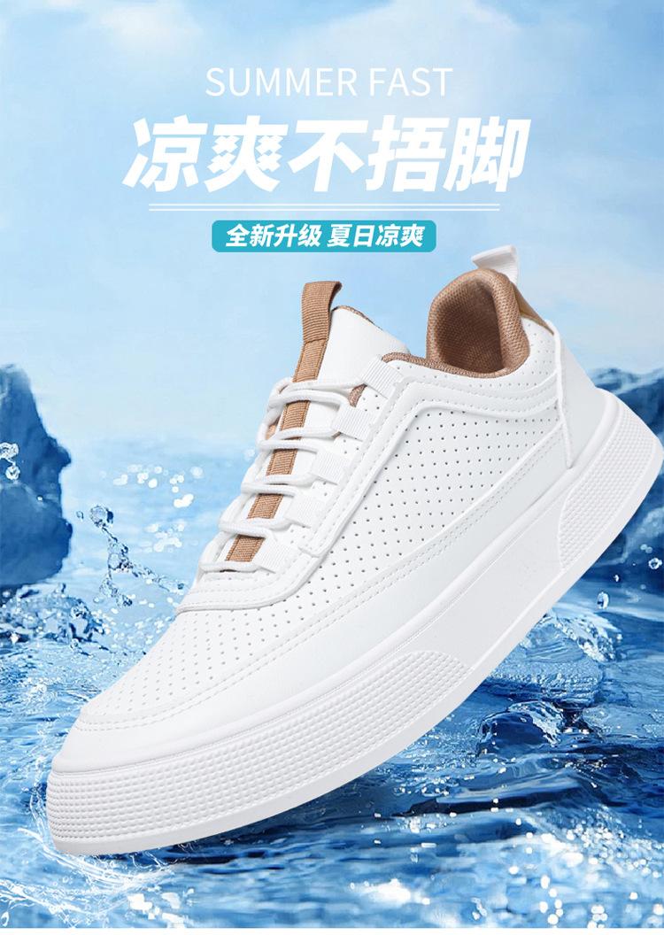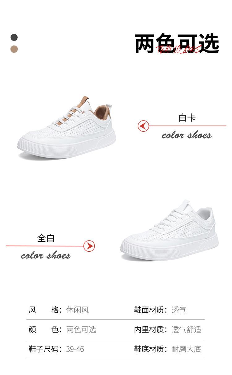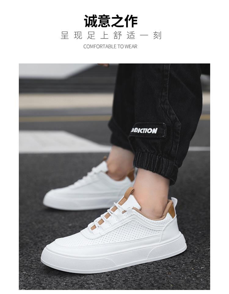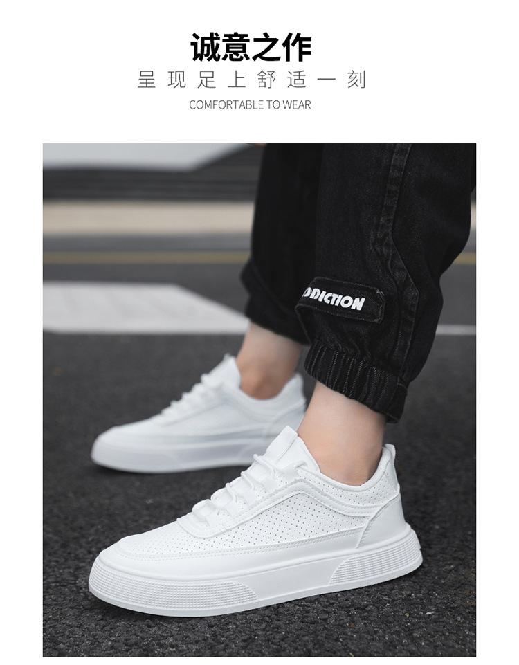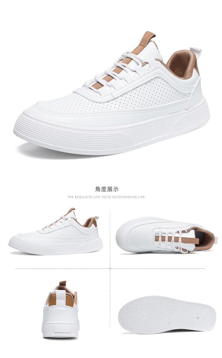 Zapatos blancos de primavera para hombre, parte superior de cuero perforado, transpirables, de caña baja, con suela blanda, informales, de moda y de talla grande.