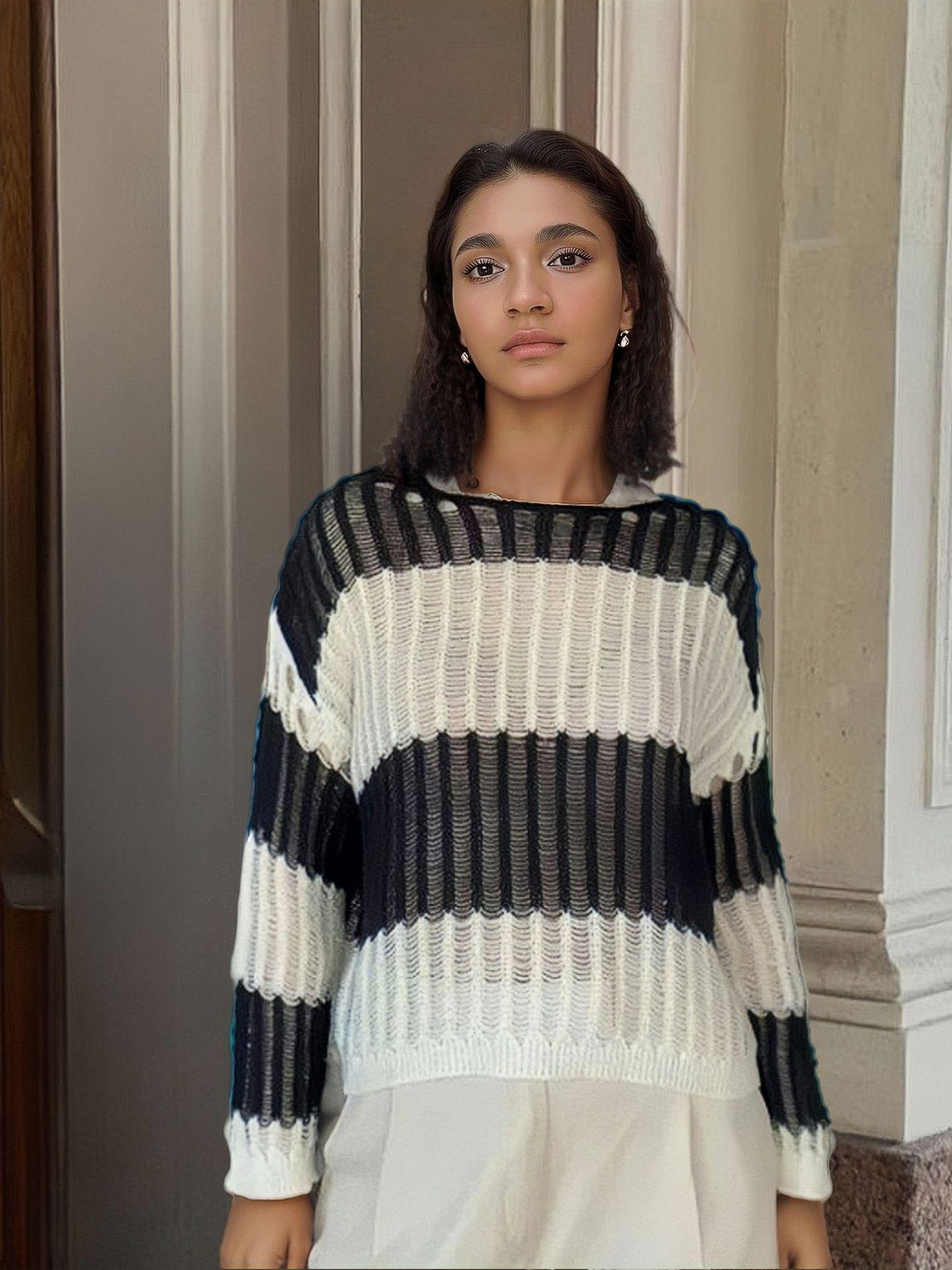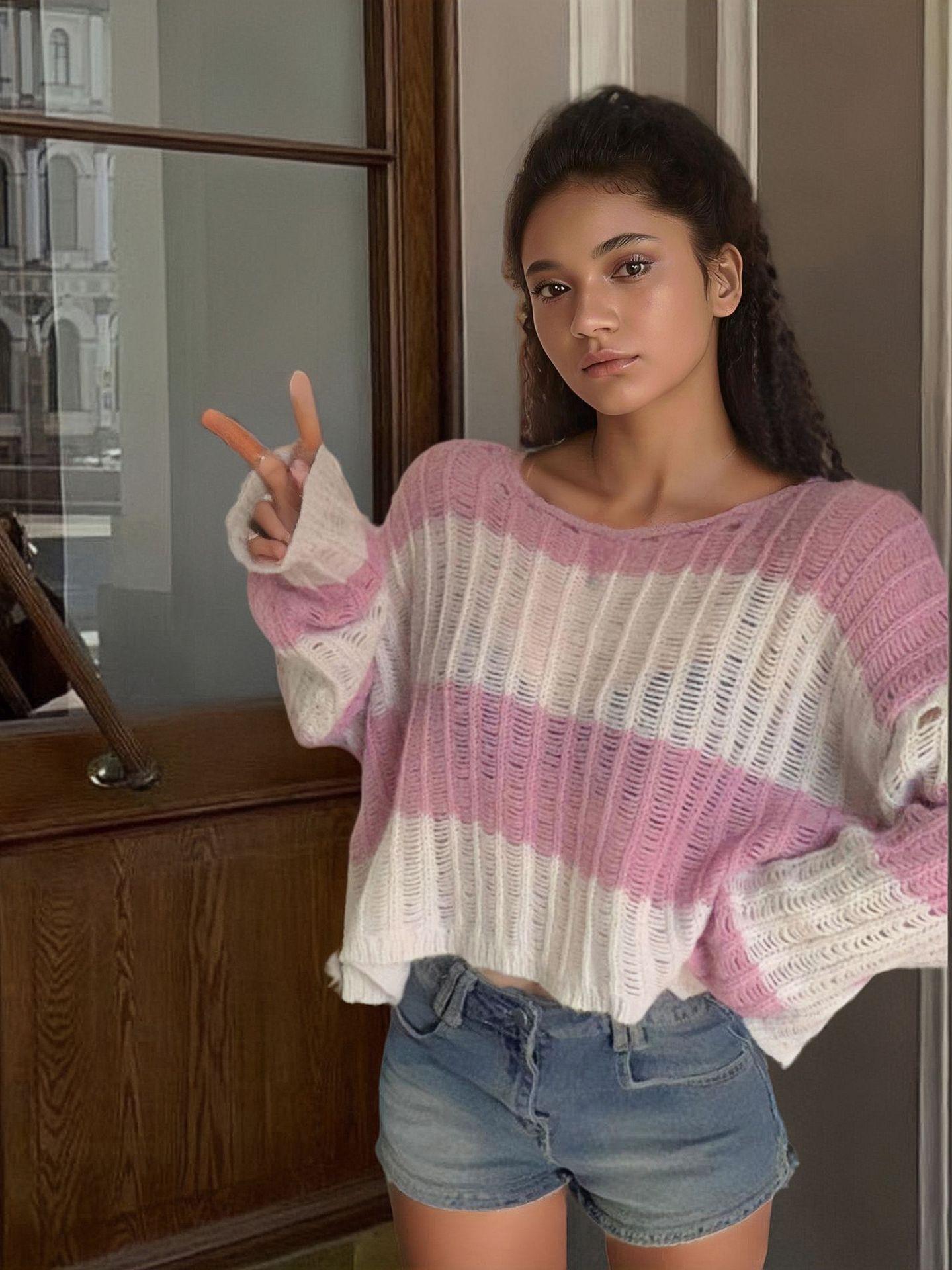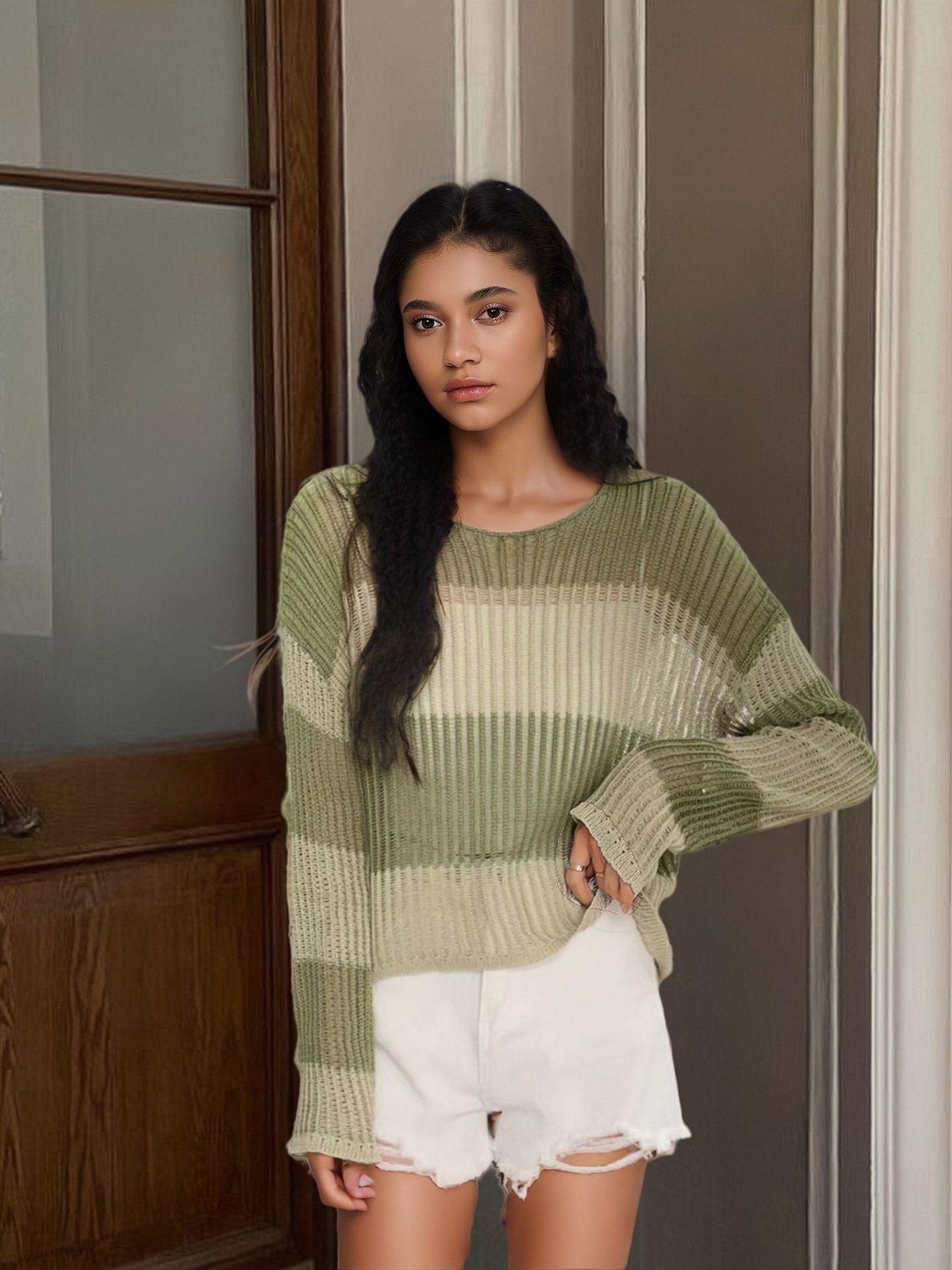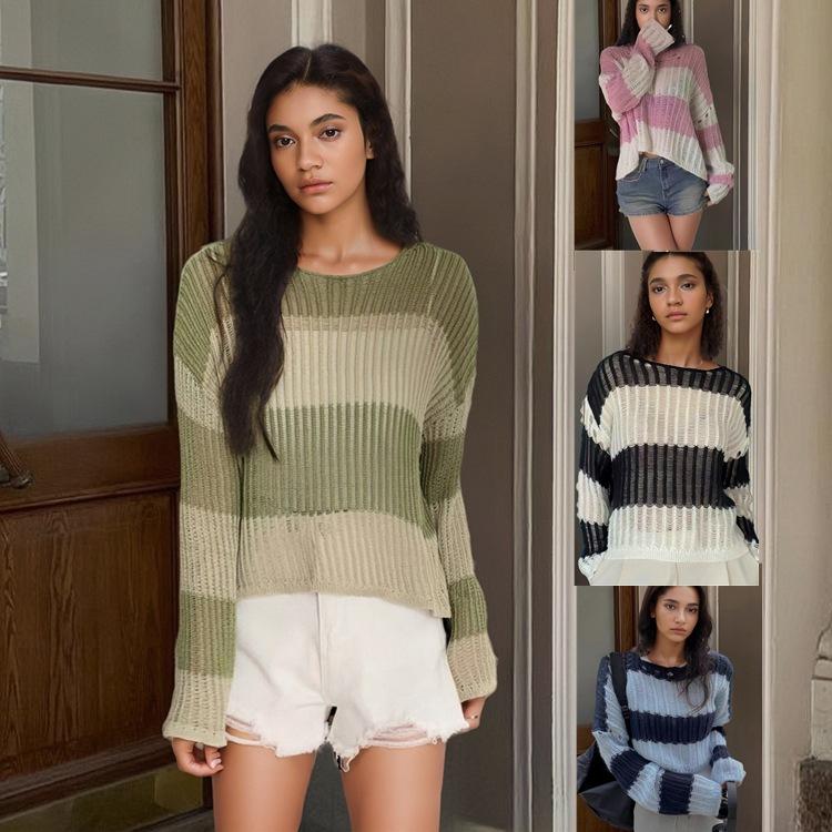2025 Vacaciones de Playa Transfronterizas Amazon Protección Solar Bikini Cover-Up Pulóver Cuello Redondo Bajo Corte Corto Tejido de Punto