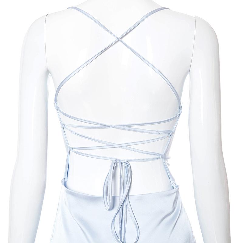 Pure Color Sling Fashion Strap Low-cut High Waist Sexy Dress for Women