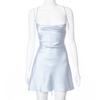 A21DS195 Vestido sexy de verano para mujer, estilo europeo y americano, con tirantes finos, cintura alta y corte bajo, de color liso