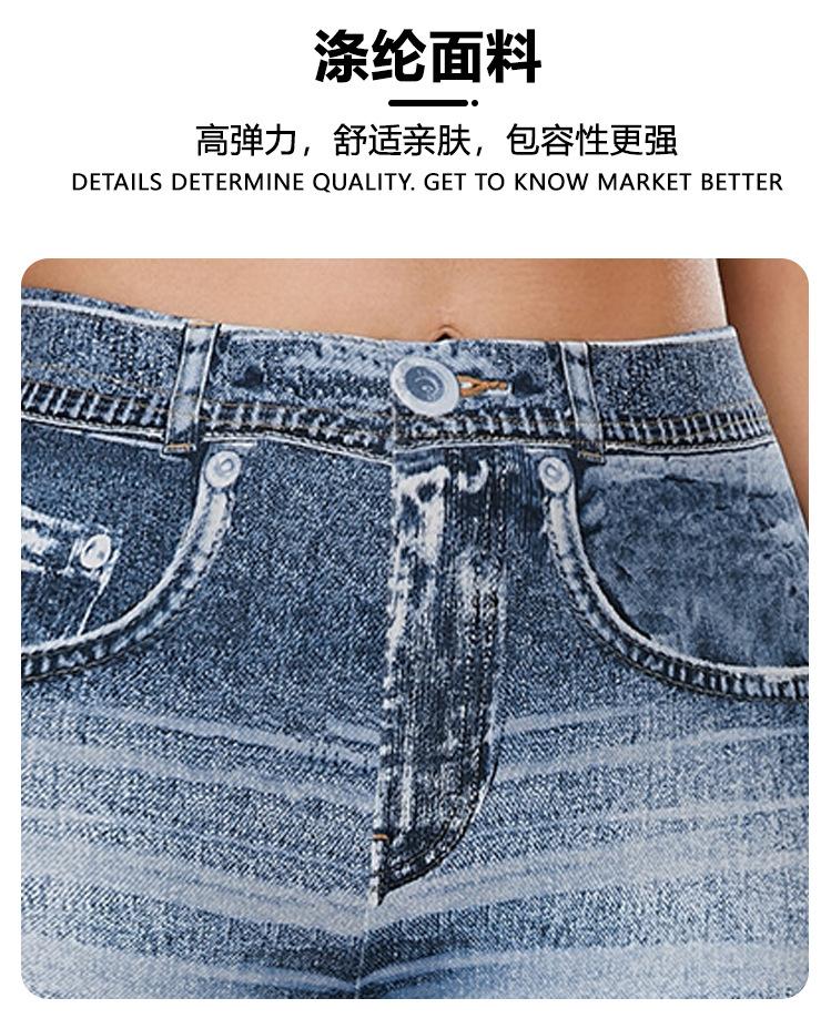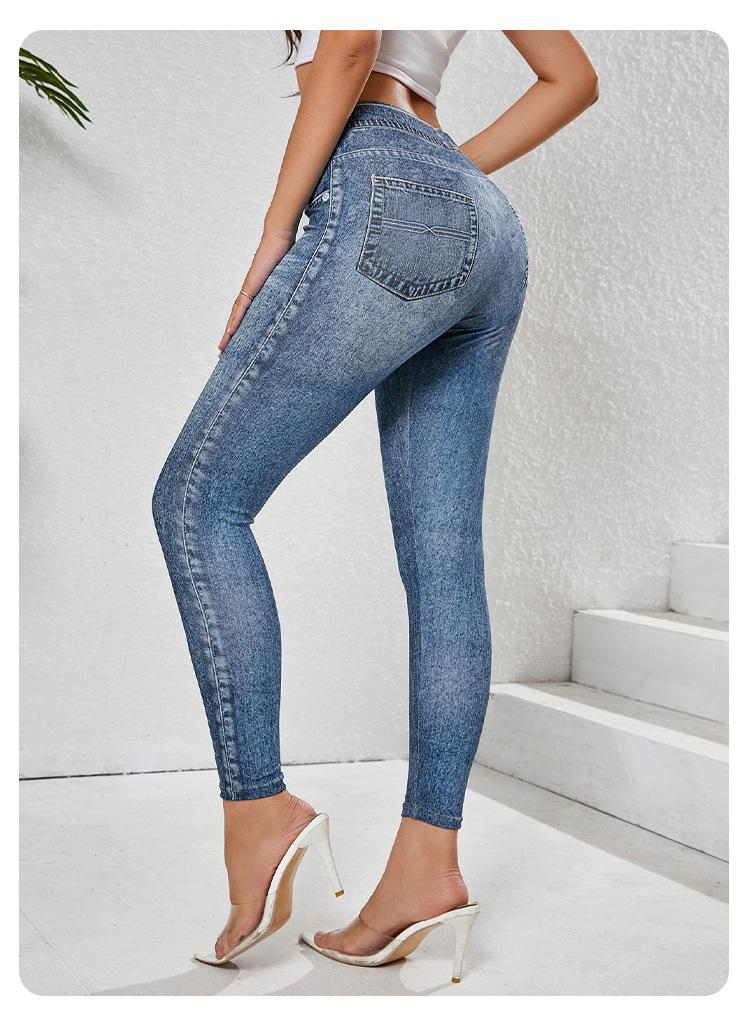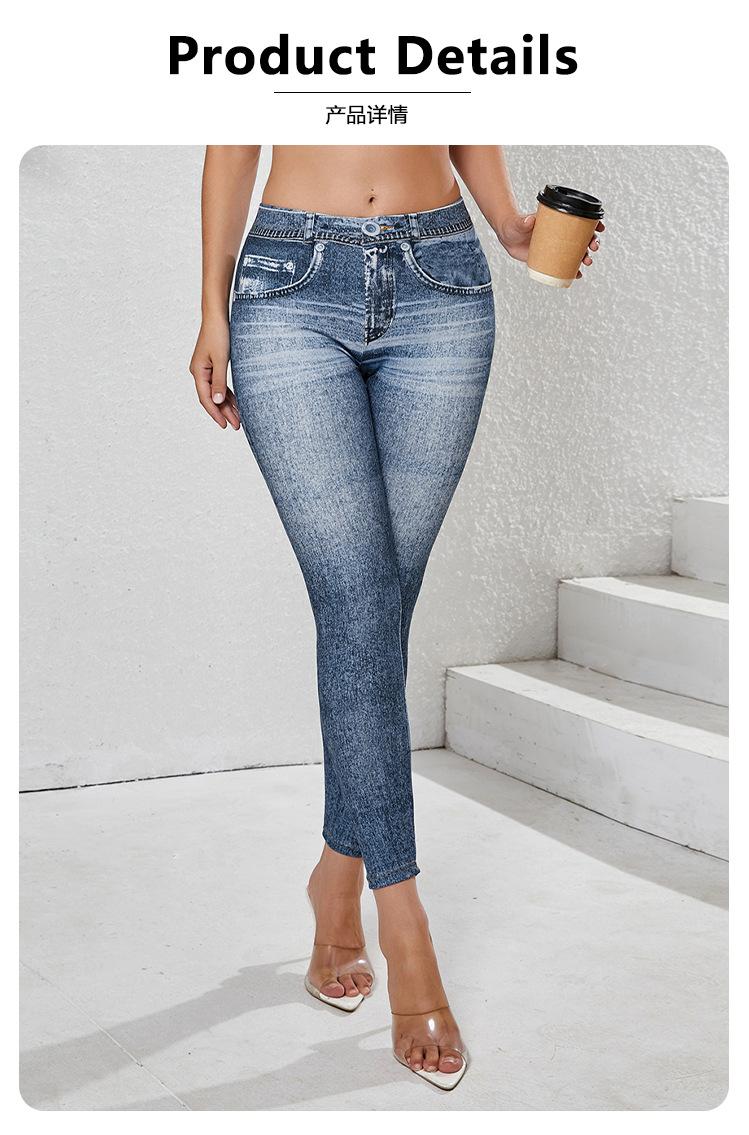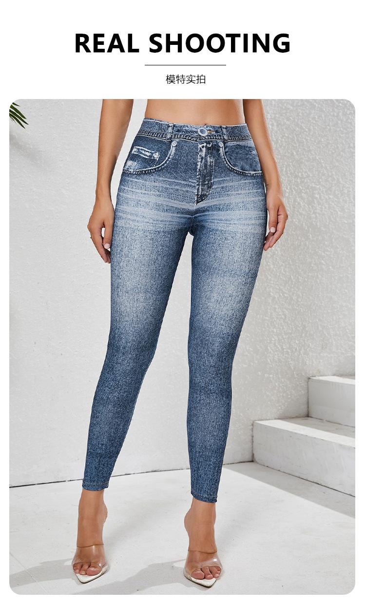 Pantalones de Yoga Ajustados Faux Denim Estilo Europeo y Americano para Mujer, Cintura Alta, Adelgazantes, Levanta Glúteos, Forma de Durazno, Elásticos, Adecuados para Uso al Aire Libre, Correr, Leggings Casuales