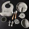 En stock Vajilla infantil, plato complementario de comida para bebés, vajilla para bebés, juego de cuencos de silicona, plato de dinosaurio de silicona de tres rejillas