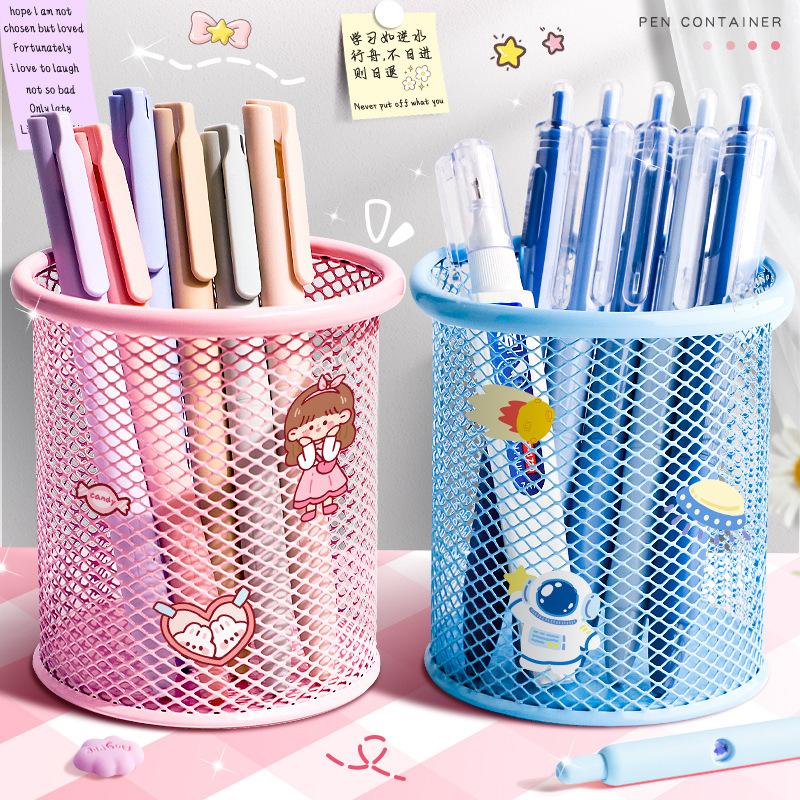 Portalápices de metal para oficina, escritorio, estudiantes, caja de almacenamiento, gran capacidad, red de hierro de gran tamaño, portalápices simple para niños