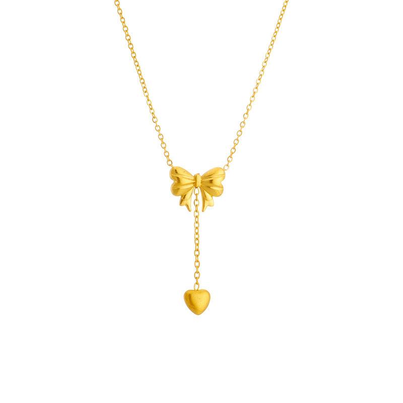 Venta al por mayor transfronteriza de collar de mujer sexy, sencillo, con lazo dorado y borla de amor, colgante largo de cadena de clavícula de acero de titanio.