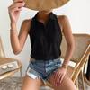 Camisa de Botones para Mujer Sin Mangas Básica Casual Color Sólido Verano Camisa Top