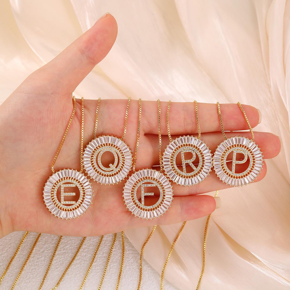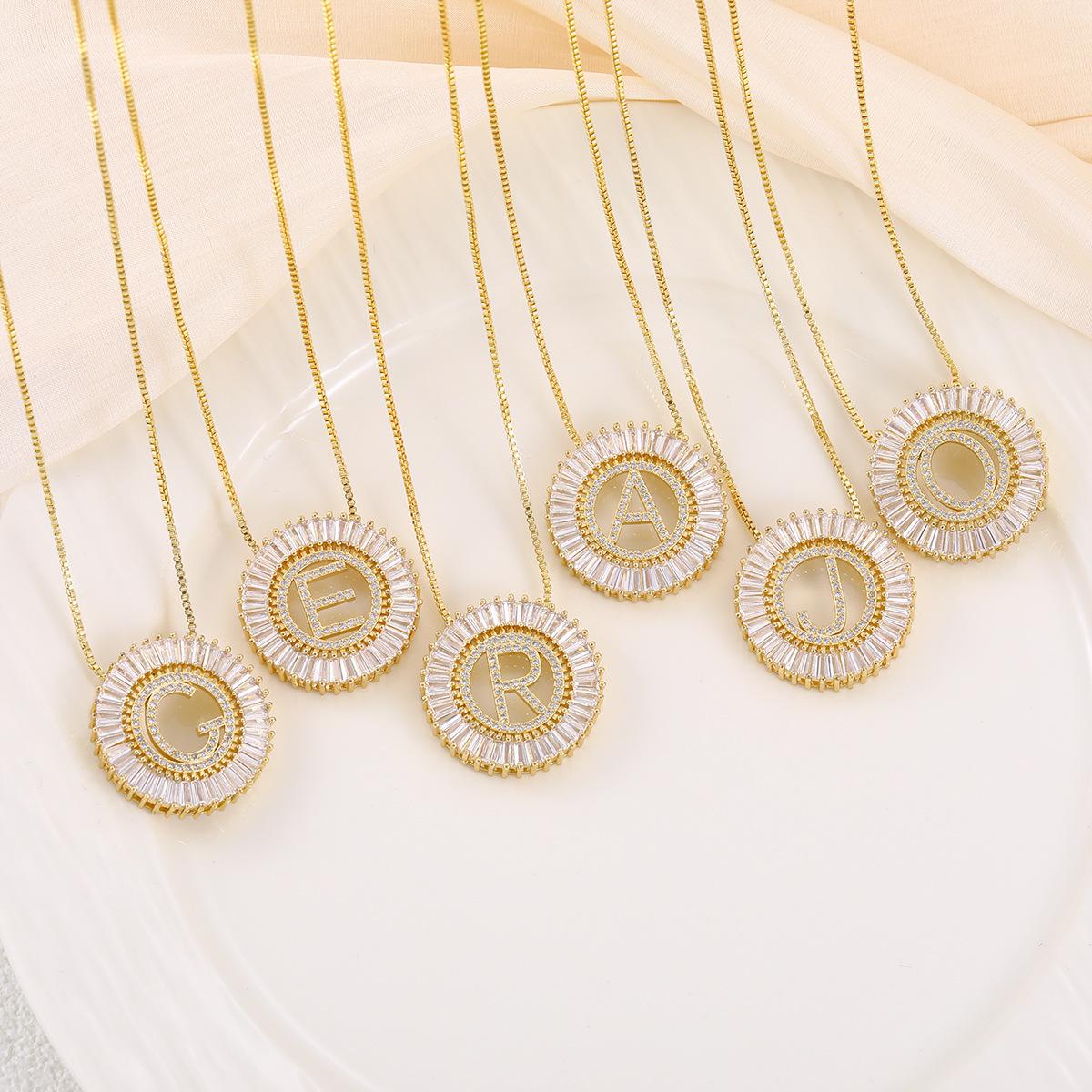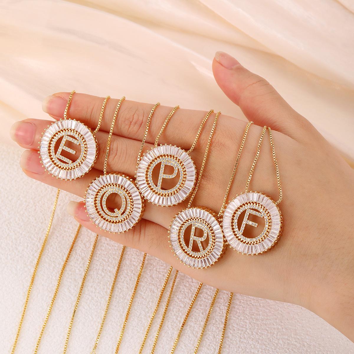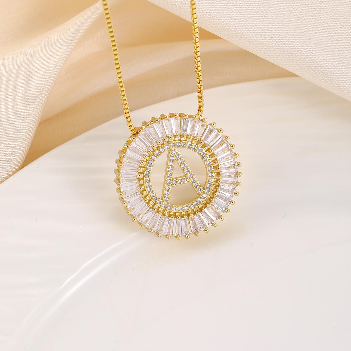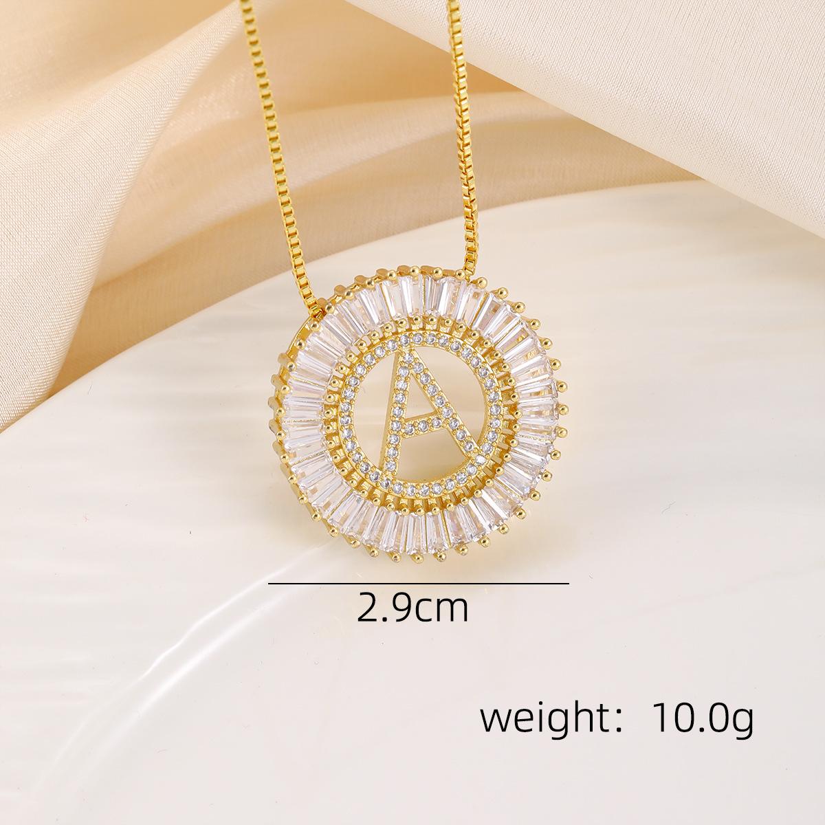 Collar con letras de joyería transfronteriza de Amazon, sencillo, con incrustaciones de cobre redondas, colgante de letra de circonita, cadena de clavícula, venta al por mayor