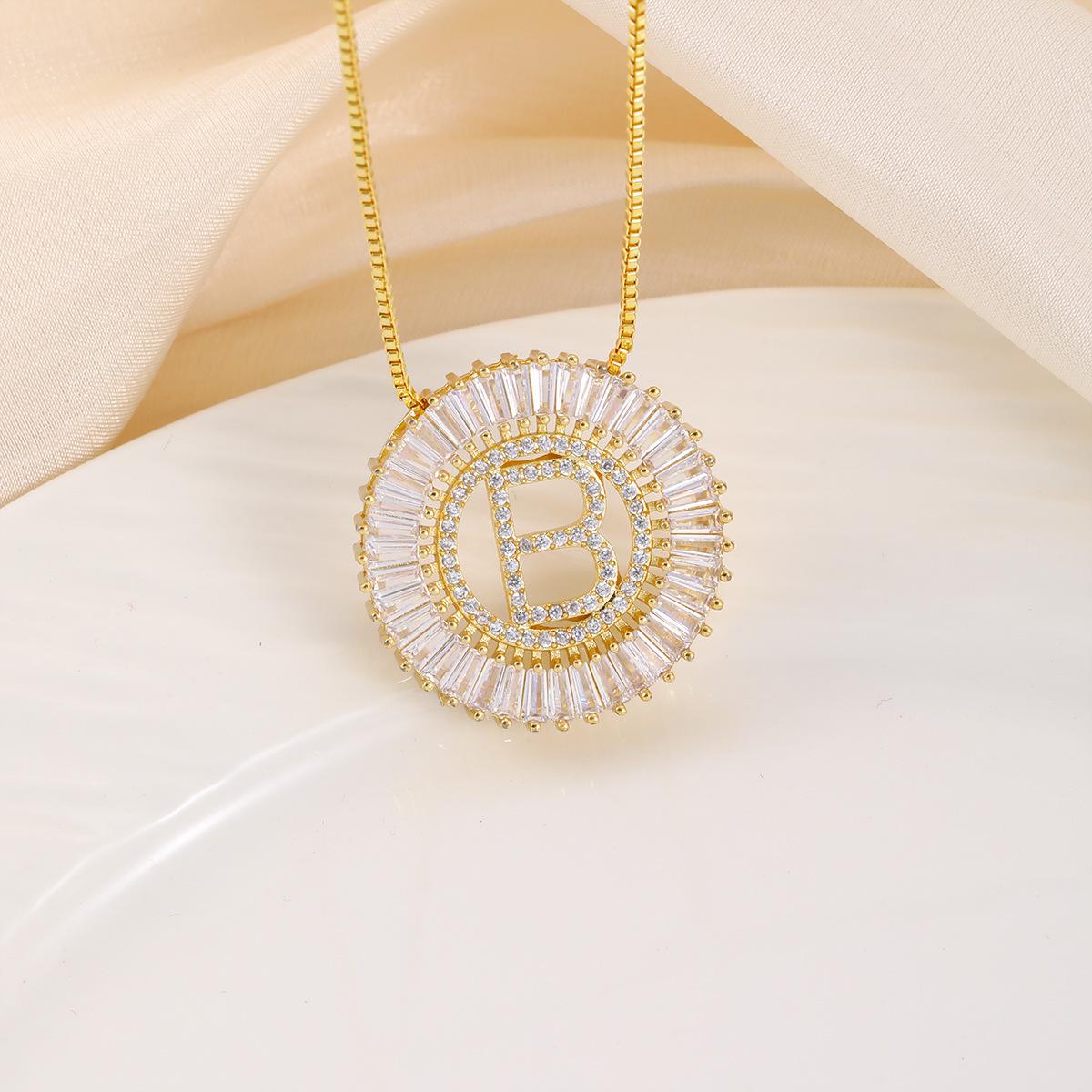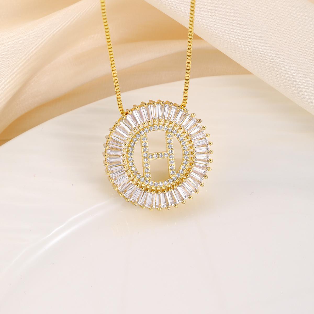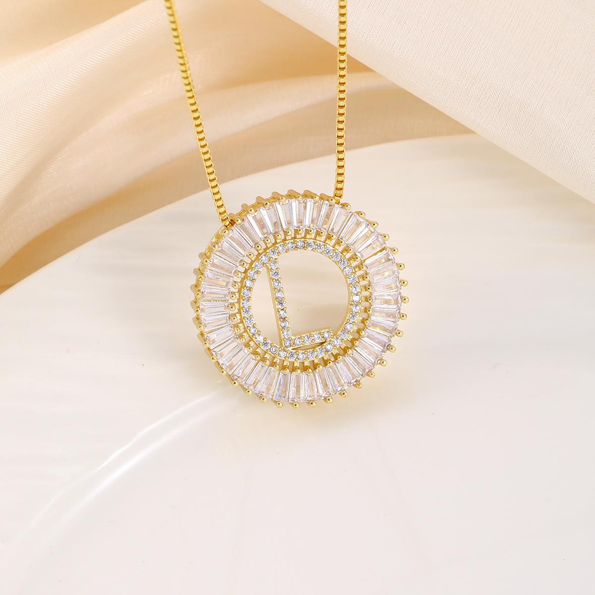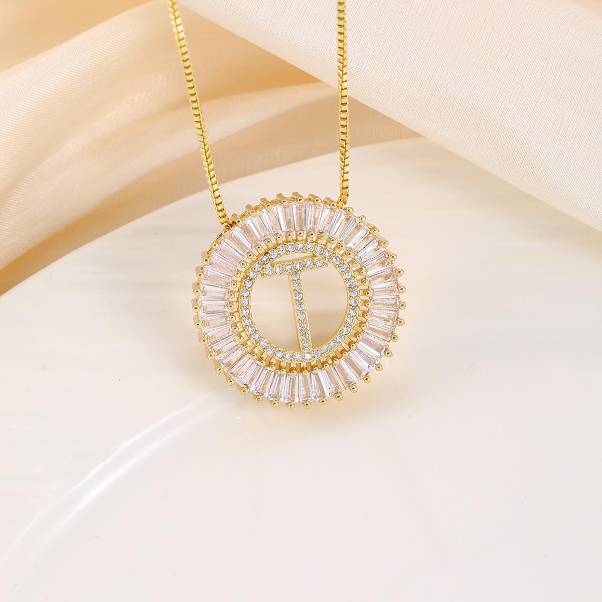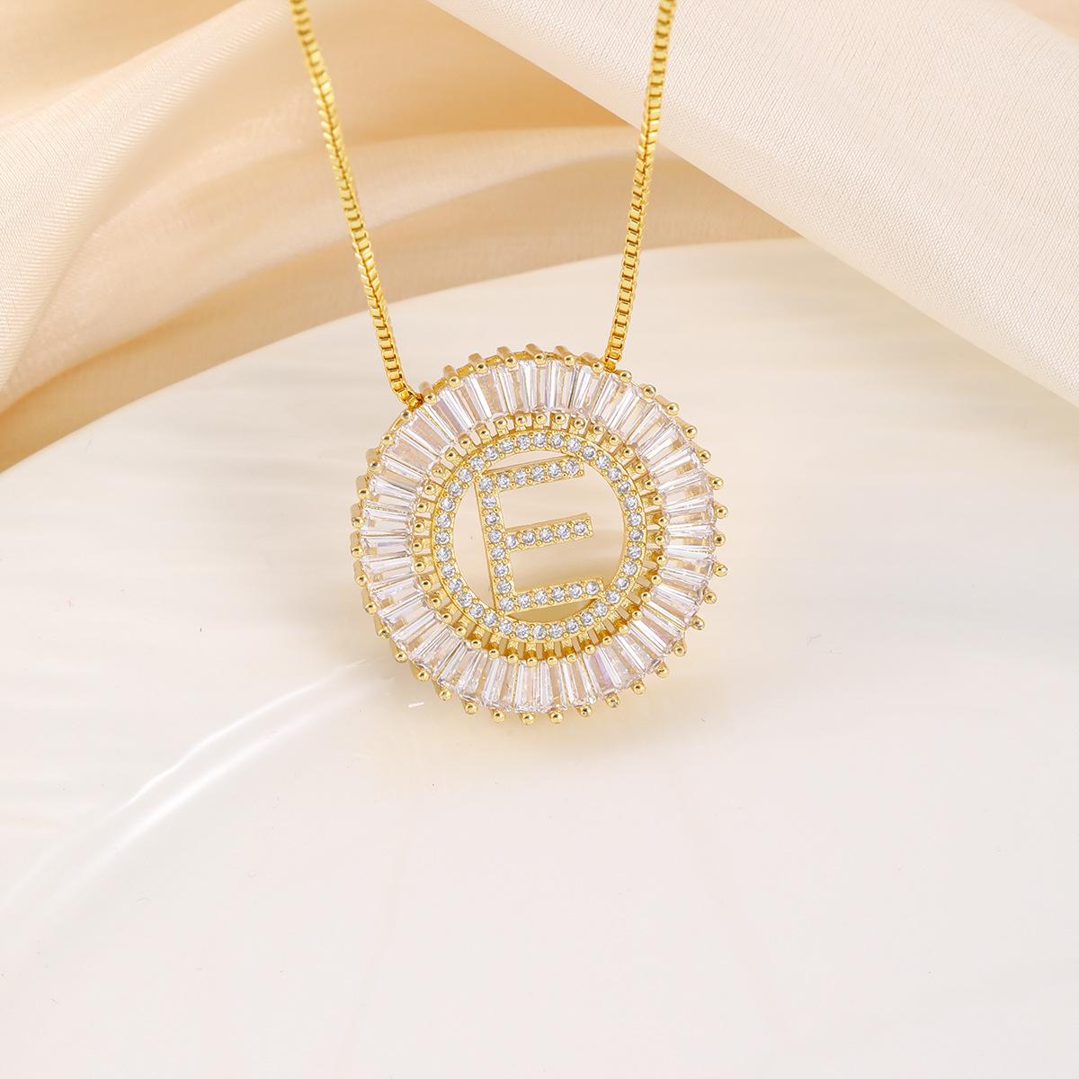 Collar con letras de joyería transfronteriza de Amazon, sencillo, con incrustaciones de cobre redondas, colgante de letra de circonita, cadena de clavícula, venta al por mayor