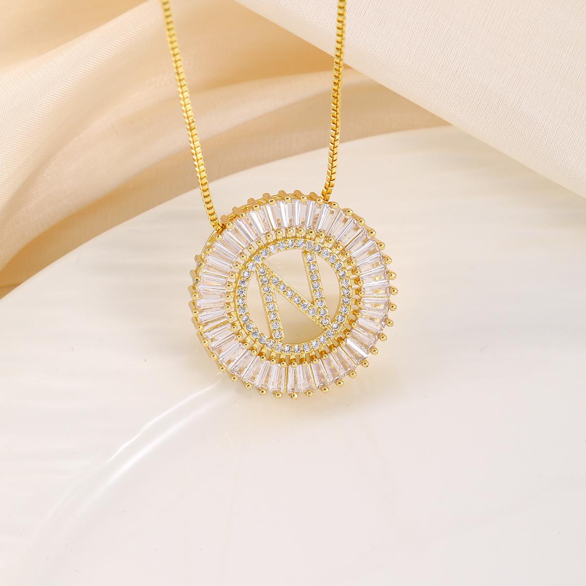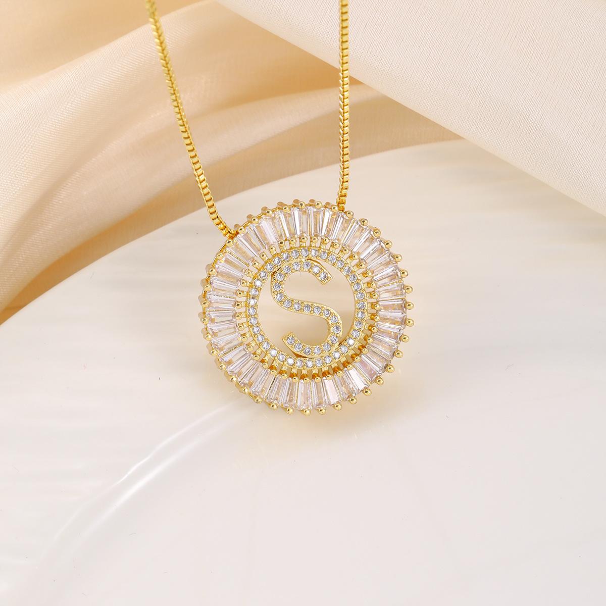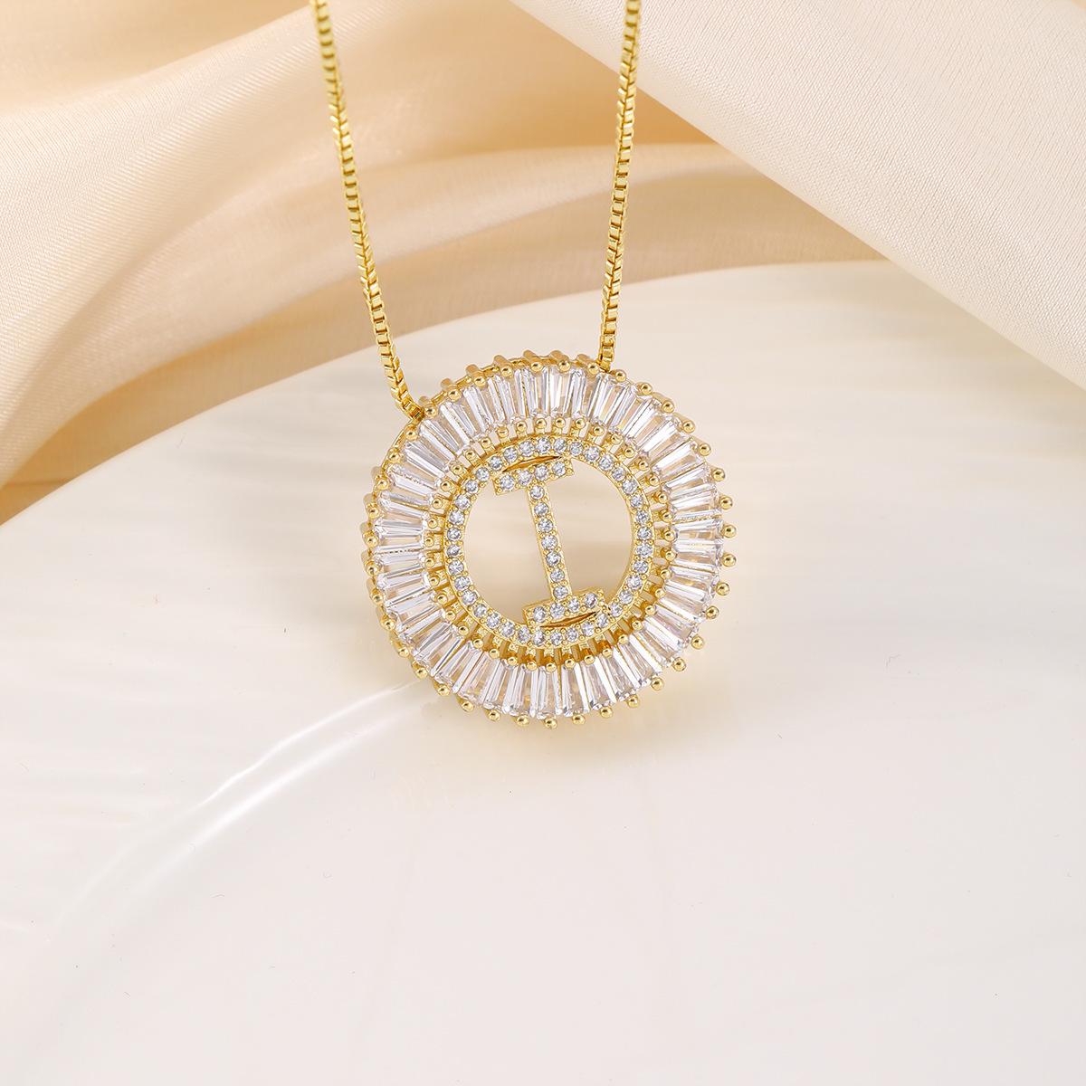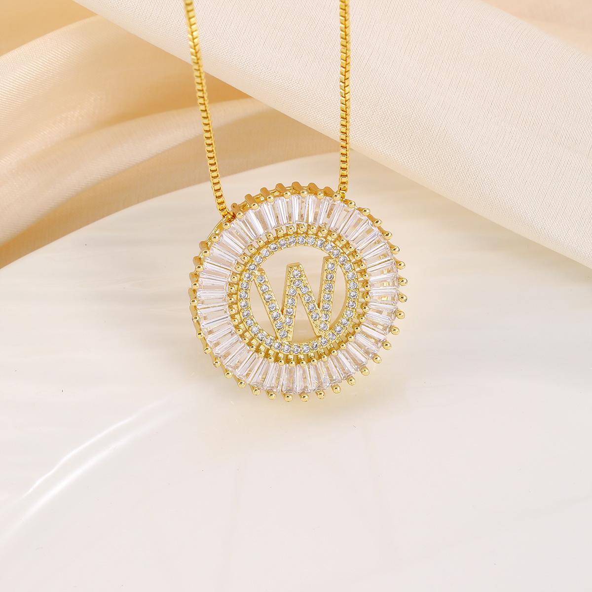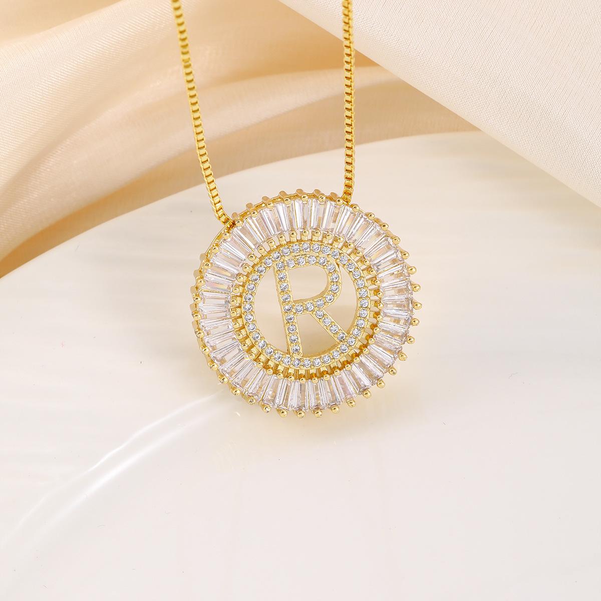 Collar con letras de joyería transfronteriza de Amazon, sencillo, con incrustaciones de cobre redondas, colgante de letra de circonita, cadena de clavícula, venta al por mayor