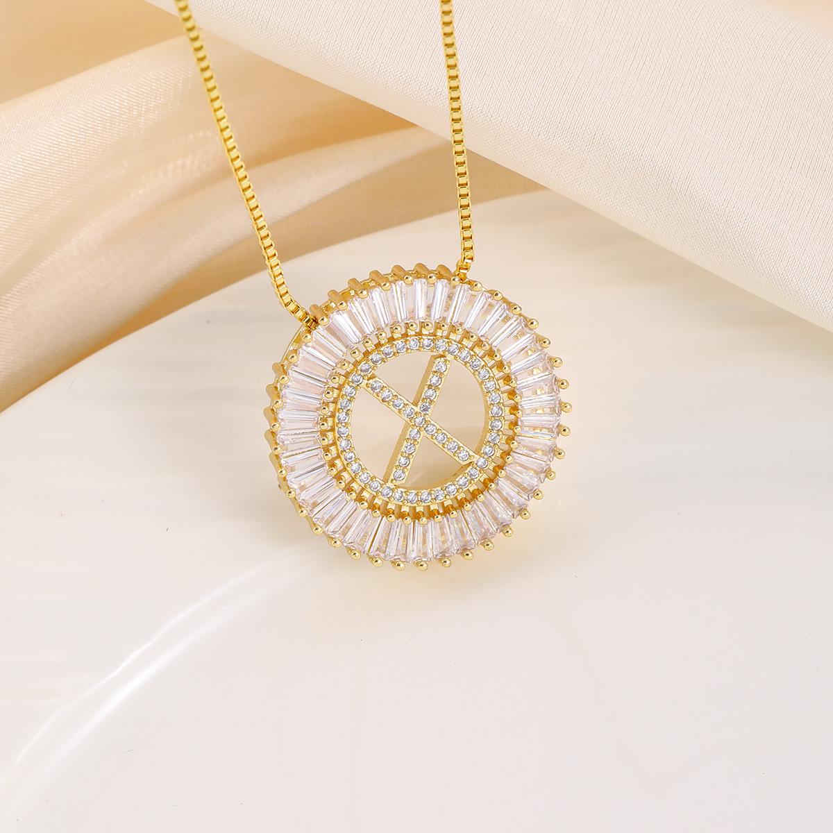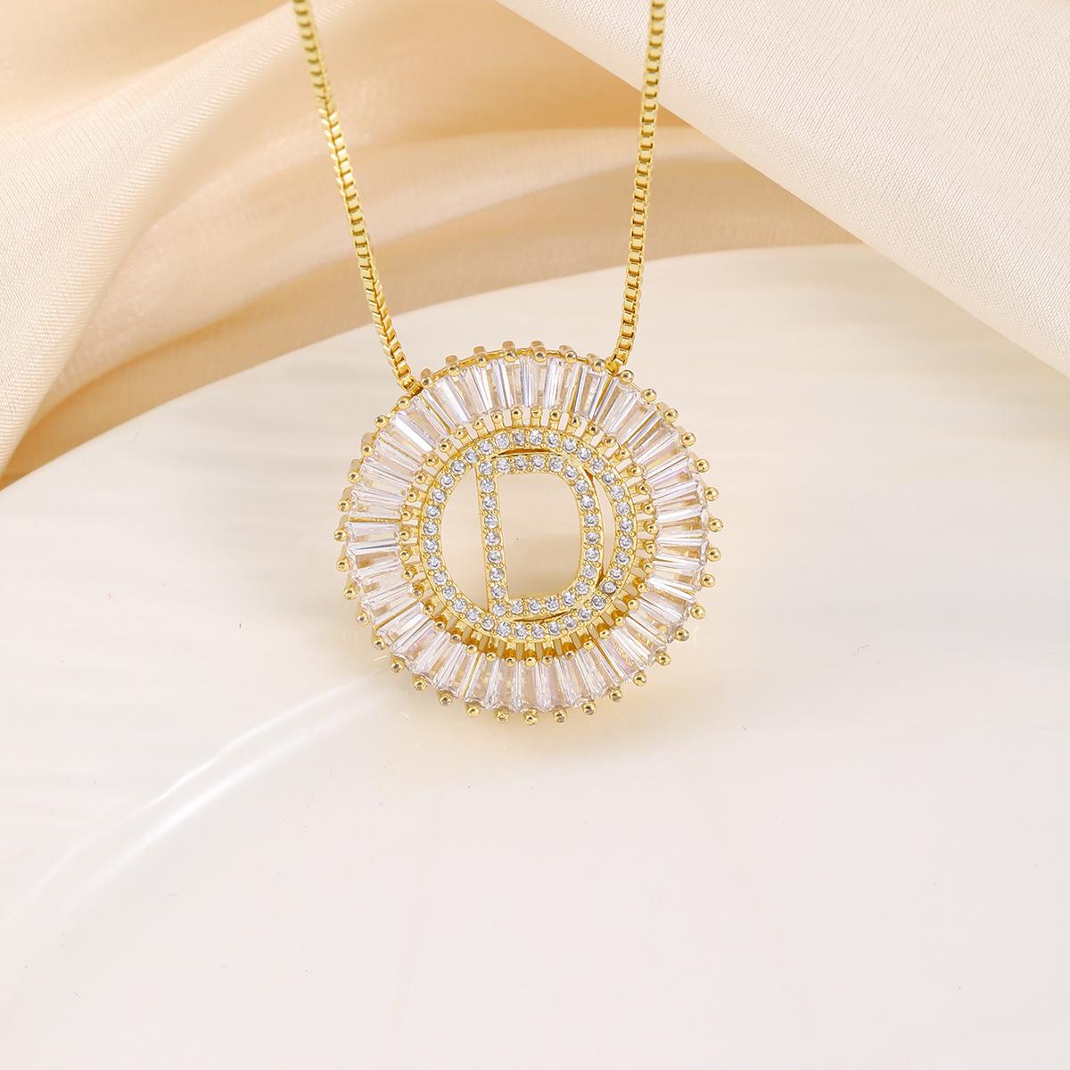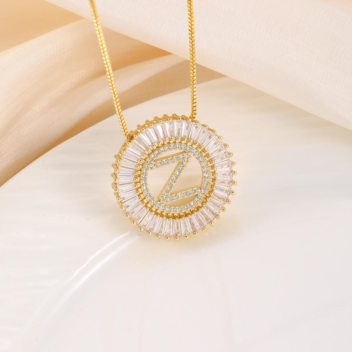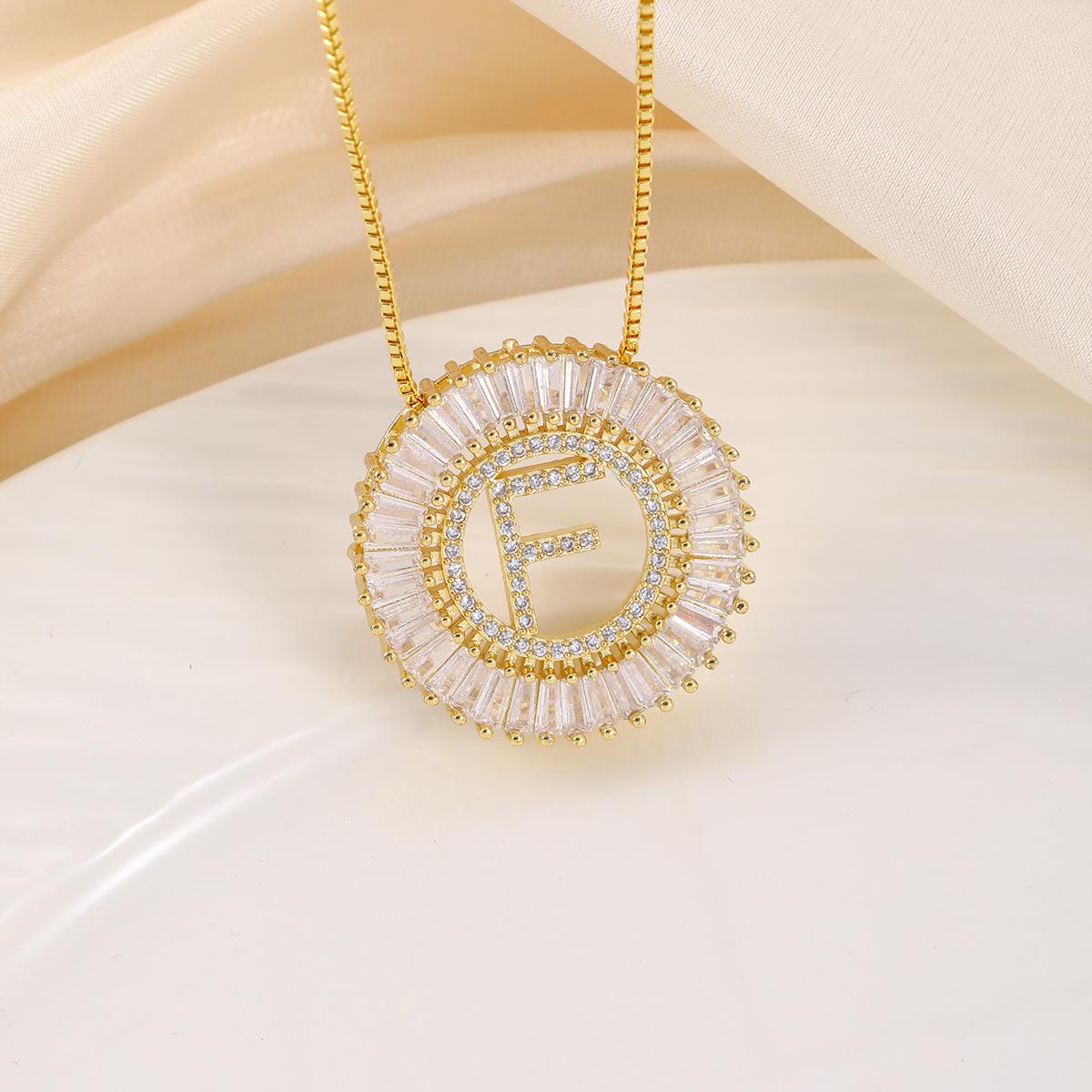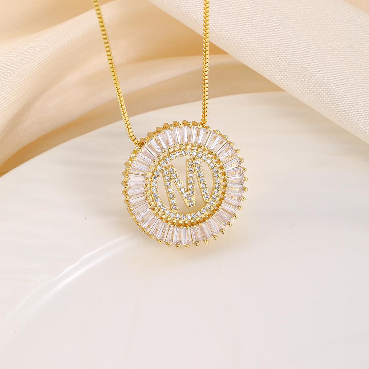 Collar con letras de joyería transfronteriza de Amazon, sencillo, con incrustaciones de cobre redondas, colgante de letra de circonita, cadena de clavícula, venta al por mayor